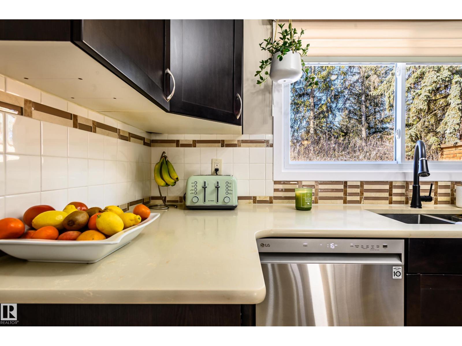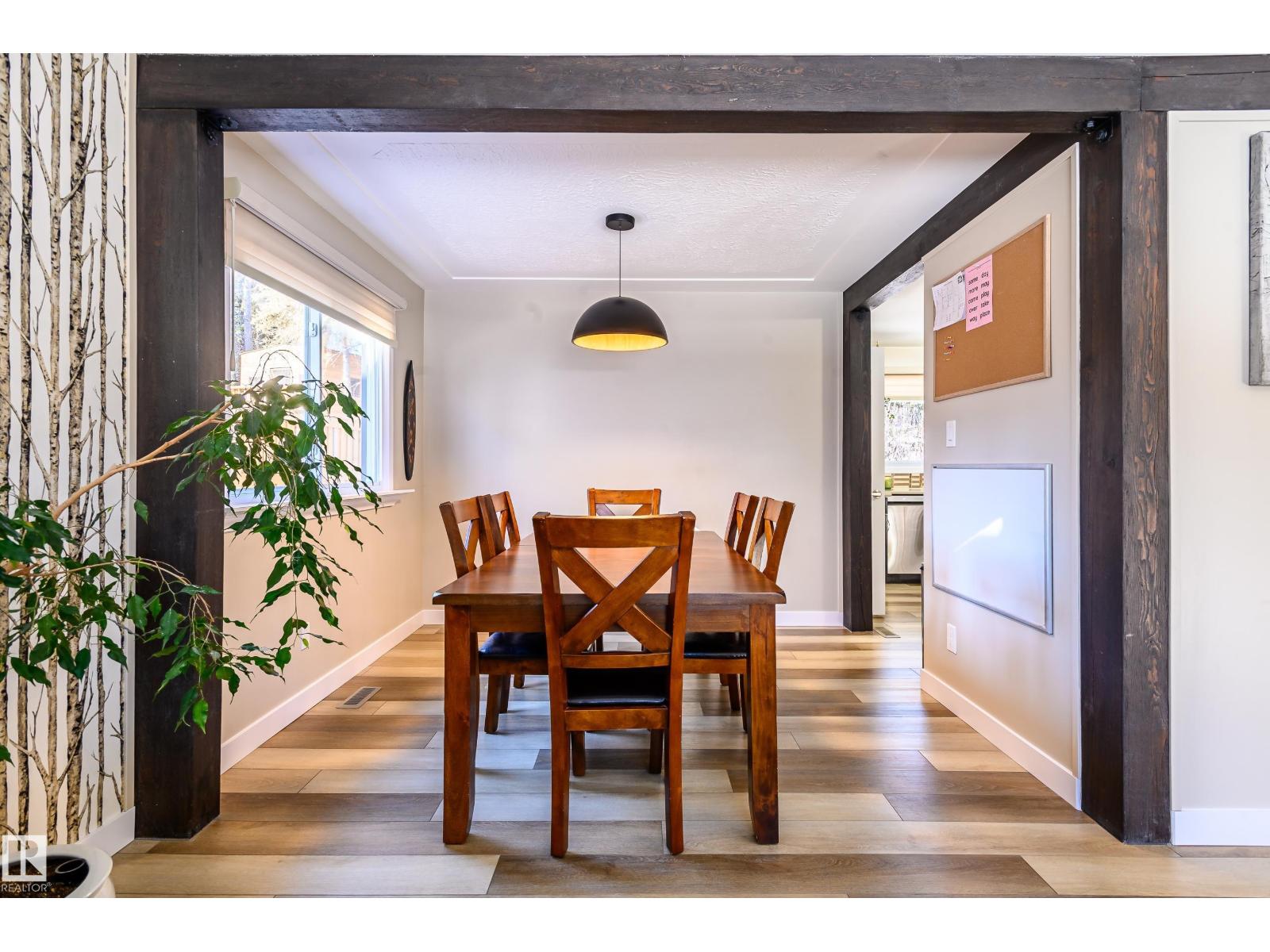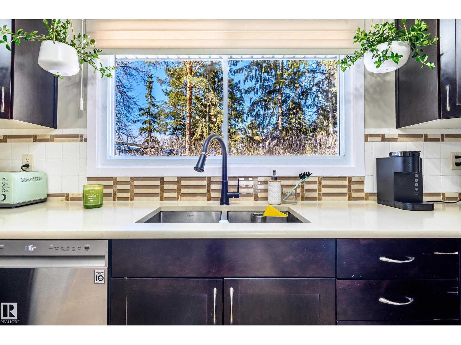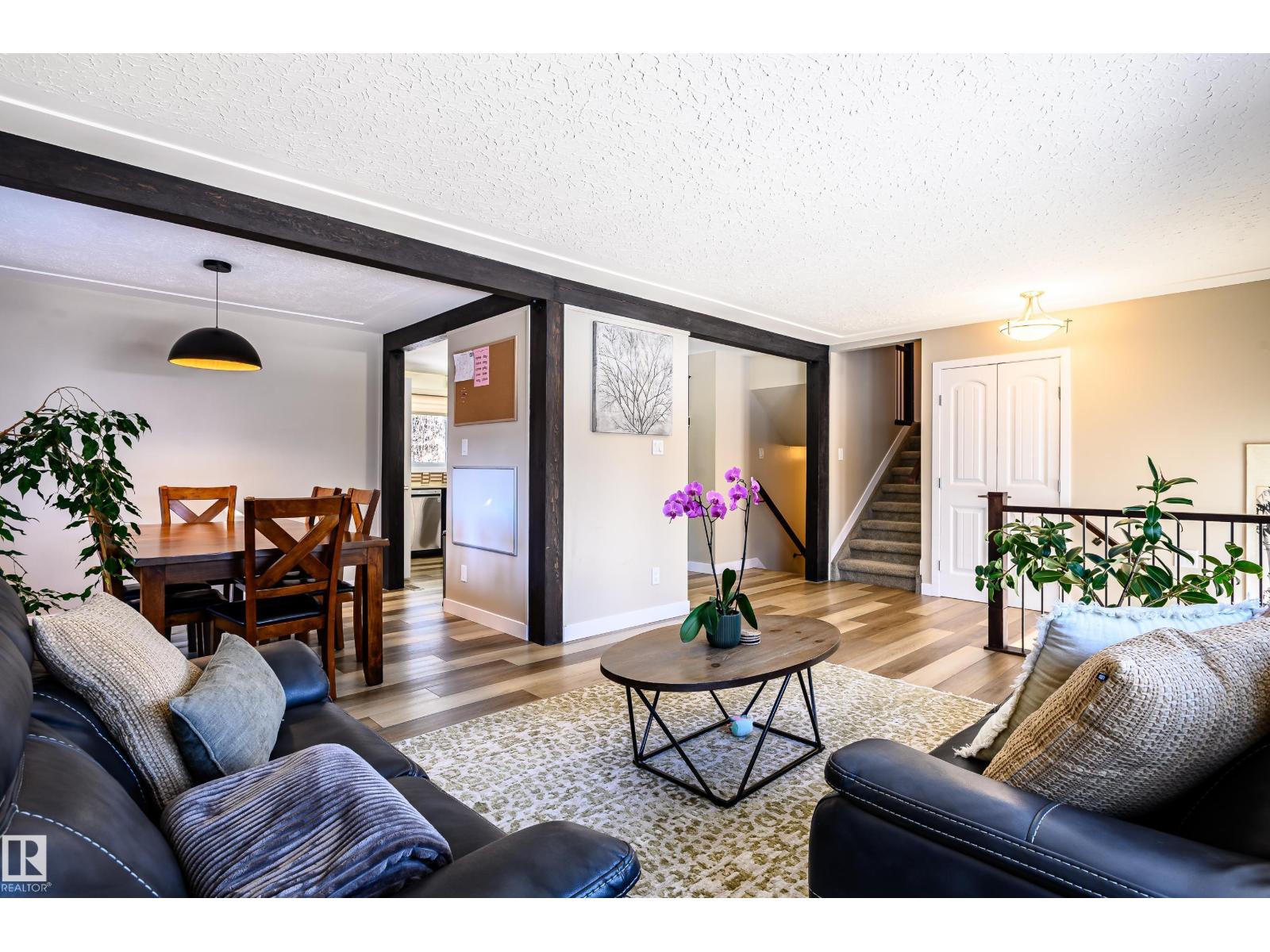 Thoughtfully upgraded 4 level split located on a quiet street surrounded by large, mature trees and a total of 1,783 sqft of living space. This inviting home blends comfort, functionality, and timeless character—ideal for families or those seeking flexible living space. A rear patio door opens onto a spacious back patio, perfect for entertaining or relaxing outdoors, complemented by a cedar garden box for those with a green thumb. Extensive upgrades provide peace of mind and efficiency, including a new furnace, heat pump, hot water tank, and upgraded attic insulation. Inside, the home has been refreshed with updated flooring throughout, a renovated kitchen, and updated bathrooms, highlighted by a main bath featuring a luxurious 6’ soaker tub. A rare and convenient main level washer and dryer adds everyday practicality. Warm interior and exterior timber beam accents give the home a distinctive, craftsman inspired feel, while a brick accent on the front elevation beautifully complements the timber work. (id:63190)