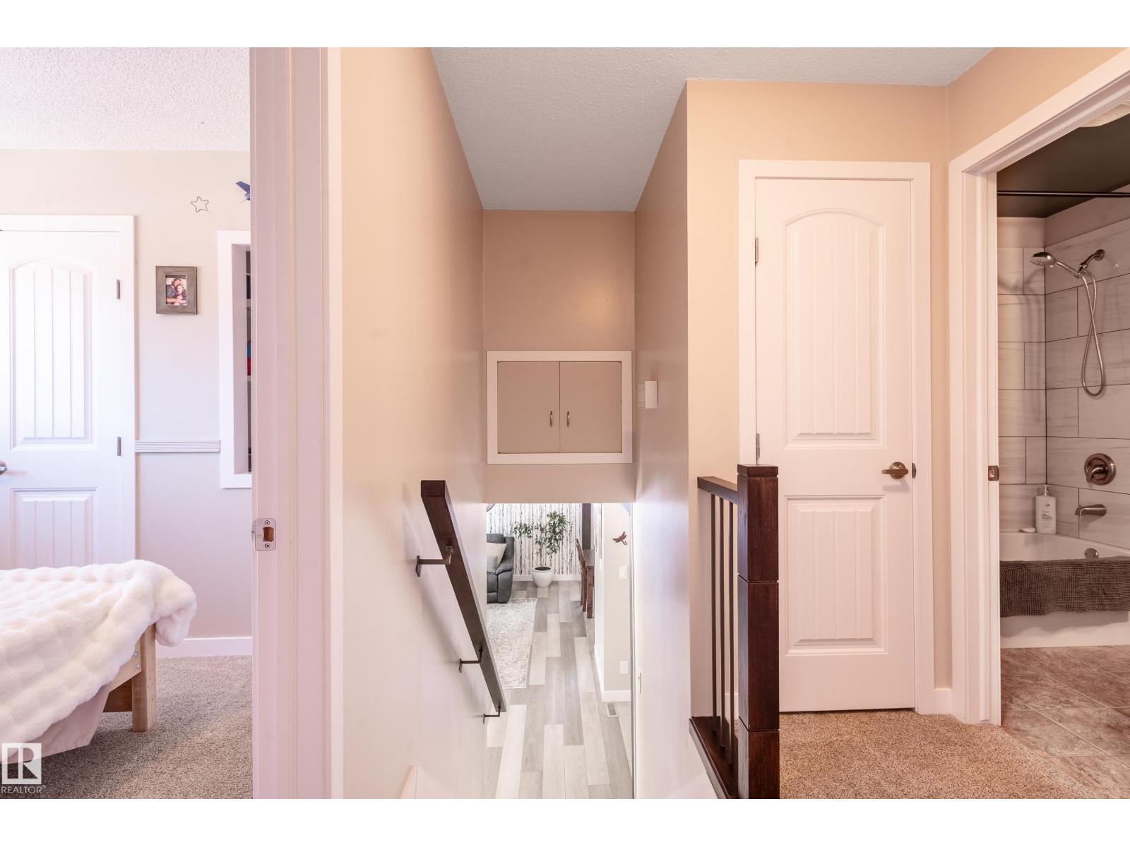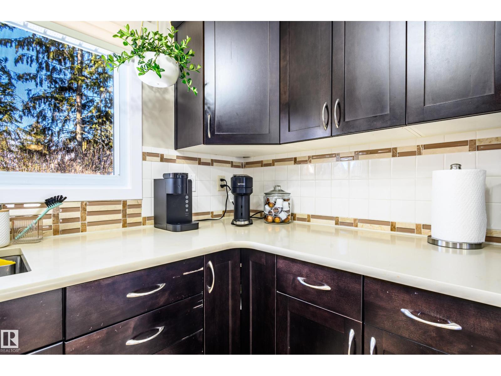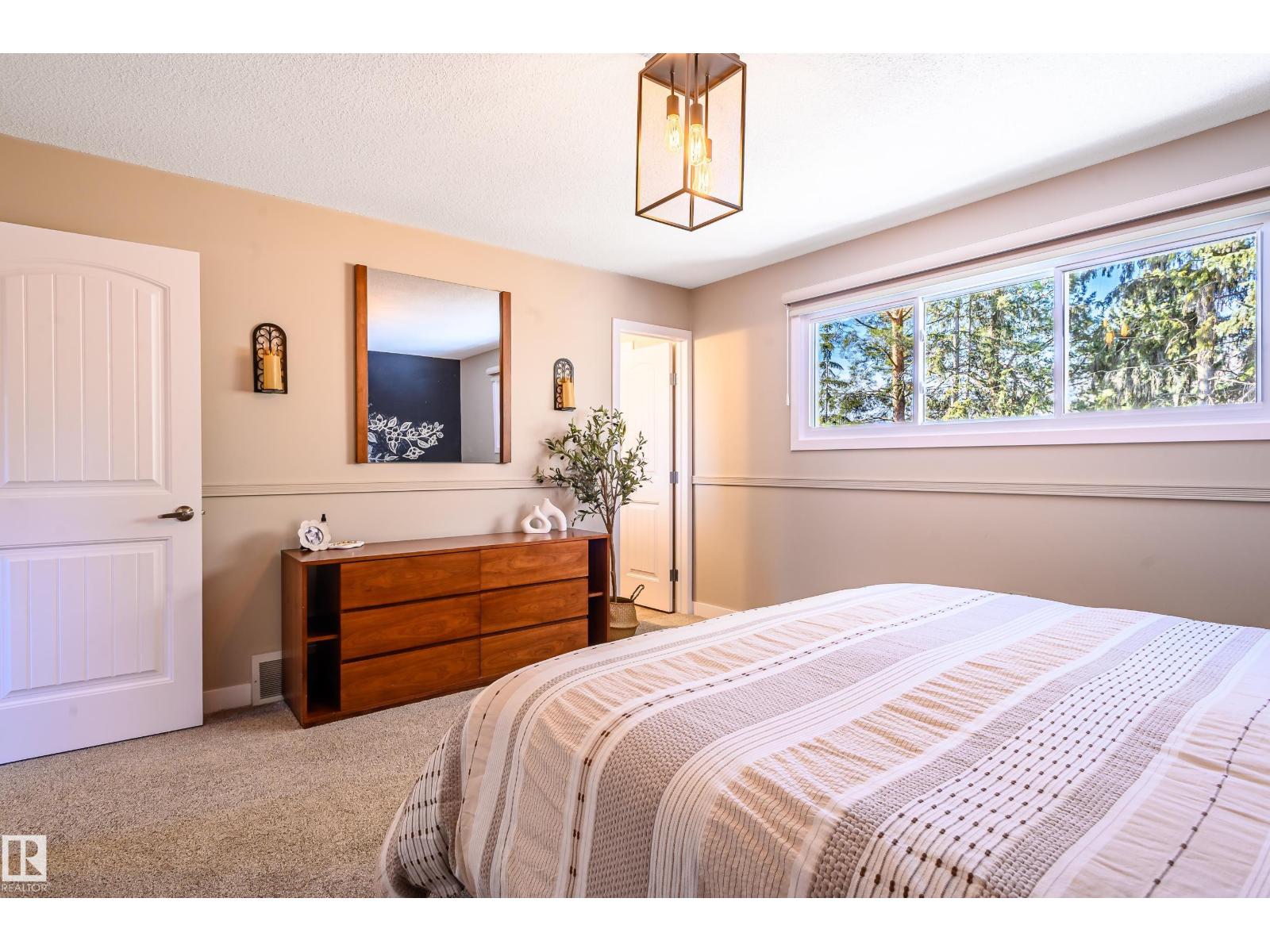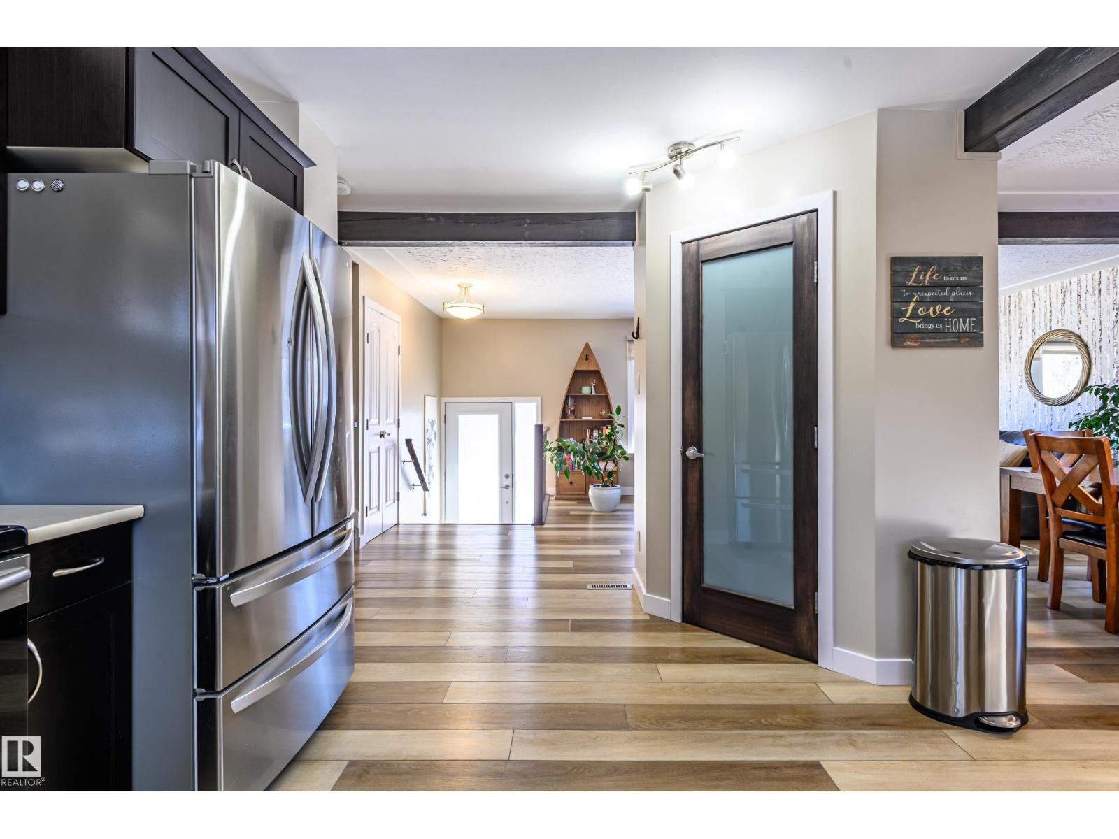 Thoughtfully upgraded 4 level split located on a quiet street surrounded by large, mature trees and a total of 1,783 sqft of living space. This inviting home blends comfort, functionality, and timeless character—ideal for families or those seeking flexible living space. A rear patio door opens onto a spacious back patio, perfect for entertaining or relaxing outdoors, complemented by a cedar garden box for those with a green thumb. Extensive upgrades provide peace of mind and efficiency, including a new furnace, heat pump, hot water tank, and upgraded attic insulation. Inside, the home has been refreshed with updated flooring throughout, a renovated kitchen, and updated bathrooms, highlighted by a main bath featuring a luxurious 6’ soaker tub. A rare and convenient main level washer and dryer adds everyday practicality. Warm interior and exterior timber beam accents give the home a distinctive, craftsman inspired feel, while a brick accent on the front elevation beautifully complements the timber work. (id:63190)