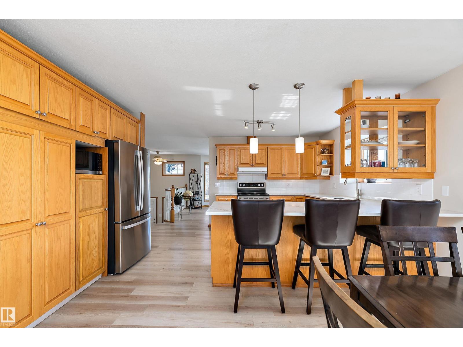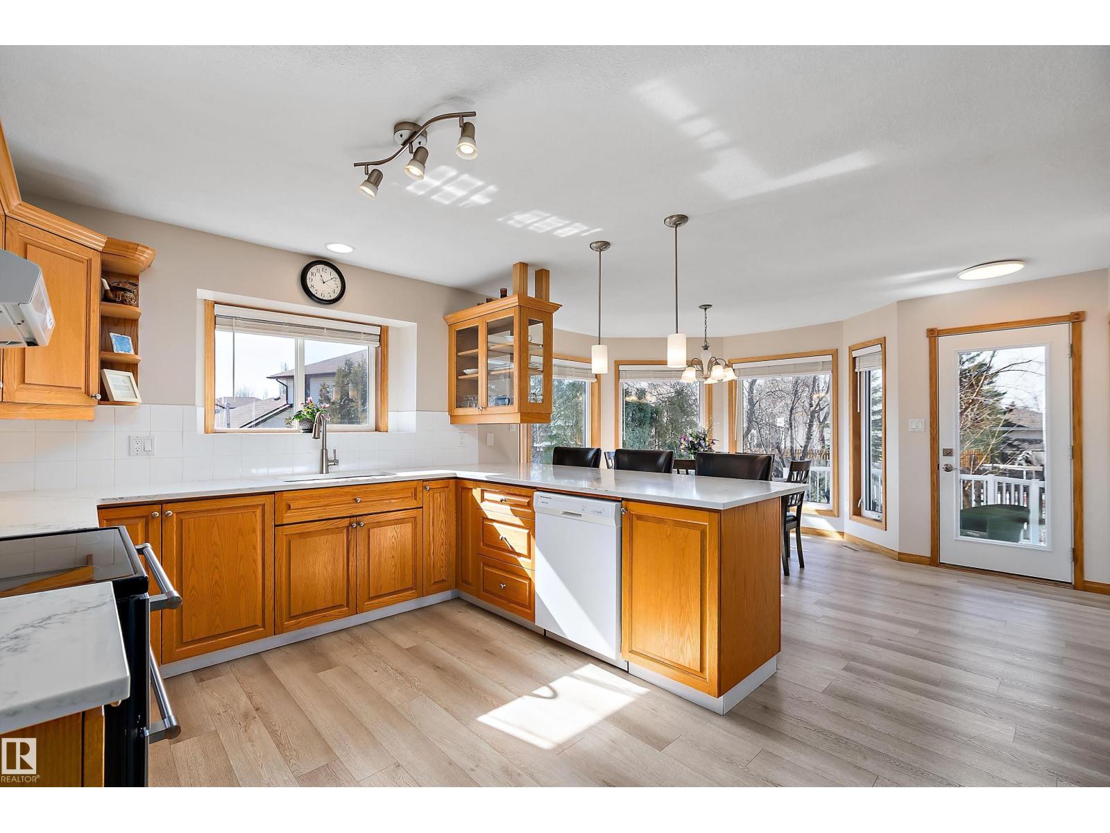 Nestled in sought-after Deer Ridge, this beautifully maintained 4 bedroom bi-level offers the ideal setting for a growing, active family, just steps from neighborhood trails, parks, & the local elementary school. Maintained with care and pride, this home features a bright & open main floor with large updated windows, a welcoming living room, & a well-designed kitchen enhanced with quartz countertops (2023) and modern appliances. The lower level impresses with 9-ft ceilings, the 2 additional bedrooms, & a full bathroom, creating flexible space for older children, guests, or recreation. Significant recent upgrades provide peace of mind and long-term value, including a new furnace (2023), updated windows (2023), eavestroughs (2025), deck (2024), exterior doors (2024), and a heated garage with a new gas heater (2025), along with a wood-burning fireplace (2023). Outside, the fully fenced & manicured yard & spacious two-tier deck make comfort outdoor entertaining a breeze. (id:63190)