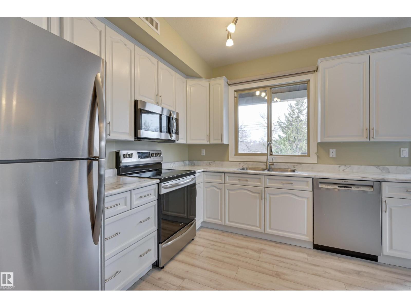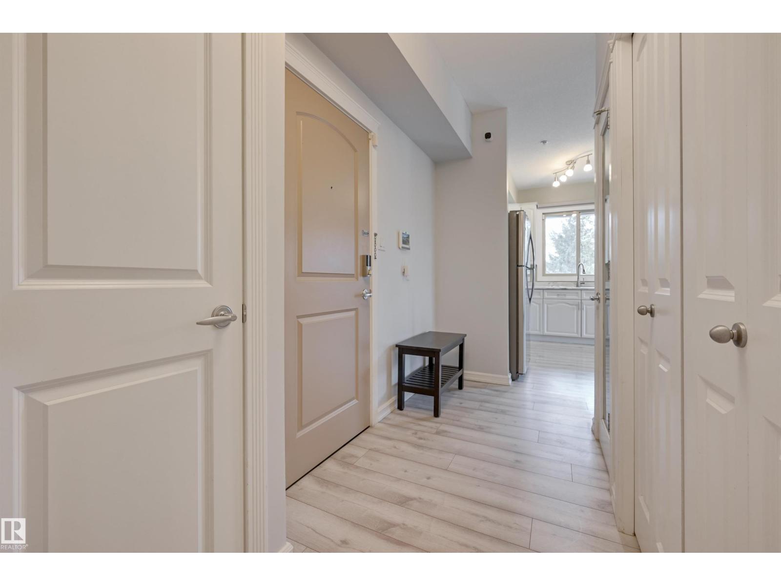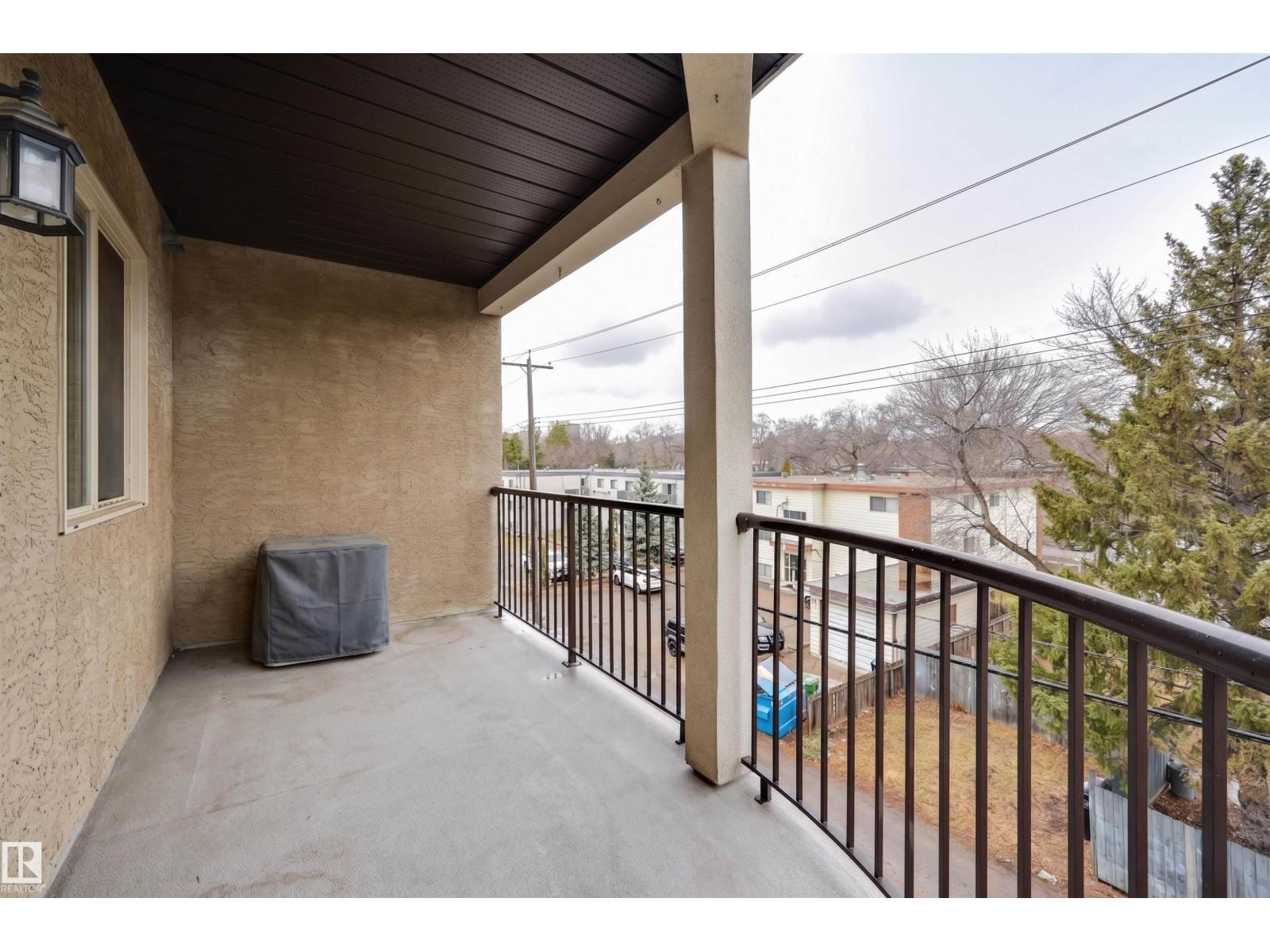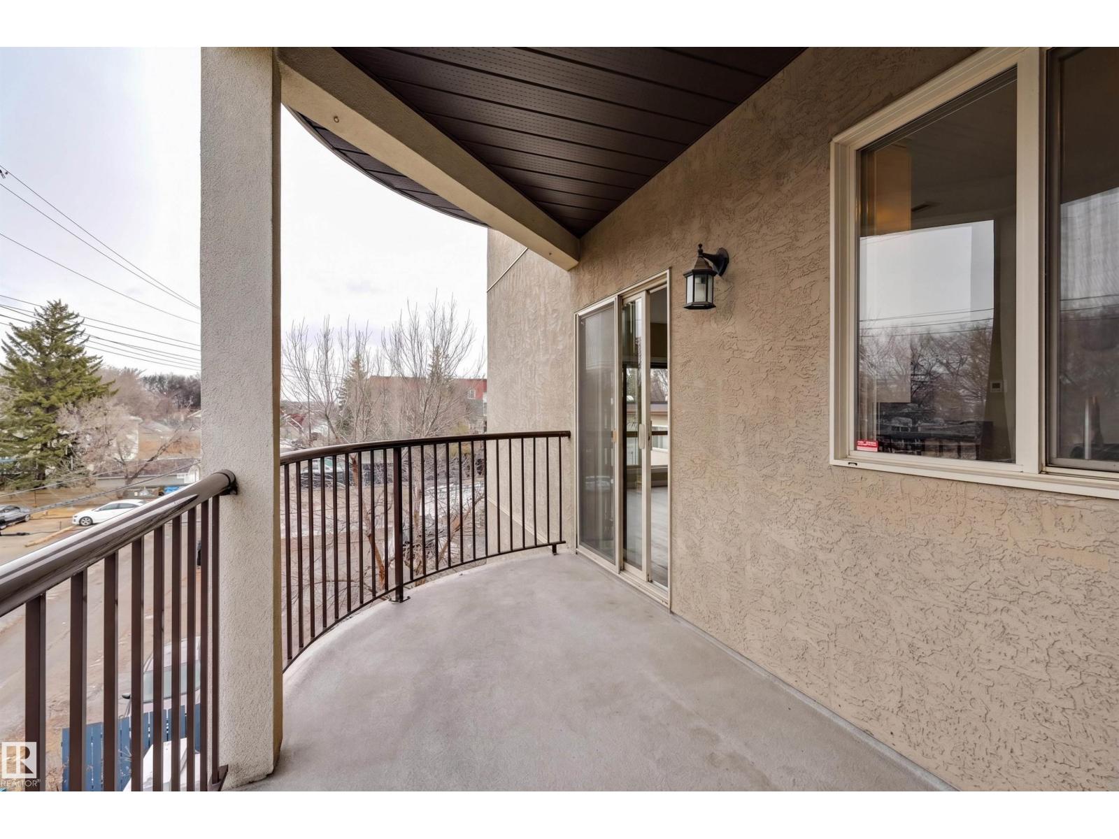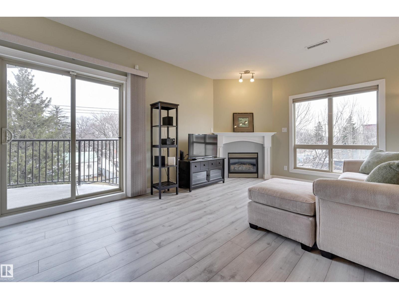 Enjoy treeline views from this meticulously renovated 932 sq. ft. condo in the desirable Tuscany Place. Perfectly situated just blocks from Whyte Avenue, you are steps away from vibrant restaurants, local coffee shops, public transit, and the scenic River Valley trails, with effortless access to the U of A and Downtown. The home features a modern open-concept layout with 9-foot ceilings and expansive northeast-facing windows that flood the living area with natural light. The large balcony has a natural gas hookup for BBQ. No detail has been overlooked in the extensive upgrades: fresh paint and carpet (2026), laminate flooring (2022), new furnace and A/C (2022), and all newer stainless steel appliances. The kitchen and bathrooms shine with resurfaced cabinetry, upgraded countertops and sinks. The spacious primary suite includes a walk-in closet with built-ins and a private ensuite. Includes a titled underground parking stall.The building is well maintained by a professional management company. (id:63190)