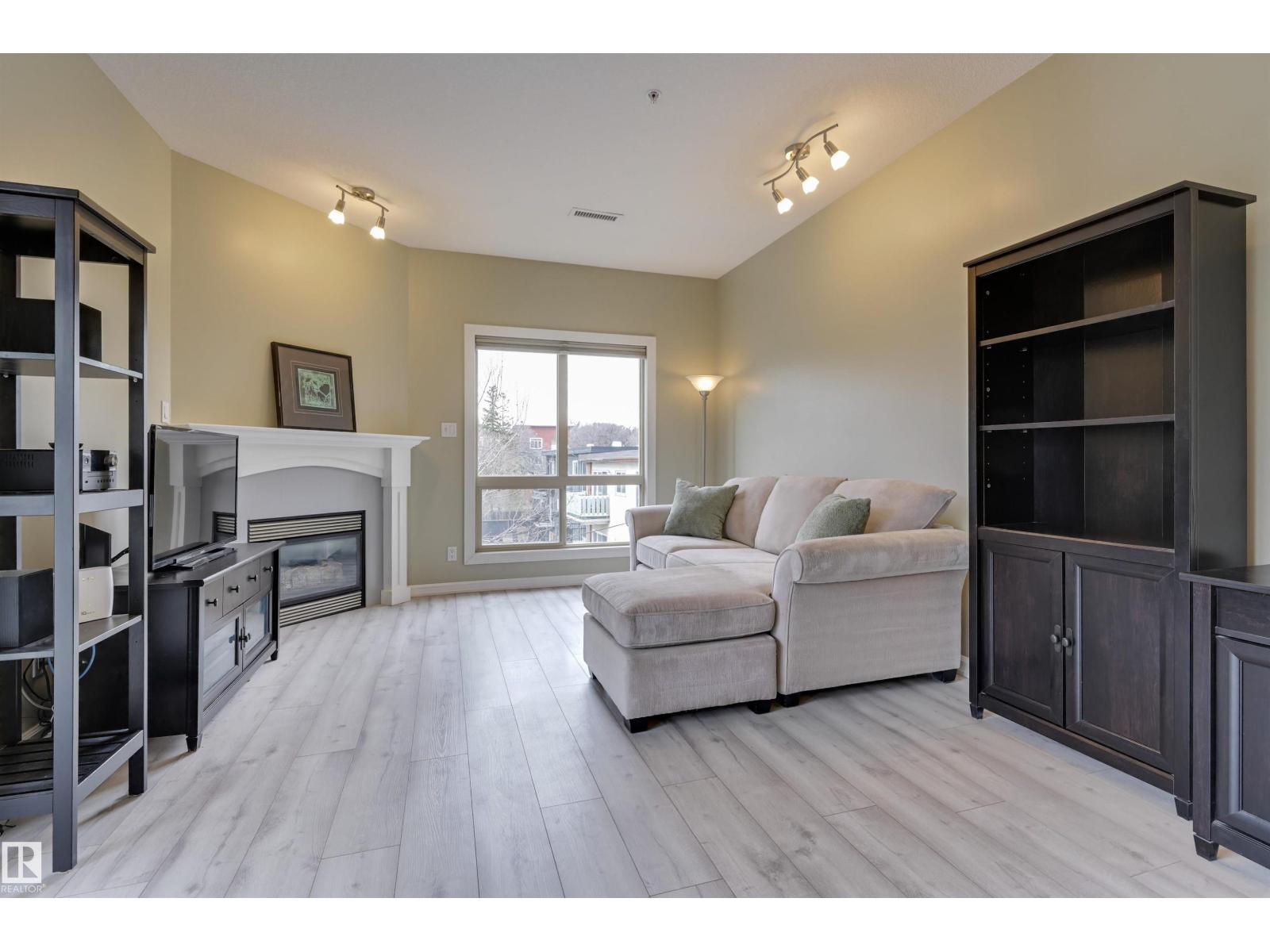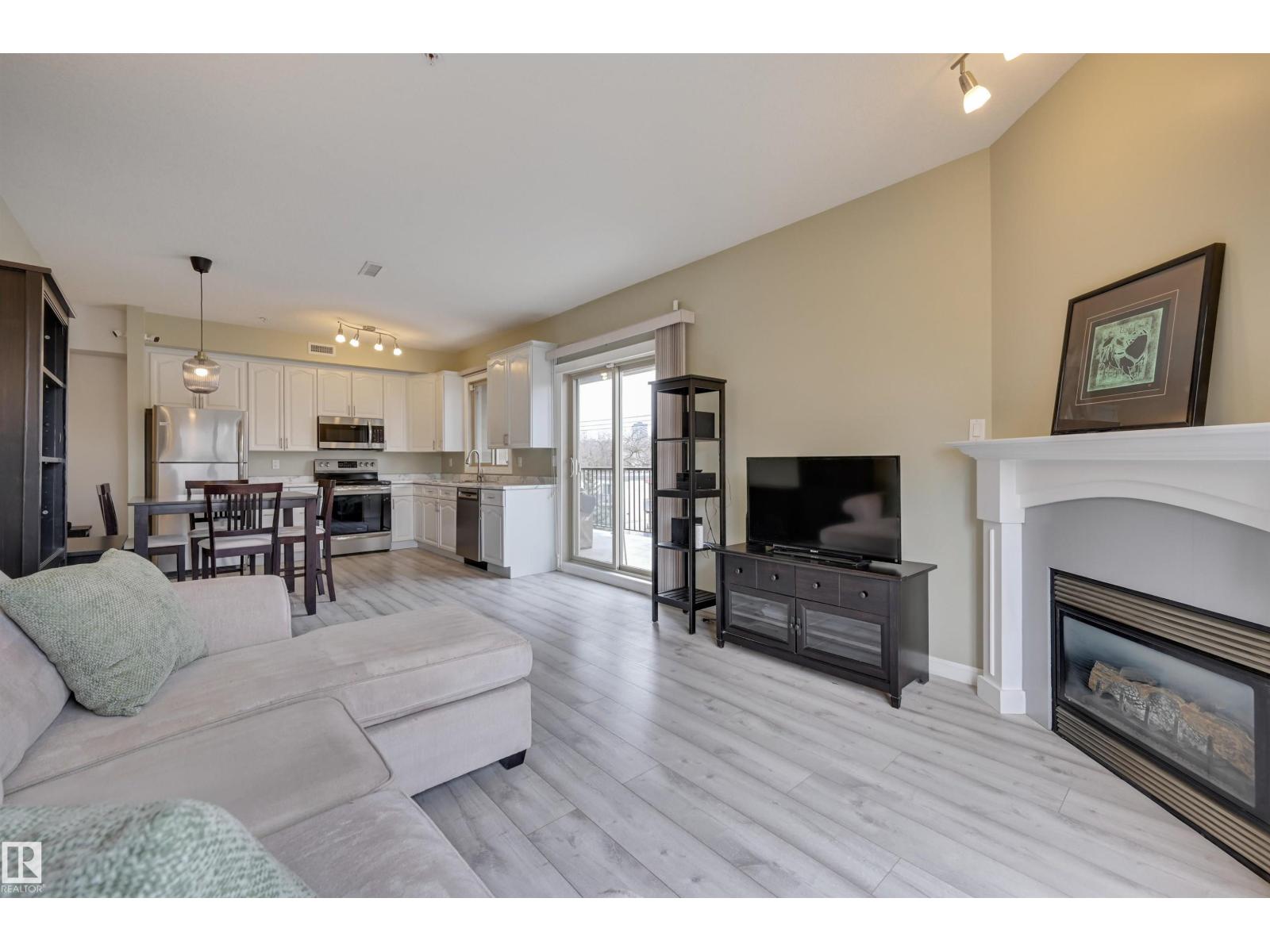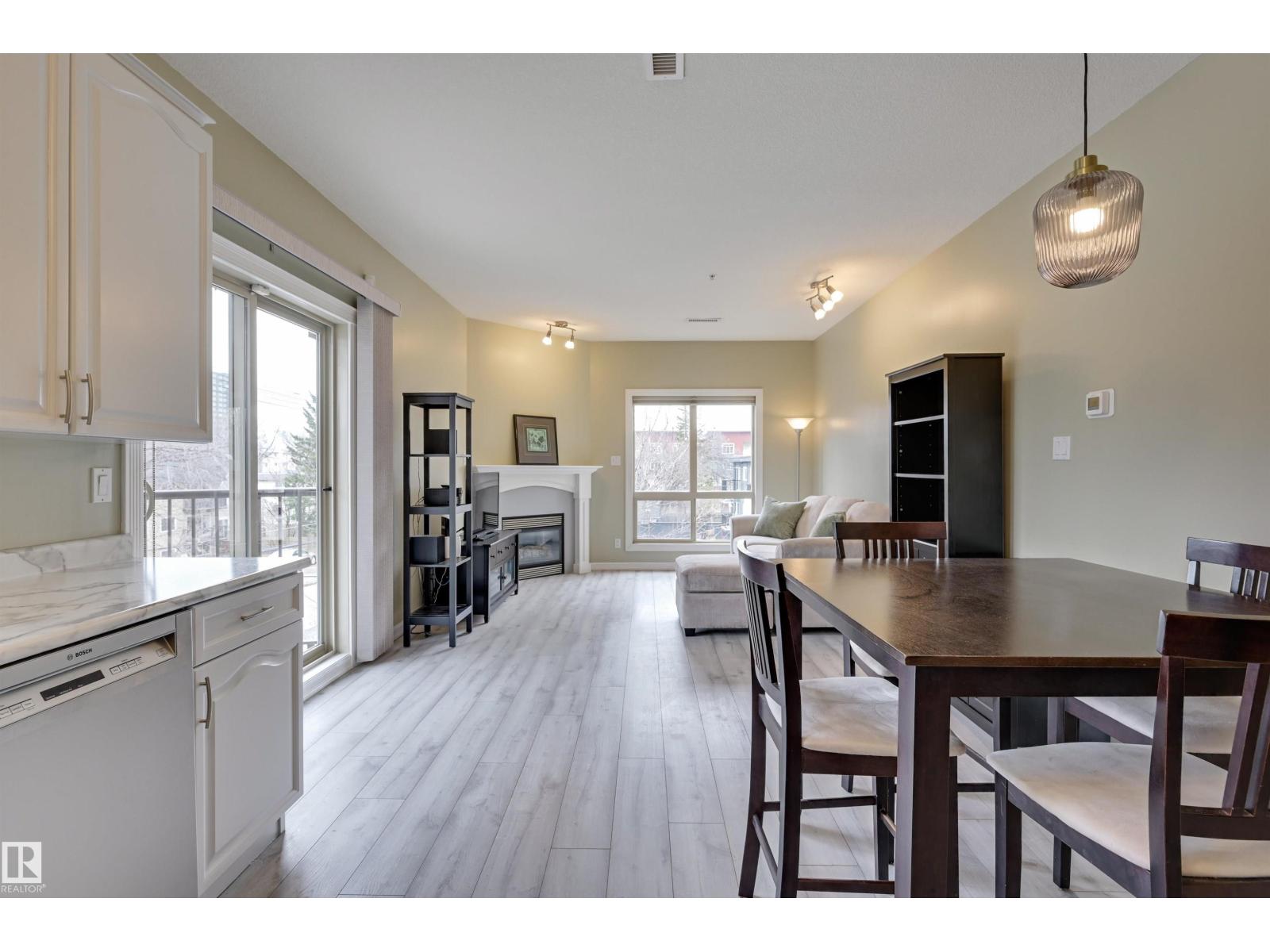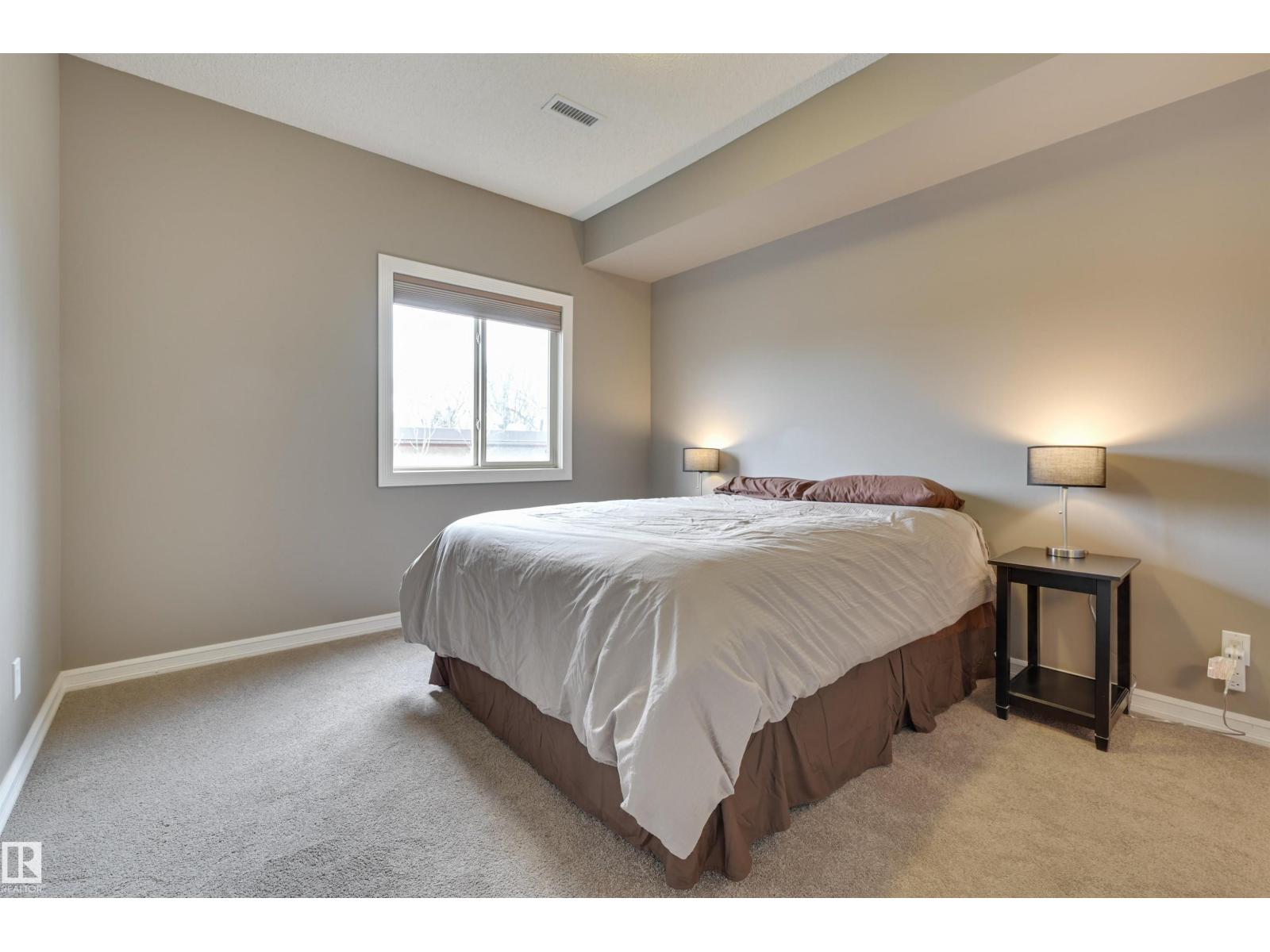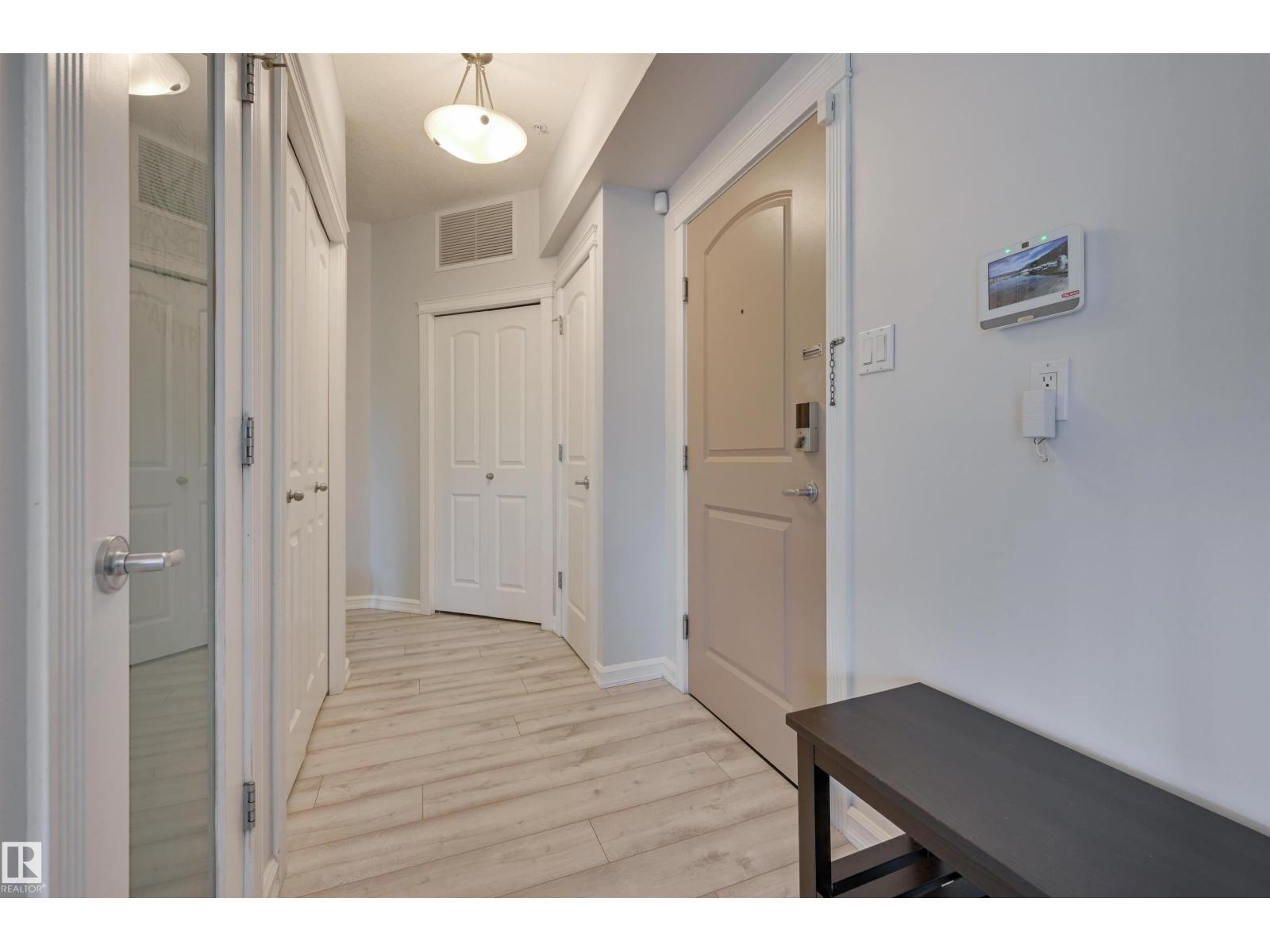 Enjoy treeline views from this meticulously renovated 932 sq. ft. condo in the desirable Tuscany Place. Perfectly situated just blocks from Whyte Avenue, you are steps away from vibrant restaurants, local coffee shops, public transit, and the scenic River Valley trails, with effortless access to the U of A and Downtown. The home features a modern open-concept layout with 9-foot ceilings and expansive northeast-facing windows that flood the living area with natural light. The large balcony has a natural gas hookup for BBQ. No detail has been overlooked in the extensive upgrades: fresh paint and carpet (2026), laminate flooring (2022), new furnace and A/C (2022), and all newer stainless steel appliances. The kitchen and bathrooms shine with resurfaced cabinetry, upgraded countertops and sinks. The spacious primary suite includes a walk-in closet with built-ins and a private ensuite. Includes a titled underground parking stall.The building is well maintained by a professional management company. (id:63190)
