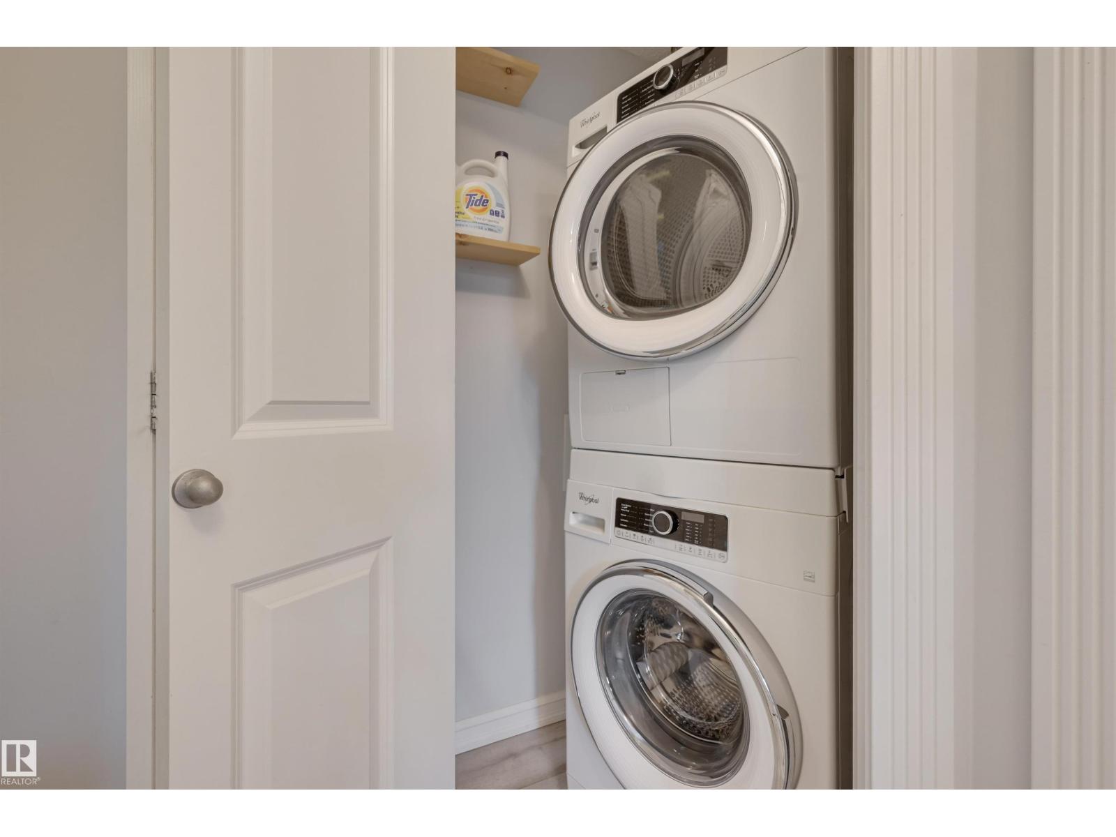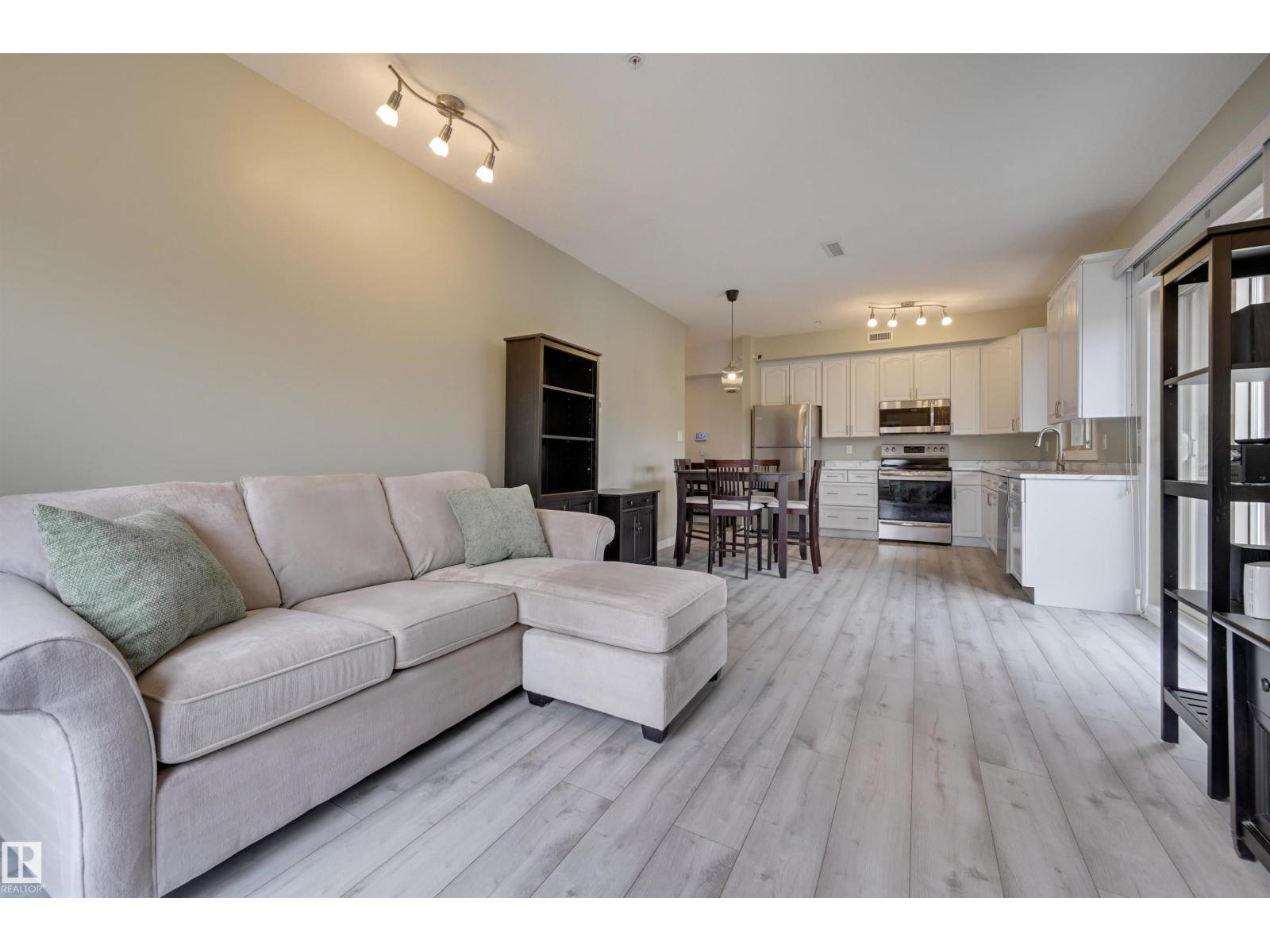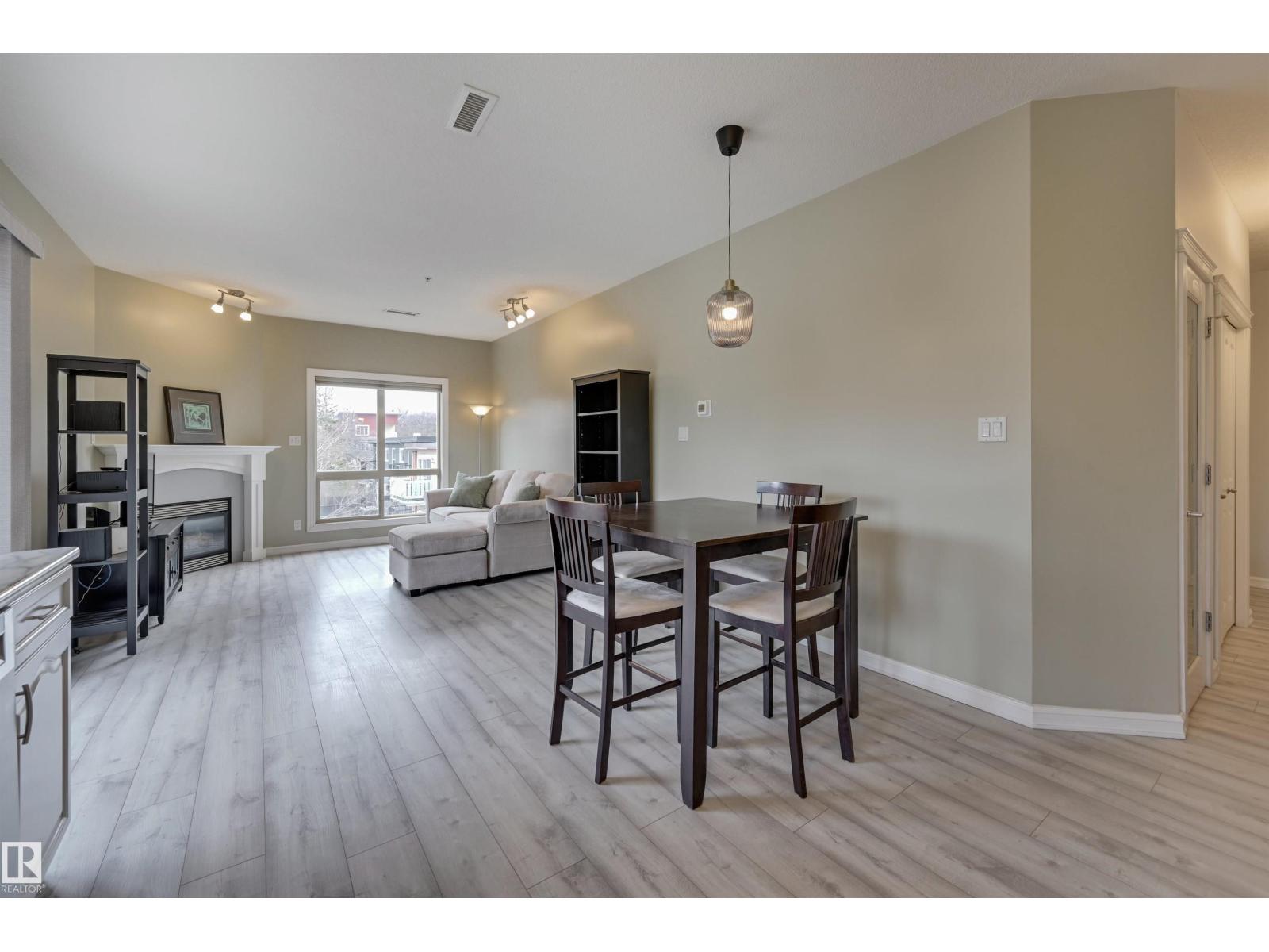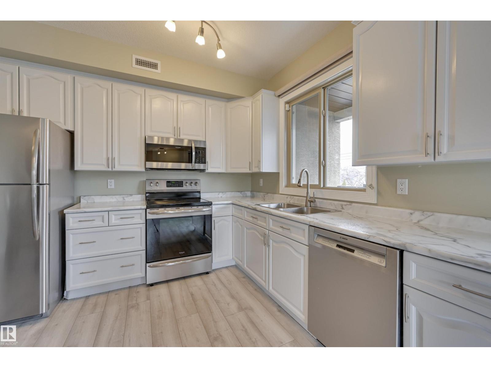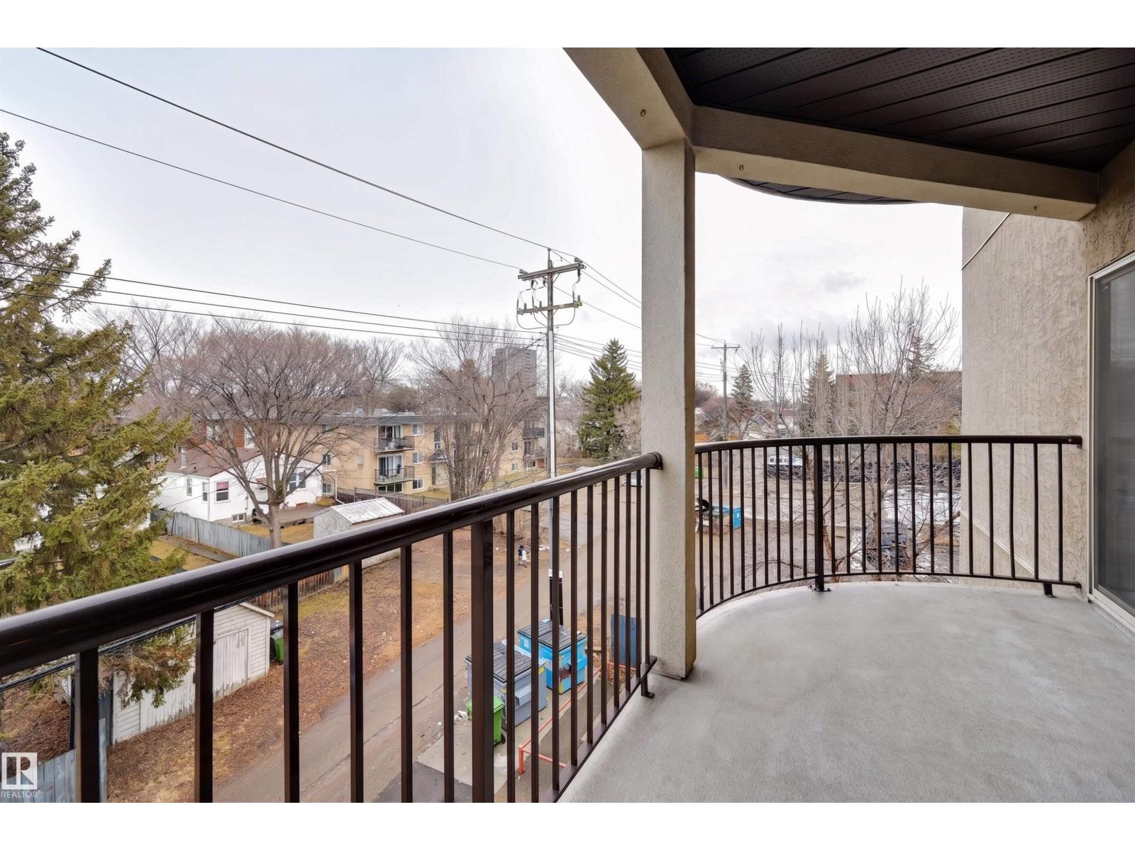 Enjoy treeline views from this meticulously renovated 932 sq. ft. condo in the desirable Tuscany Place. Perfectly situated just blocks from Whyte Avenue, you are steps away from vibrant restaurants, local coffee shops, public transit, and the scenic River Valley trails, with effortless access to the U of A and Downtown. The home features a modern open-concept layout with 9-foot ceilings and expansive northeast-facing windows that flood the living area with natural light. The large balcony has a natural gas hookup for BBQ. No detail has been overlooked in the extensive upgrades: fresh paint and carpet (2026), laminate flooring (2022), new furnace and A/C (2022), and all newer stainless steel appliances. The kitchen and bathrooms shine with resurfaced cabinetry, upgraded countertops and sinks. The spacious primary suite includes a walk-in closet with built-ins and a private ensuite. Includes a titled underground parking stall.The building is well maintained by a professional management company. (id:63190)
