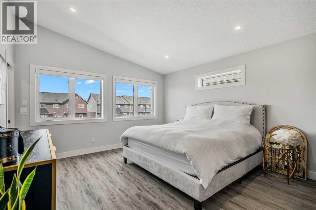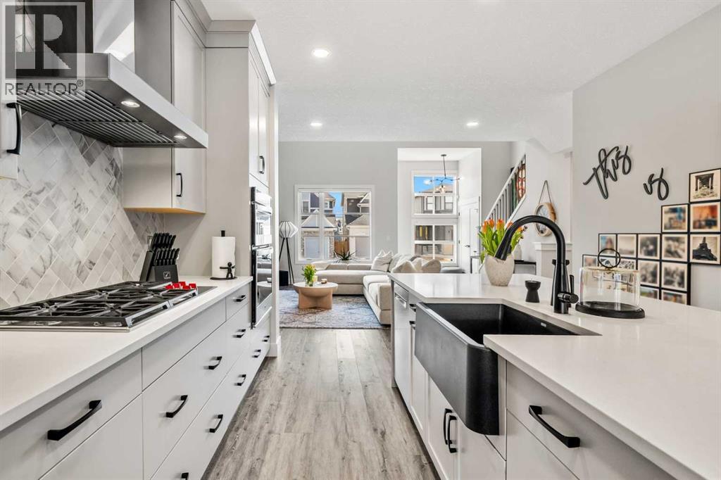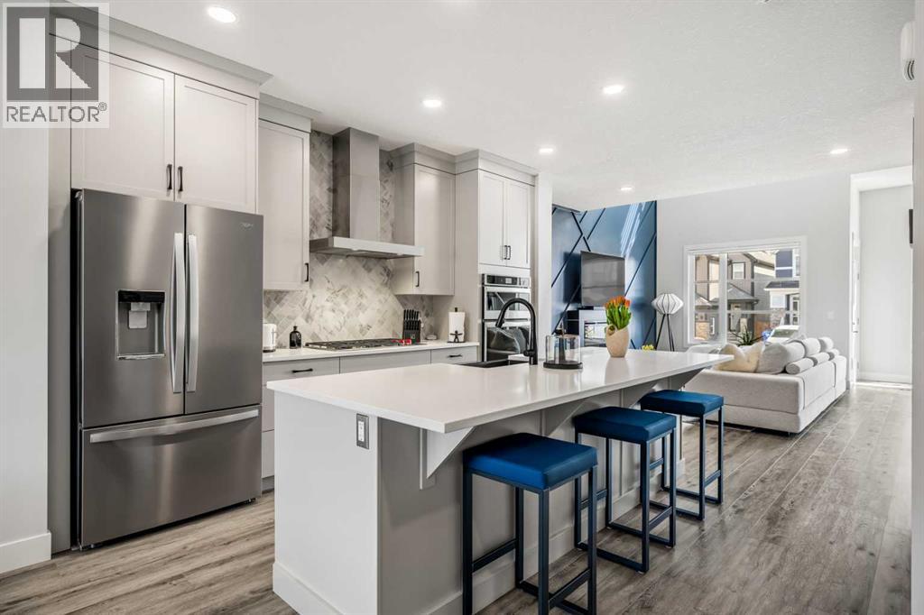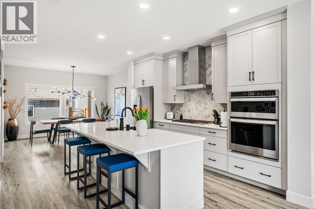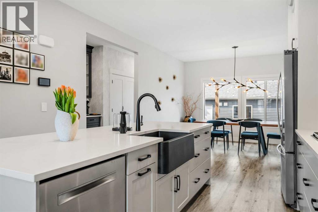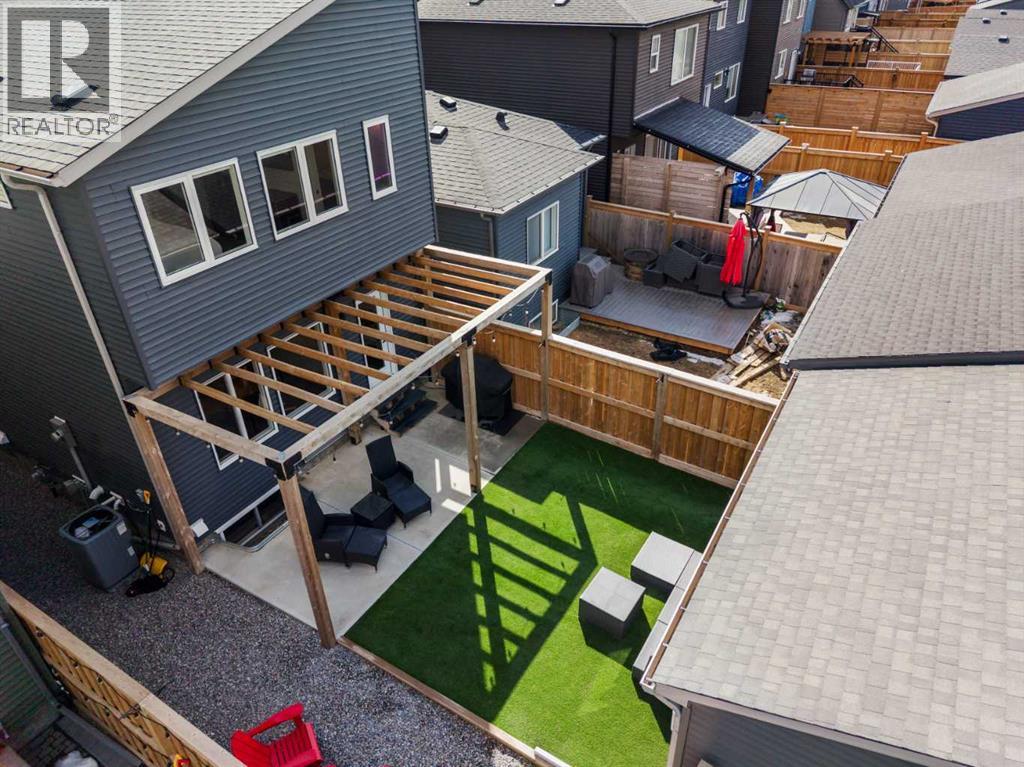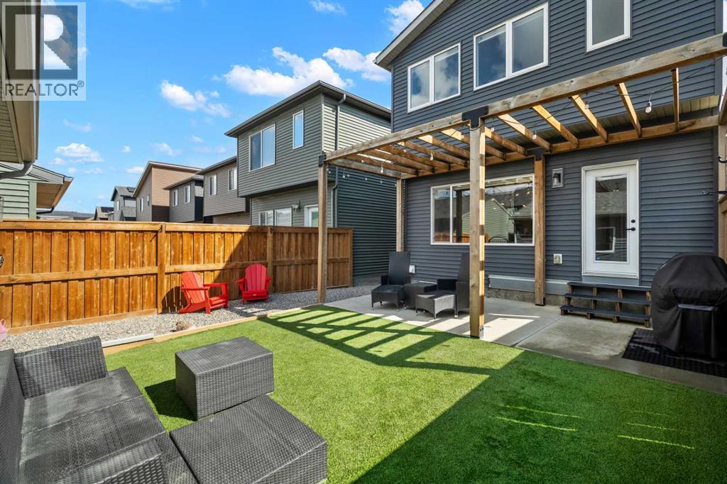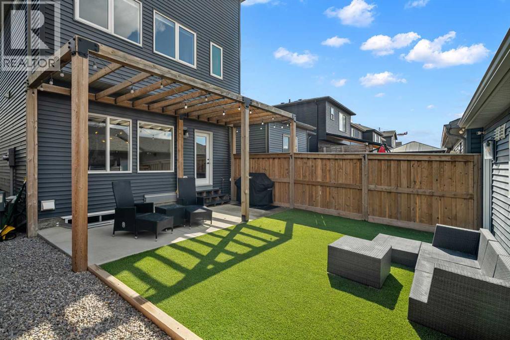 Welcome to 262 Belmont Heath SW, a beautifully maintained two-storey home offering nearly 1,700 sq. ft. of thoughtfully designed living space in the growing southwest community of Belmont. Built in 2019, this property combines modern finishes, smart upgrades, and low-maintenance outdoor living, making it an excellent choice for professionals, couples, or small families seeking comfort and convenience.The main floor welcomes you with a bright open-concept layout enhanced by large windows and durable vinyl plank flooring throughout the primary living areas. The spacious living room features a cozy electric fireplace, creating a warm focal point for relaxing evenings or entertaining guests. The kitchen is both stylish and functional, showcasing quartz countertops, a gas stove, built-in oven, modern cabinetry, and ample counter space, ideal for everyday cooking and hosting. The adjoining dining area provides plenty of room for gatherings, while the practical mudroom adds organization and convenience.Upstairs, the home offers two generously sized bedrooms, including a comfortable primary retreat with walk-in closet and private ensuite featuring heated floors, creating a relaxing and spa-inspired atmosphere. A second full bathroom and upper-level laundry room provide added functionality and ease for daily living.The unfinished basement offers excellent future potential and includes a bathroom rough-in, allowing homeowners to customize additional living space to suit their needs, whether a recreation area, home office, gym, or guest accommodations.Step outside to enjoy a private, low-maintenance backyard designed for comfort and ease, featuring faux lawn, irrigation system, pergola, concrete patio, and gas BBQ hookup, perfect for summer gatherings or quiet outdoor relaxation. The double detached insulated garage is finished with an epoxy floor, offering both durability and style. Additional upgrades include central air conditioning, water softener, HEPA filtration system, radon system, Ring doorbell camera, Telus security hardware, and Gemstone exterior lighting, providing enhanced comfort, efficiency, and peace of mind.Located close to parks, playgrounds, pathways, schools, shopping, and everyday amenities, Belmont continues to grow as a desirable southwest Calgary community known for its accessibility and family-friendly atmosphere.With its modern finishes, thoughtful upgrades, and future development potential, 262 Belmont Heath SW presents an excellent opportunity to own a well-cared-for home in a vibrant and convenient location. (id:63190)