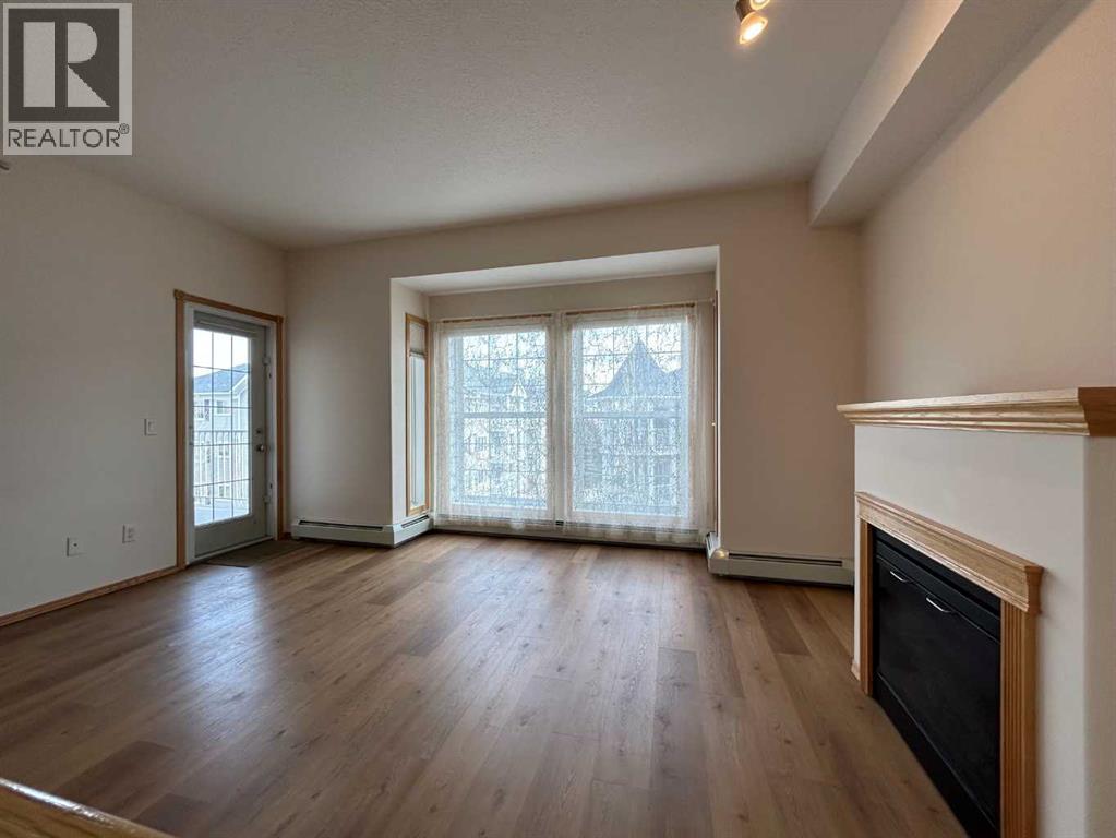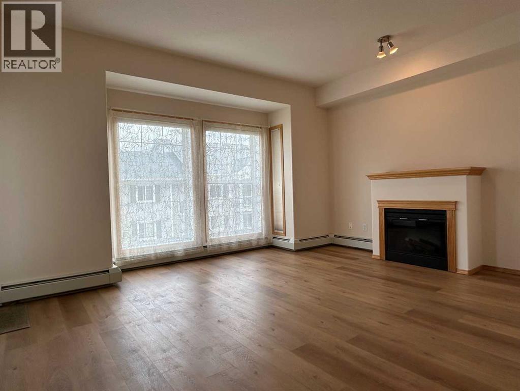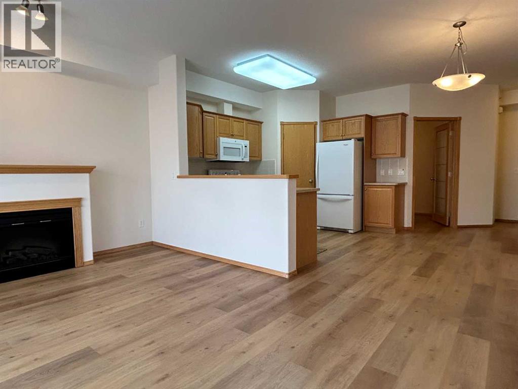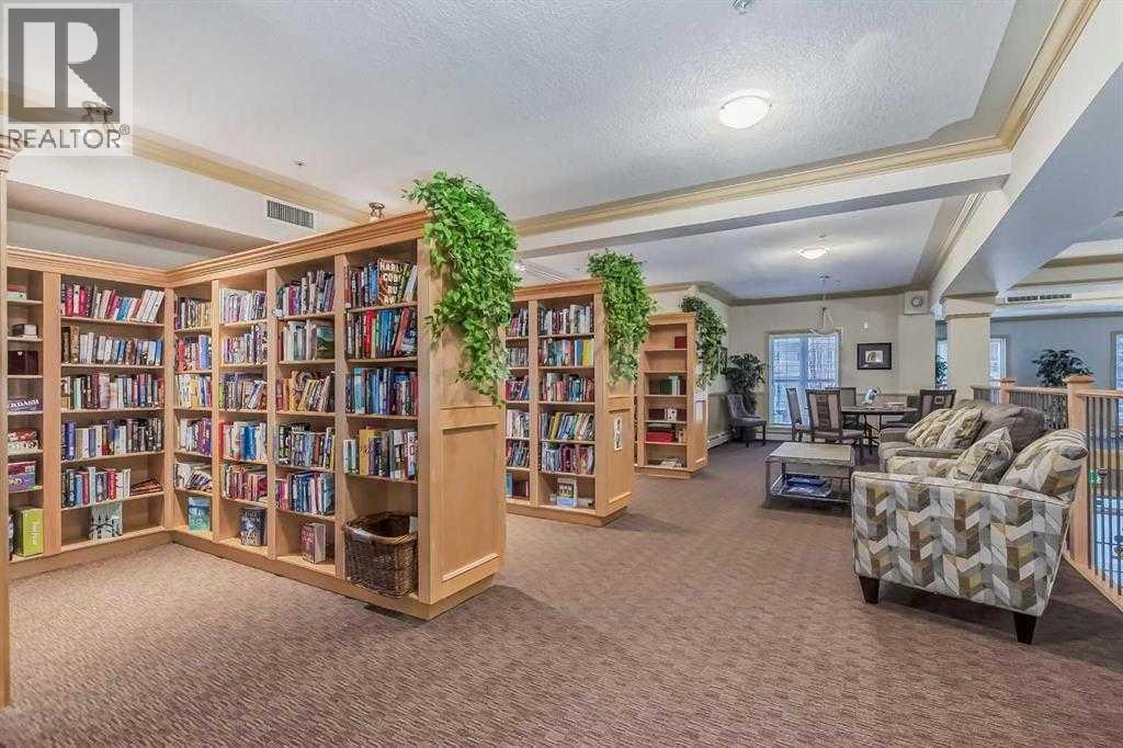 Welcome to “The Country Estates on the Cove” – Resort like Adult living at its best. This sunny - top floor with East exposure apartment has undergone substantial upgrades and features newer high end LVP flooring throughout, newer fridge, washer and dryer and kitchen countertops. This beautiful 1 bedroom + den (with large closet) unit is fully AIR CONDITIONED and overlooks THE Green Belt from a huge 12x8 covered balcony. It comes with 9ft ceilings, walk-in closet in the master bedroom, 4 pc bathroom and cozy fireplace in the living room. Open concept large kitchen with walk-in pantry - opens to a dining area and spacious living room. In-suite laundry room compliments this wonderful apartment. Included also is 1 titled heated underground parking stall with large storage. Amenities include a heated saltwater indoor pool, hot tub, steam room, craft room, exercise room, pool tables, movie theatre, library, party room, bowling alley, woodworking shop and car wash bay. Those located in Building 1000 can be easily accessed even during the coldest winter months through heated underground walkway on Level P2. This amazing complex also offers guest suites for your visitors staying overnight. There is ample visitor parking space. Condo fees include all utilities (electrical, heat and water). Minutes away from shopping, transit, Vivo Recreation Centre, Deerfoot Trail and the Airport. (id:63190)