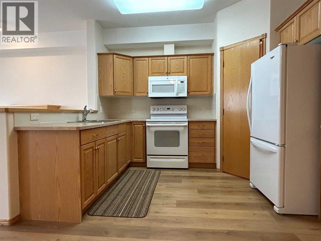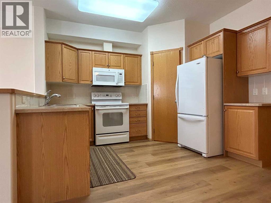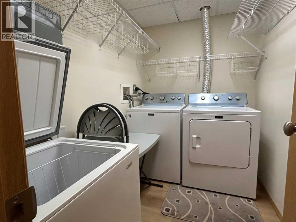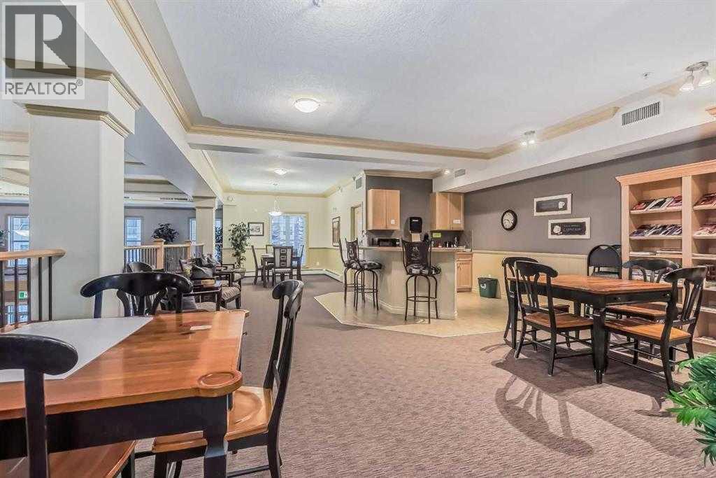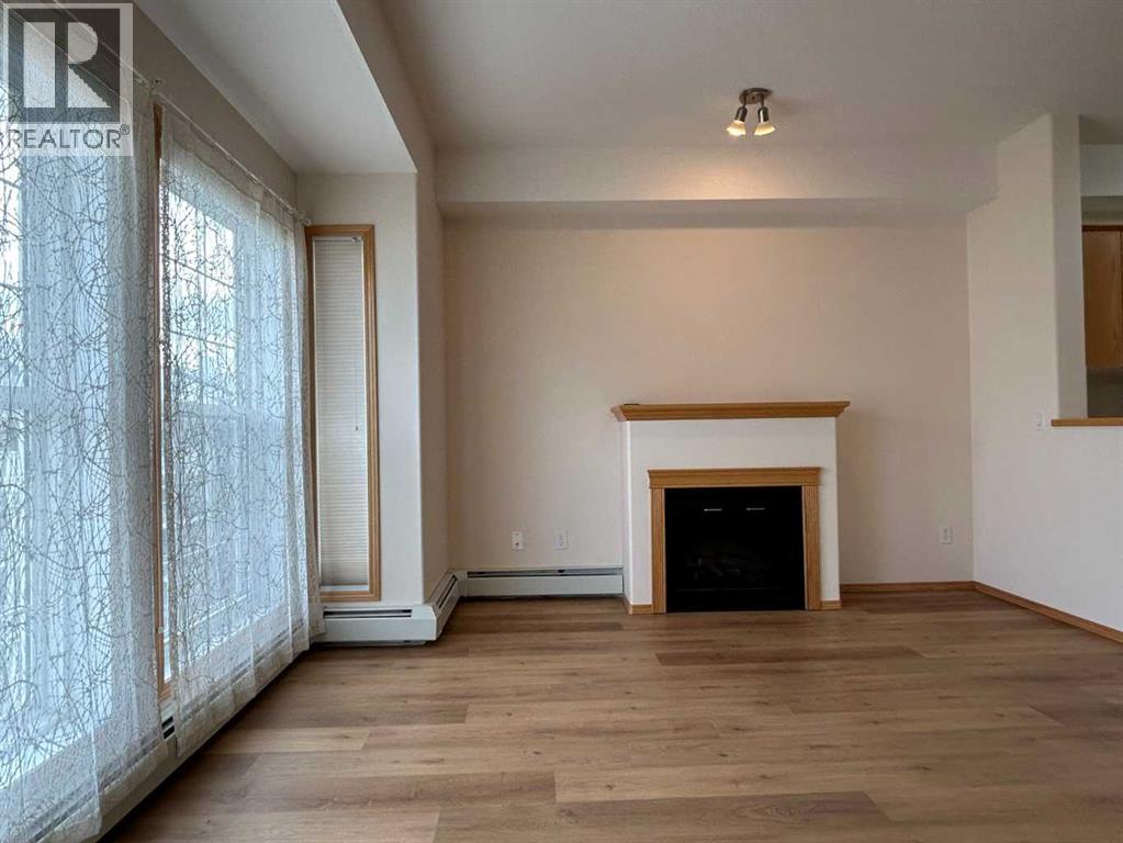 Welcome to “The Country Estates on the Cove” – Resort like Adult living at its best. This sunny - top floor with East exposure apartment has undergone substantial upgrades and features newer high end LVP flooring throughout, newer fridge, washer and dryer and kitchen countertops. This beautiful 1 bedroom + den (with large closet) unit is fully AIR CONDITIONED and overlooks THE Green Belt from a huge 12x8 covered balcony. It comes with 9ft ceilings, walk-in closet in the master bedroom, 4 pc bathroom and cozy fireplace in the living room. Open concept large kitchen with walk-in pantry - opens to a dining area and spacious living room. In-suite laundry room compliments this wonderful apartment. Included also is 1 titled heated underground parking stall with large storage. Amenities include a heated saltwater indoor pool, hot tub, steam room, craft room, exercise room, pool tables, movie theatre, library, party room, bowling alley, woodworking shop and car wash bay. Those located in Building 1000 can be easily accessed even during the coldest winter months through heated underground walkway on Level P2. This amazing complex also offers guest suites for your visitors staying overnight. There is ample visitor parking space. Condo fees include all utilities (electrical, heat and water). Minutes away from shopping, transit, Vivo Recreation Centre, Deerfoot Trail and the Airport. (id:63190)