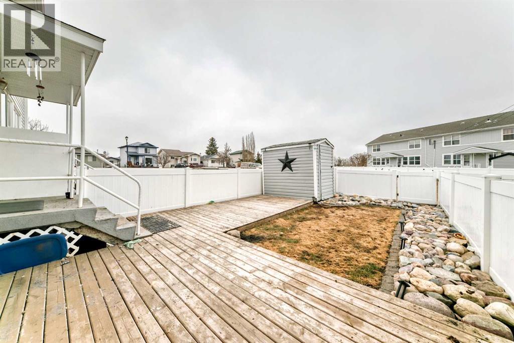 WELCOME to comfortable living in the quiet, family-friendly community of Springbrook! This inviting condo features beautiful hardwood flooring throughout the main level, with tile in the kitchen for added durability. The bright and welcoming living room is filled with natural light from large windows, creating a warm and open feel. The kitchen offers ample cupboard space, a spacious island, pantry, and a dining area that comfortably accommodates family and guests.Upstairs, you’ll find a generous primary bedroom, two additional bedrooms, and a full 4-piece bathroom. The basement is partially finished, just add the final touches to finish the space, which includes a versatile family room, a 4-piece bathroom with dual sinks, and a dedicated laundry area. Step outside to enjoy the fully fenced and landscaped backyard, featuring a large ground-level deck, and a storage shed, which is included, perfect for relaxing in the sun. Located close to an open green space, this home is ideal for families as well. Enjoy the peaceful, small-community feel while still being just a short commute to Red Deer. Condo fees include heat, water, sewer, and garbage, and pets are welcome with approval. (id:63190)