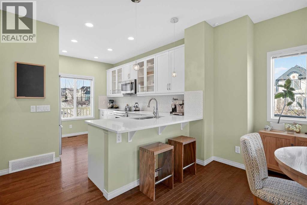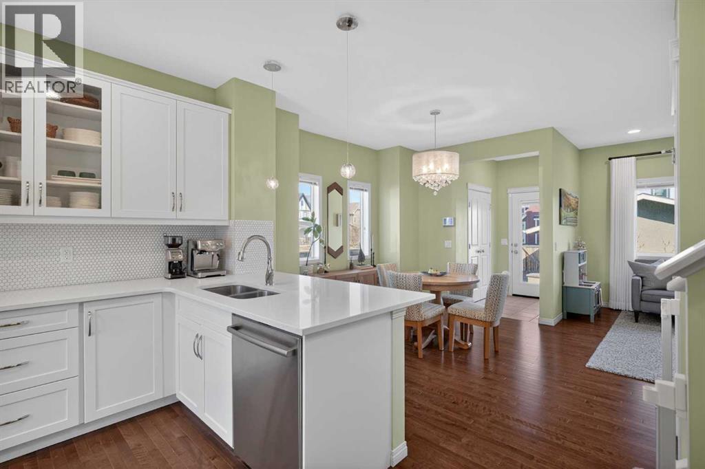 Welcome to this beautifully designed 2-storey home in the heart of Mahogany, one of Calgary’s most sought-after lake communities, ideal for young families looking for both lifestyle and functionality. With over 1,800 sq ft of living space and a fully finished basement, this home offers the space you need today with room to grow into tomorrow. Located just a short walk to the LAKE, your family can enjoy year-round activities, from summer beach days to winter skating, all within your own community. The main floor is warm and inviting, featuring HARDWOOD floors and an open-concept layout that keeps everyone connected. The kitchen is a true standout with upgraded appliances, including a premium WOLF INDUCTION STOVE, complemented by QUARTZ countertops and beautiful white cabinetry, creating a clean, elevated space that works just as well for everyday living as it does for entertaining. Upstairs, you’ll find three well-sized bedrooms, including a primary retreat with its own ensuite, along with a full bathroom, a layout that fits growing families perfectly. The fully finished basement adds even more versatility, featuring a comfortable family room and a dedicated office, both connected by a DUAL SIDED FIREPLACE that brings warmth and character to each space, ideal for relaxing, movie nights, or working from home. Set on an OVERSIZED CORNER LOT, a rare offering in Mahogany, this home provides an exceptional amount of outdoor space, privacy, and natural light. The expanded lot creates a more open feel and gives you the flexibility to truly enjoy your yard. The backyard is built for real use, complete with a CUSTOM STONE PATIO that’s perfect for summer BBQs or unwinding at the end of the day, along with a large DOUBLE DETACHED GARGE offering plenty of room for vehicles, storage, or hobbies. The home is finished with durable HARDIE BOARD siding, known for its long-lasting performance and low maintenance appeal. Added comfort comes from CENTRAL AIR CONDITIONING and an upgraded air filtration system, ensuring a healthier and more comfortable living environment year-round. This is a home that delivers where it matters most, space, layout, location, and a community your family will actually use. (id:63190)