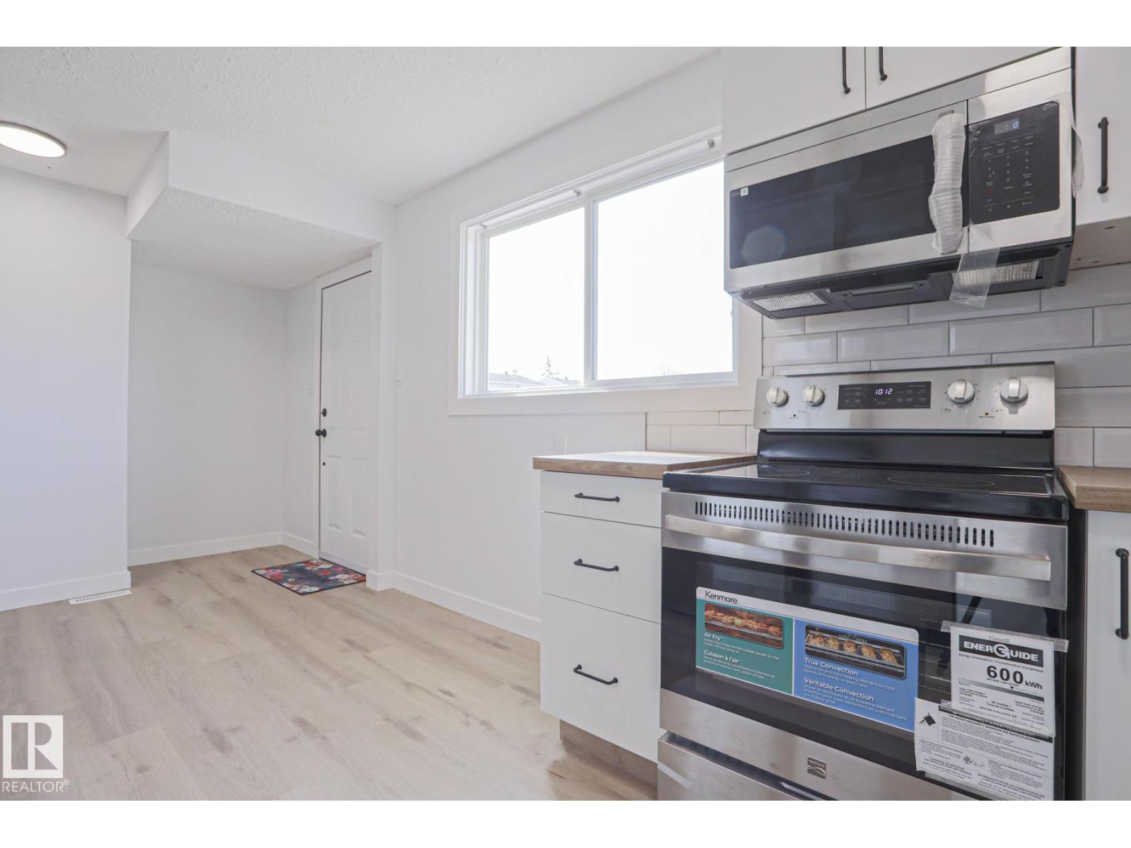 STUNNING TOWNHOME! This fully renovated 3-bedroom, 2 FULL bath home showcases exceptional craftsmanship and high-end finishes throughout—truly a standout property. Every detail has been thoughtfully upgraded, from the seamless vinyl plank flooring (NO CARPET) to the stylish modern lighting and BRAND NEW premium appliances. The bright, open main floor features a spacious living room filled with natural light and a beautifully redesigned kitchen with crisp white cabinetry, elegant hardware, subway tile backsplash, and rich butcher block countertops. Upstairs offers three generous bedrooms and a spa-inspired bathroom with custom tile work. The fully finished basement continues the quality with a second full bath featuring a sleek glass shower and upscale finishes, plus laundry. Step outside to your private fenced yard with deck—perfect for relaxing or entertaining & has A/C! LOW condo fees in a well-maintained complex close to all amenities—an exceptional opportunity for first time buyers or investors! (id:63190)