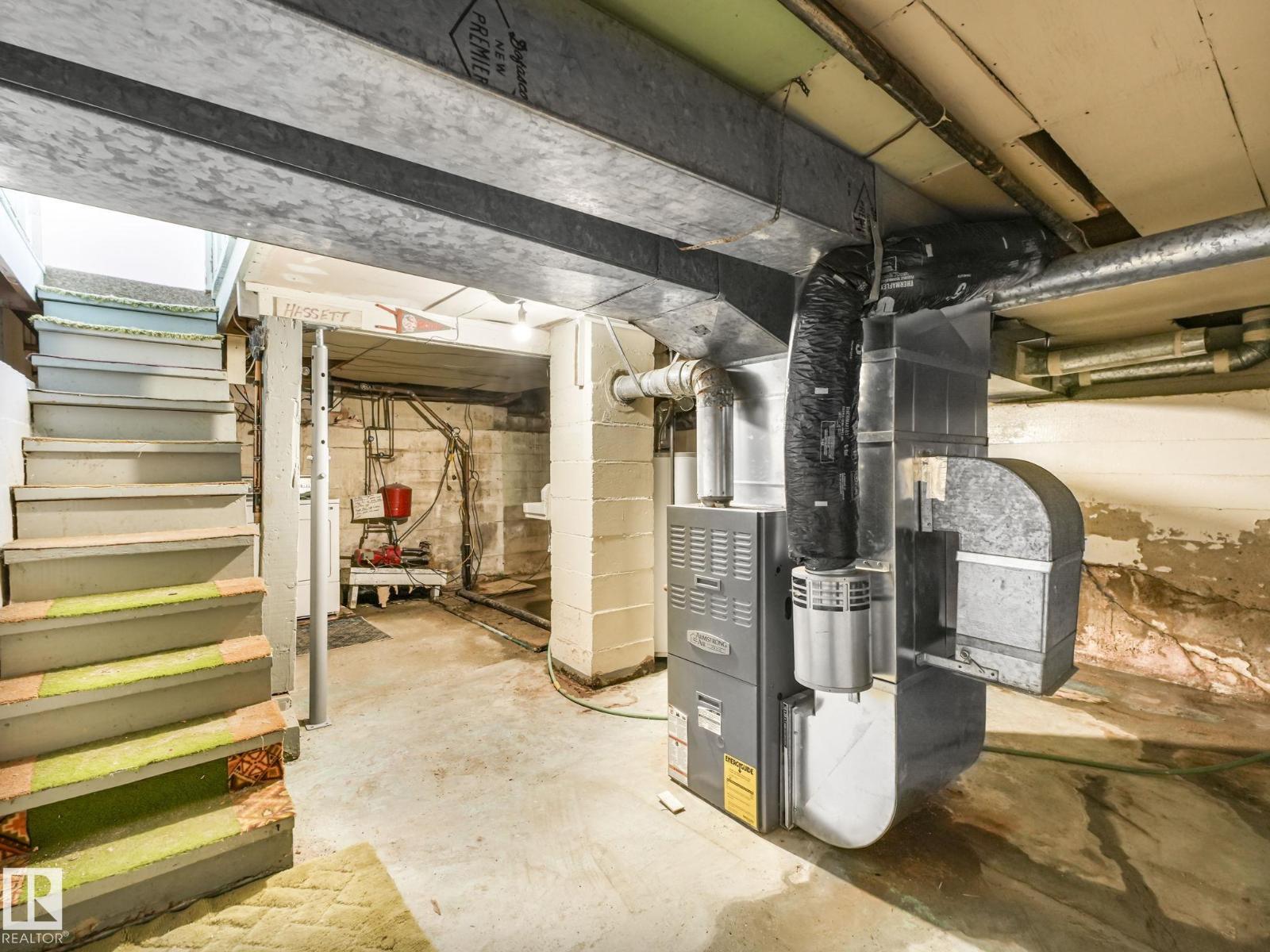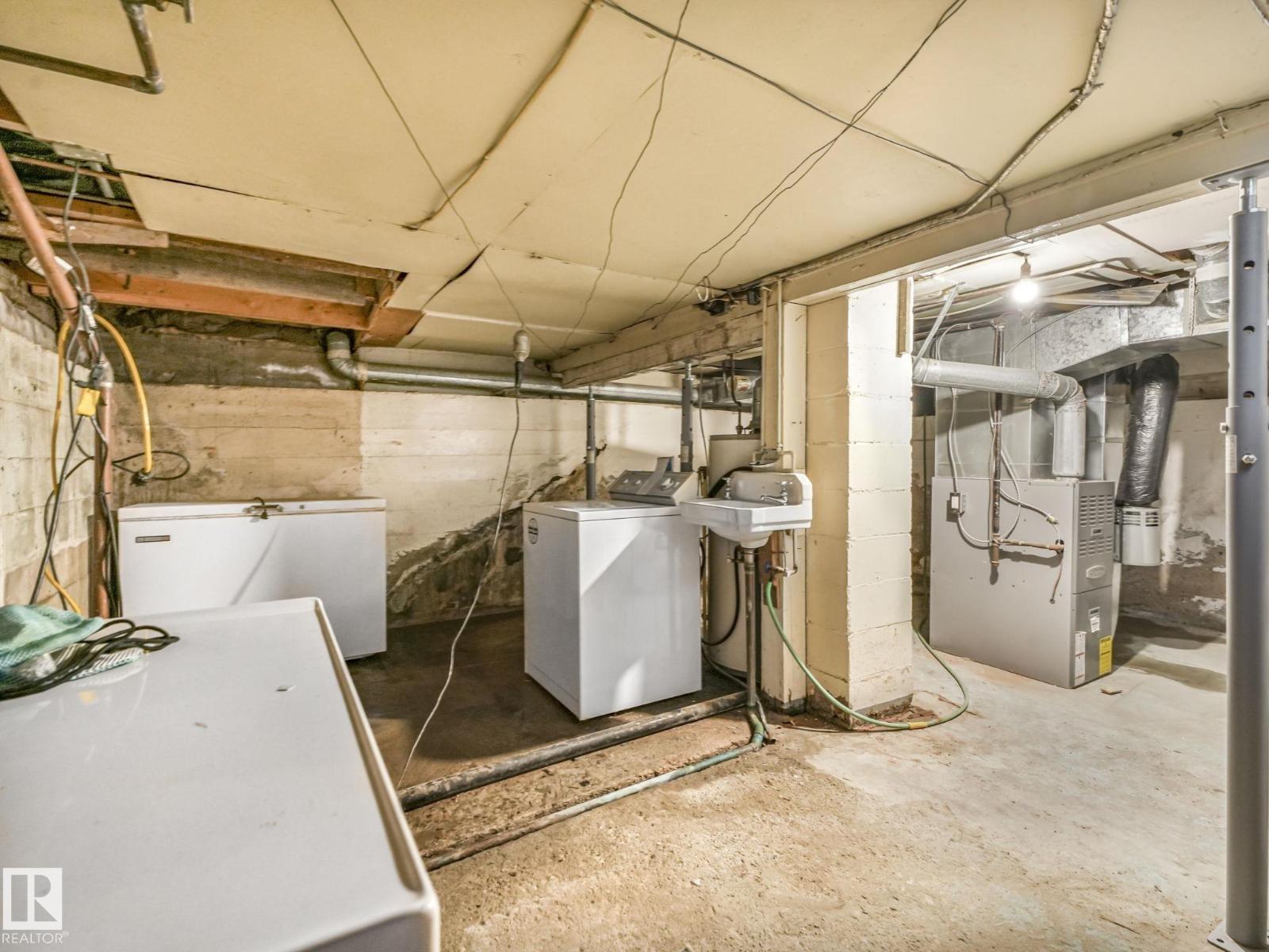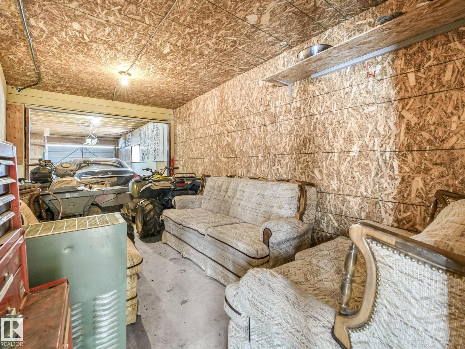 Welcome to this charming bungalow in Lamont! Lots of potential for this fixer upper situated in the middle of Lamont on a 9700 SF lot, connected with 100 amp power on city water and set up for a private well. Just over 1100 SF, you are greeted with a large living room brining in tons of natural light, a good sized dining room and the kitchen. 3 good sized bedrooms with closets & a 4 pc bathroom. Unfinished basement (6ft) has a newer furnace and washer/dryer. Attached is an oversized tandem single car garage and a workshop at the back perfect for additional storage or small projects. Situated on a massive lot with trees, back alley, and storage shed. House also includes newer shingles & added attic insulation. Best deal in town! (id:63190)