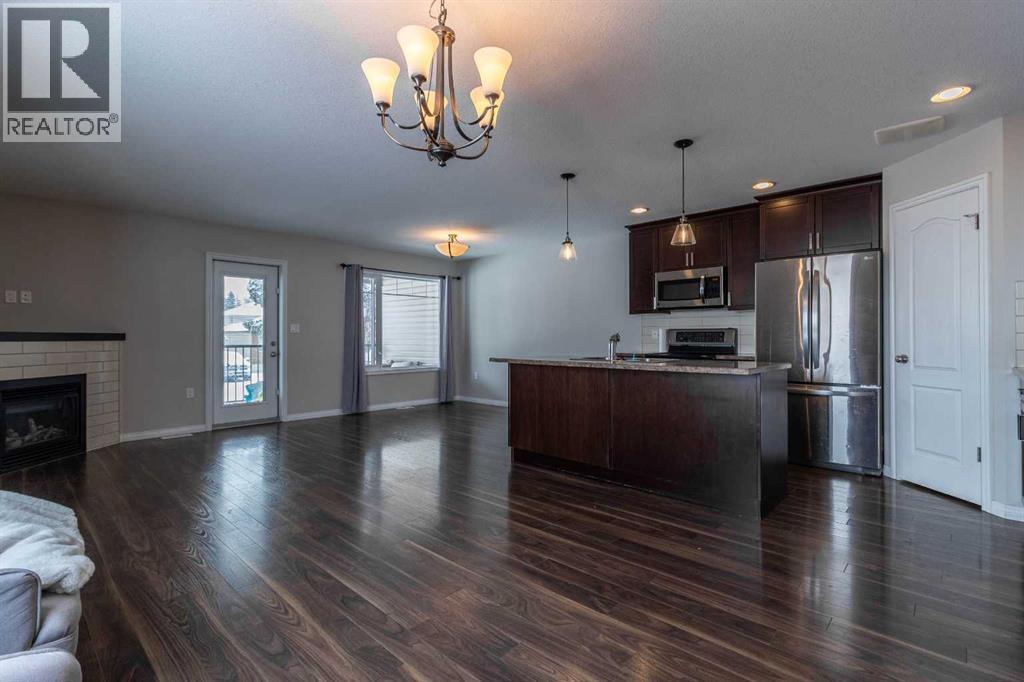 Attention First-Time Buyers, Retirees, Growing Families & Investors!Ideally located in the heart of the city, this well-maintained half duplex offers unbeatable convenience—just steps from the college, Kin Coulee Park, and a wide range of amenities. Enjoy the rare combination of a newer home in an established neighbourhood, delivering both comfort and location.Designed with functionality in mind, the open-concept main floor provides a versatile layout perfect for everyday living and entertaining. The kitchen features ample cabinetry and counter space, a corner pantry, and a central island that flows seamlessly into the dining area and spacious living room. Cozy up by the gas fireplace or step out onto the private covered deck—ideal for relaxing or hosting guests.The main level is complete with a generous primary bedroom and a full 4-piece bathroom, offering convenient single-level living if desired.Downstairs, you’ll find three additional well-sized bedrooms, with the flexibility to convert one into a family room or rec space to suit your needs. A large laundry/mudroom provides direct access to the finished garage, adding to the home’s practicality. Recent upgrades include a newer a/c, hwt, paint and a new washing machine. Low-maintenance, move-in ready, and available for quick possession—this is an excellent opportunity in a sought-after location. Book your showing today! (id:63190)