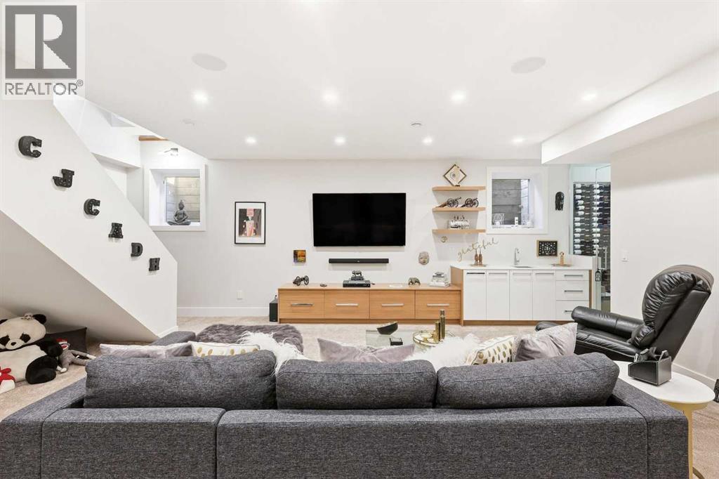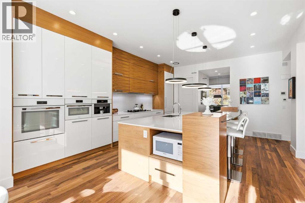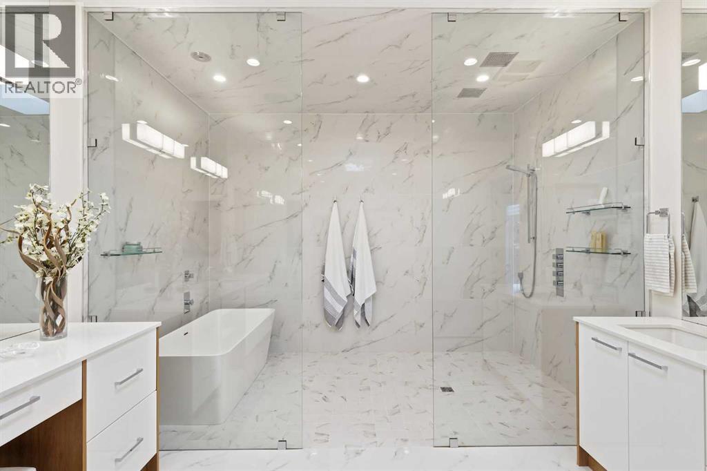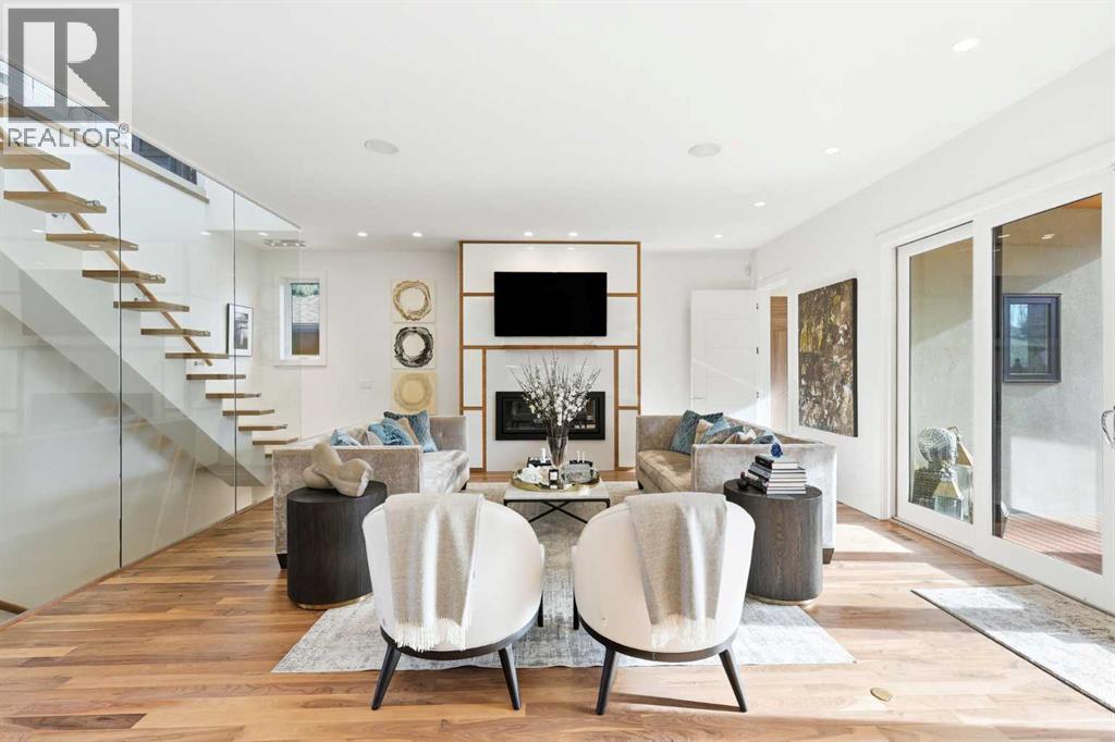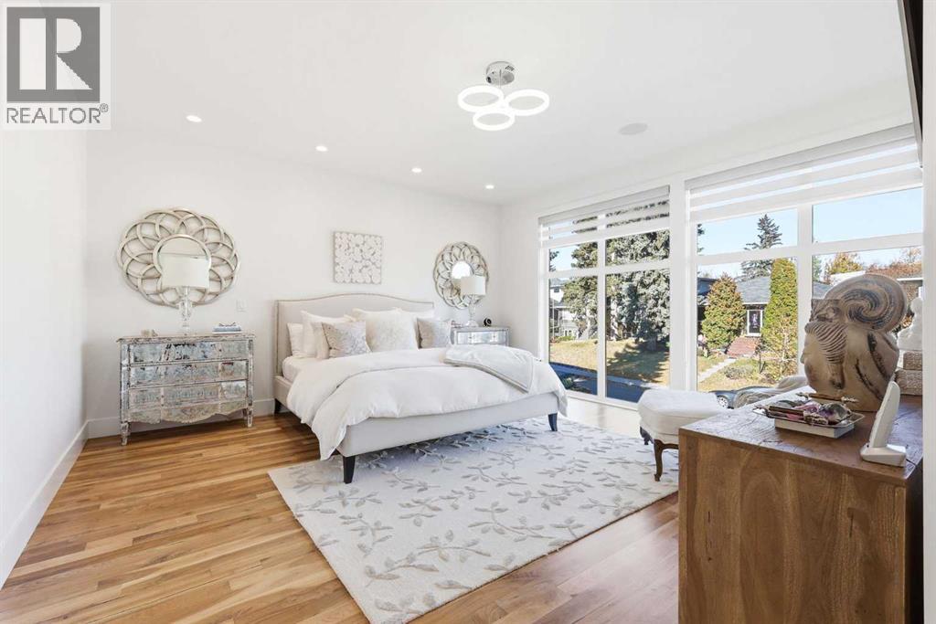 Experience refined contemporary living in this exceptional Elboya residence, offering nearly 5,200 square feet of luxurious space designed for comfort and style. This sophisticated home features 5 bedrooms, 3.5 bathrooms, and a south-facing backyard with a covered deck—all set along a beautiful tree-lined street. The main level impresses with 10-foot ceilings and exotic walnut hardwood floors, complemented by a bright formal dining room, private office, and inviting family room. The chef-inspired kitchen showcases Miele appliances, a large island with quartz countertops, custom cabinetry, a spacious butler’s pantry, and premium Riobel and Brizo fixtures.Upstairs, the expansive primary suite is a true retreat, featuring a stunning dressing room and a spa-like ensuite with heated floors, dual sinks, a freestanding tub, and a luxurious walk-in shower. Three additional bedrooms with generous walk-in closets, a laundry room, loft area, and bonus room complete the upper level. The lower level is designed for both relaxation and entertainment, offering in-floor heating, a theatre room, guest quarters, a steam shower, recreation area, and wine room.Outside, enjoy a beautifully landscaped garden, and your own private oasis with a relaxing hot tub and lounge area. A triple detached garage provides ample space for vehicles and storage. Perfectly situated near Elboya Park, top-rated schools, and boutique shopping, this remarkable home blends modern elegance with everyday convenience—a must-see property in one of Calgary’s most desirable neighbourhoods. Click on the virtual tour or book your showing today. (id:63190)