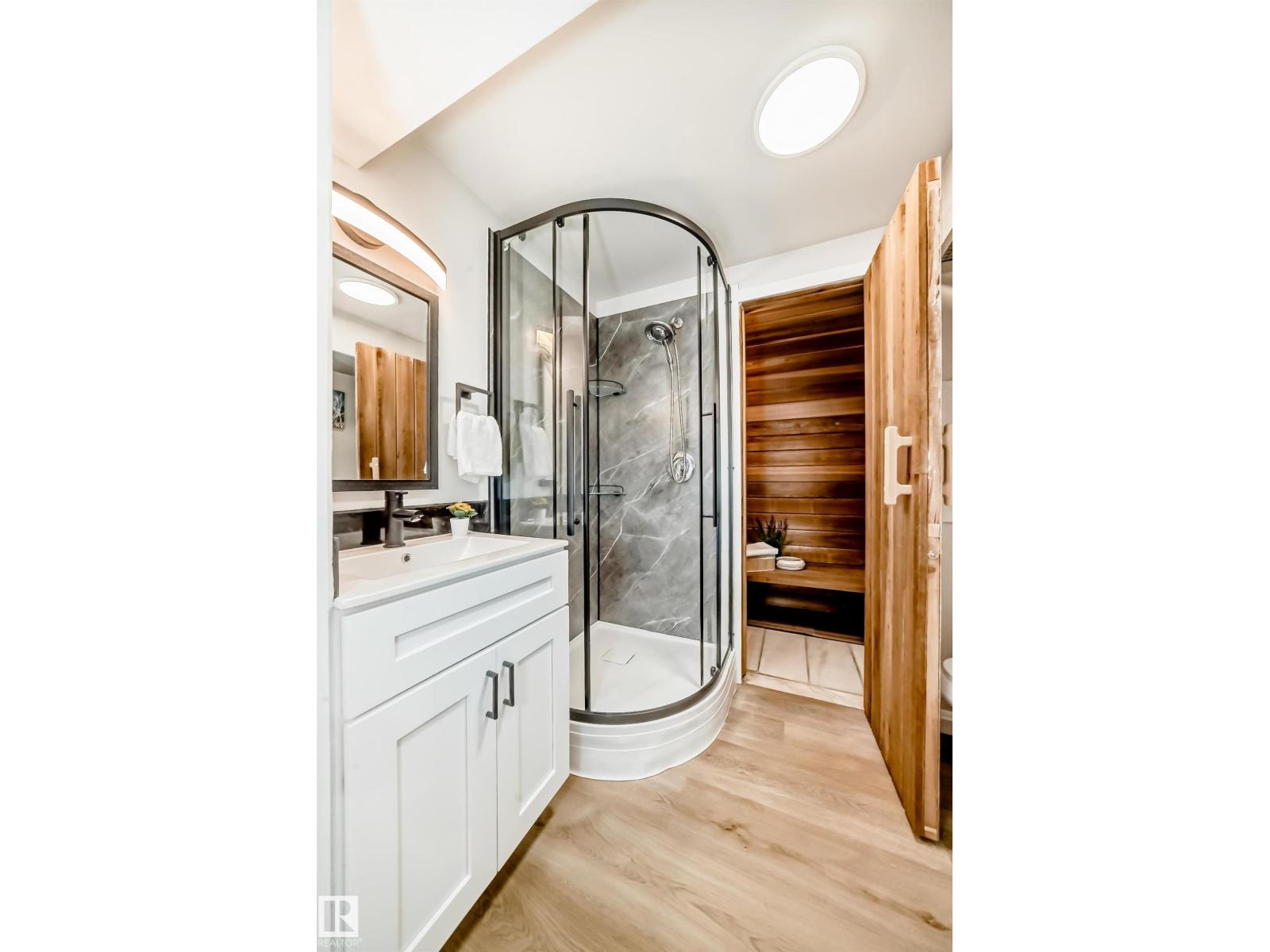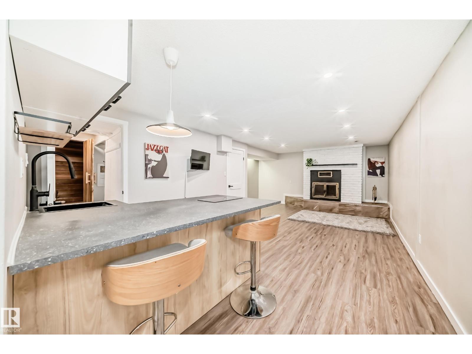 Fresh on the market–beautifully RENOVATED family home with premium features! This move-in ready home offers HEATED, INSULATED, OVERSIZED, DOUBLE GARAGE DETACHED, a primary bedroom with ENSUITE, and a private BUILT-IN SAUNA. Bright living w/dining areas and a modern BRAND-NEW kitchen with PREMIUM QUARTZ countertops provide comfort for everyday living. The main floor hosts 3 bedrooms including a primary w/2-pc ensuite & a spa-inspired 5-pc bath. The fully finished basement is a true highlight: it features a large 4th bedroom, a spacious den, a living area with wood-burning fireplace, and a kitchenette/bar, perfect for family gatherings or entertaining friends. Extensive updates include newer roof & windows, furnace (2007), HWT (2024), added insulation, front porch, & rear deck with a gas hookup for BBQ. Located within walking distance to elementary and junior high schools, this home perfectly combines style, function, and convenience in a desirable neighborhood. (id:63190)