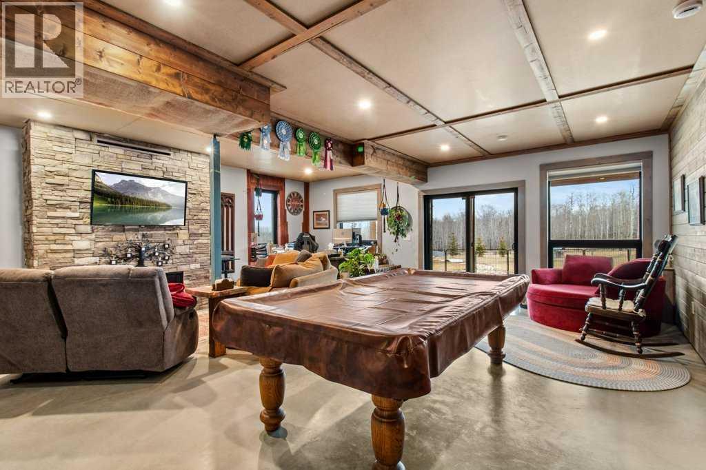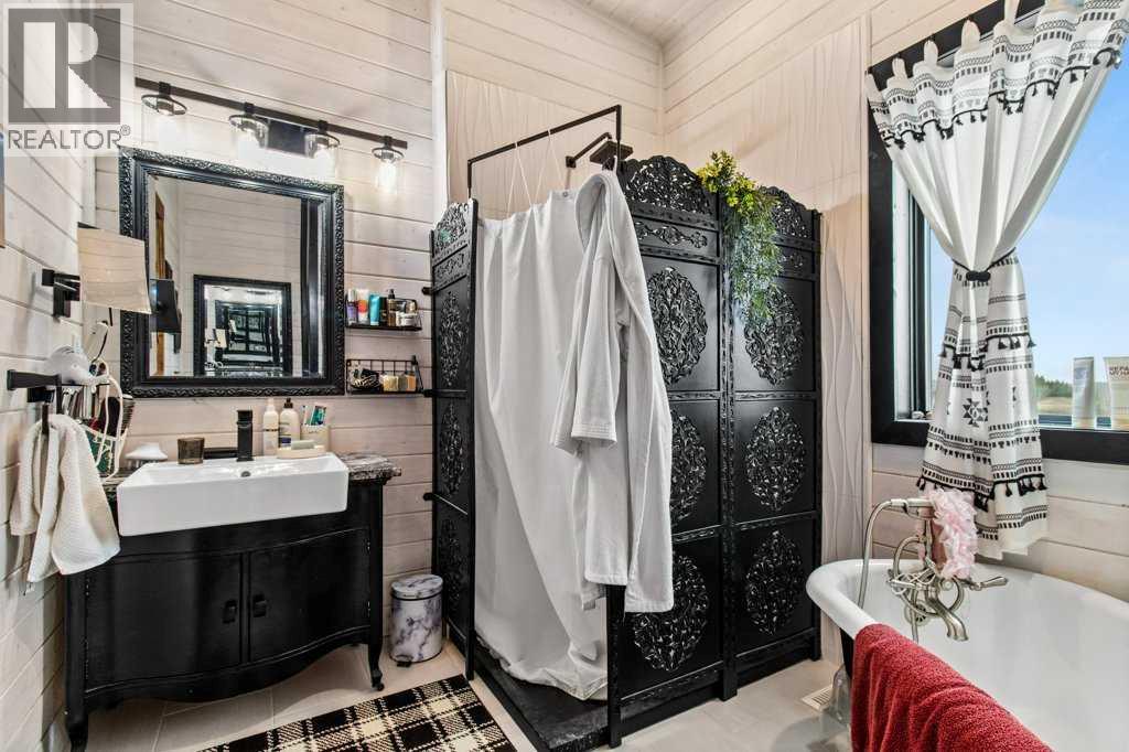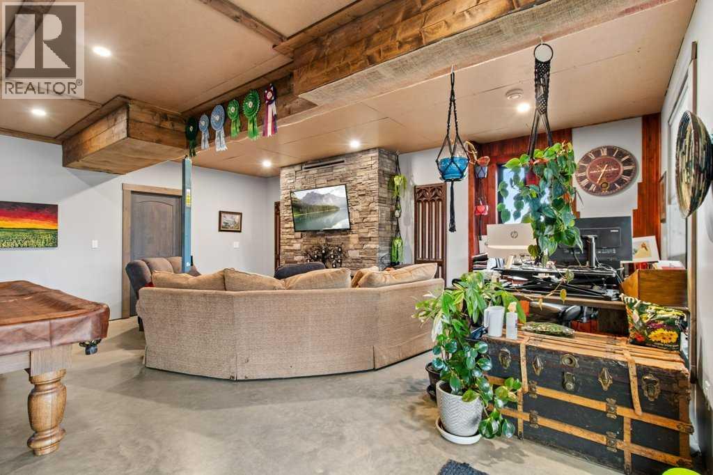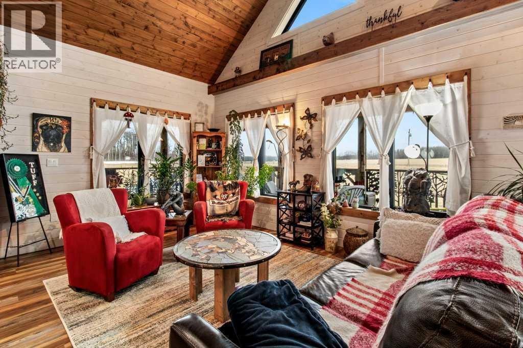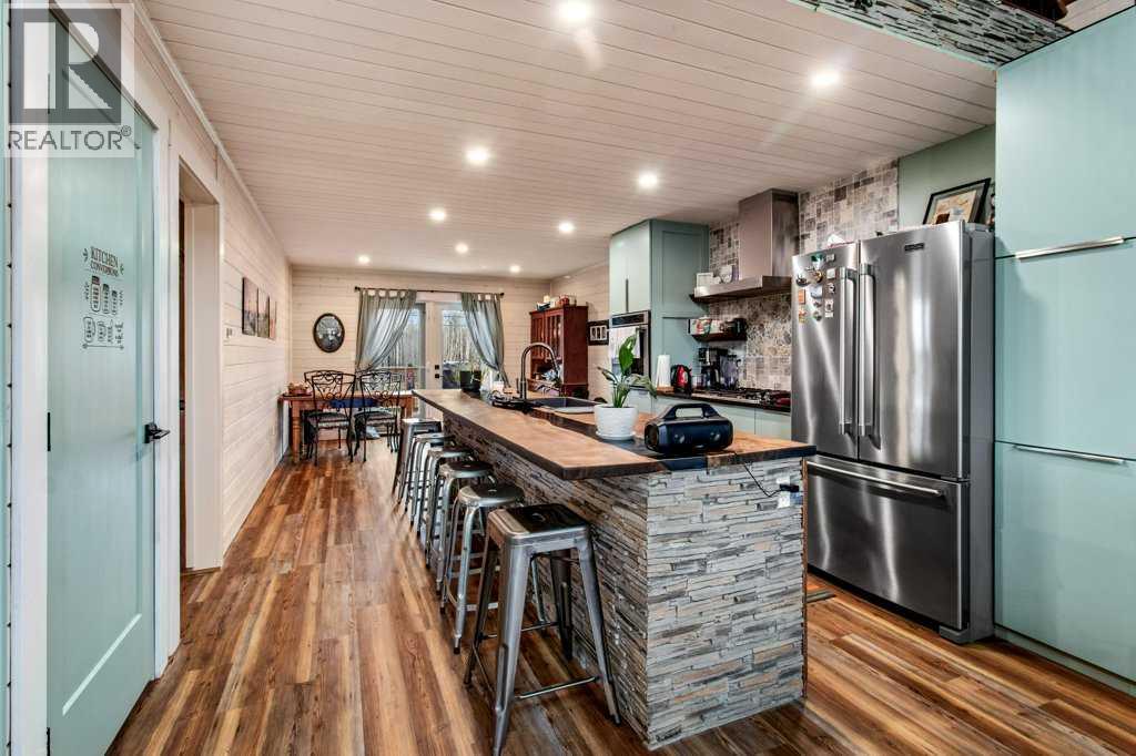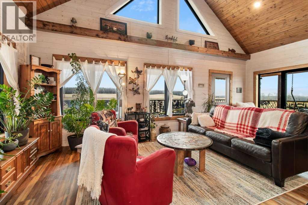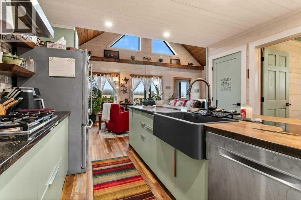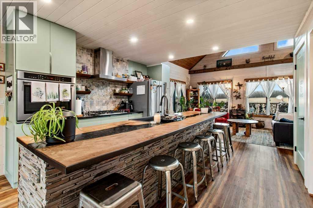 Located just 45 minutes from Red Deer, 15 minutes from Rimbey, 20 minutes from Ponoka, and 35 minutes from Sylvan Lake, this beautifully designed 2021-built acreage offers the perfect blend of rural living and modern comfort, with paved access right to the driveway. The exterior features durable Hardie board and Versetta stone, complemented by a wrap-around veranda, with a 12x24 back deck finished in Tough Deck. The property is fully fenced with 5-foot fencing for security and functionality. Inside, the main living space showcases durable vinyl plank flooring throughout. The kitchen is a standout with a 12-foot custom walnut epoxy river island, stainless steel appliances, gas cooktop, electric oven, and farmhouse sink, designed for both function and entertaining. The home offers well-planned living spaces with quality finishes throughout. A hot water on-demand system adds efficiency and convenience. The walkout basement features 9-foot ceilings, in-floor heating, a gas fireplace, two additional bedrooms, and a full 4-piece bathroom, providing excellent additional living space. Outside, the property is fully set up for acreage living. Cross-fenced paddocks are supported by a Ritchie water system for rotational grazing. Additional water storage includes two 1000-litre rainwater totes. Septic is a 2000-gallon dual tank system installed in 2021. Outbuildings are a major highlight. The barn/shop is built around an 18-foot bin with an overhead garage door, ideal for storing recreational toys and equipment. Attached is a 16x19.5 barn section on one side and a dedicated workshop on the other, offering excellent flexibility. The attached garage is fully serviced with its own electrical panel, separate from the home’s electrical system. Additional features include a heated 12x24 kennel, raised garden beds, fruit trees, solar motion lighting, and a stone pathway leading to a unique year-round fire pit set within an 18-foot bin structure with chimney. There is also a 35-amp RV plug for added convenience. A well-equipped, self-sustaining acreage offering space, functionality, and modern rural living in a highly accessible location. (id:63190)
