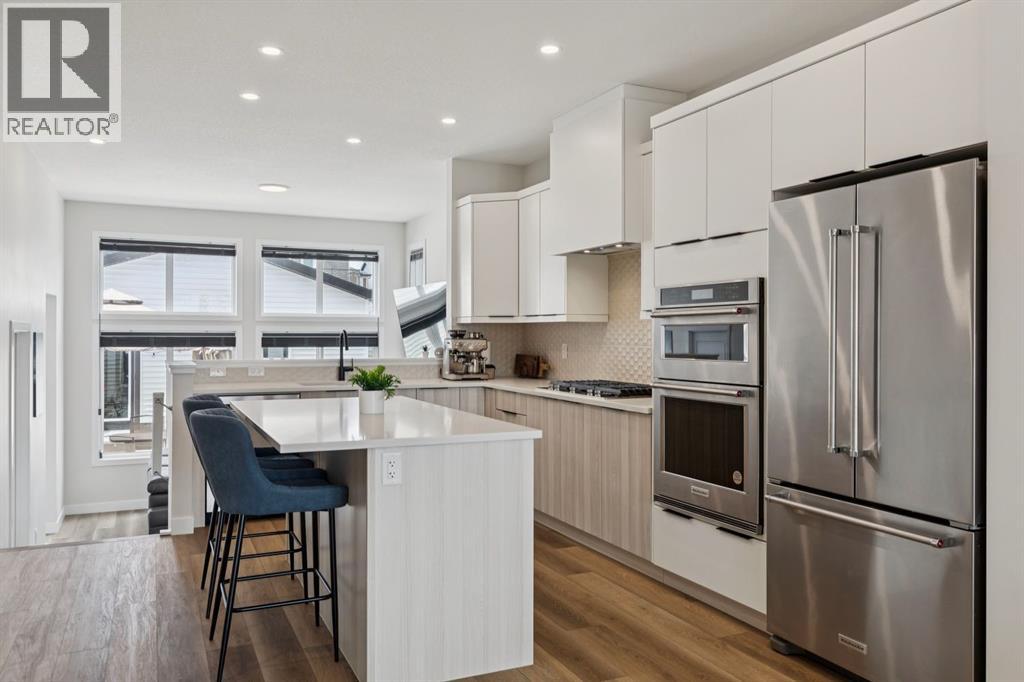 This stunning Jayman home offers the benefits of a new build without theassociated costs. The property features over $90,000 in combined builder andowner upgrades and is ideally located near parks, future schools, and shopping.The unique main floor boasts an upgraded Stage 2 kitchen, a custom glass officewall with east-facing views, and 11-foot living room ceilings. Upstairs, you will findLVP flooring throughout, three bedrooms, and two full bathrooms—including afour-piece ensuite—all finished with quartz countertops. The basement alsofeatures 11-foot ceilings, offering significant potential for customization. Themechanical components are sure to impress, featuring six solar panels,BuiltGreen Canada certification, a high EnerGuide rating, a UV-C Air PurificationSystem, a Navien tankless hot water heater, a high-efficiency furnace with HRV, awater softener, and triple-pane windows. The exterior is fully landscaped with axeriscape yard, a patio, and a detached two-car garage featuring upgraded doors. (id:63190)