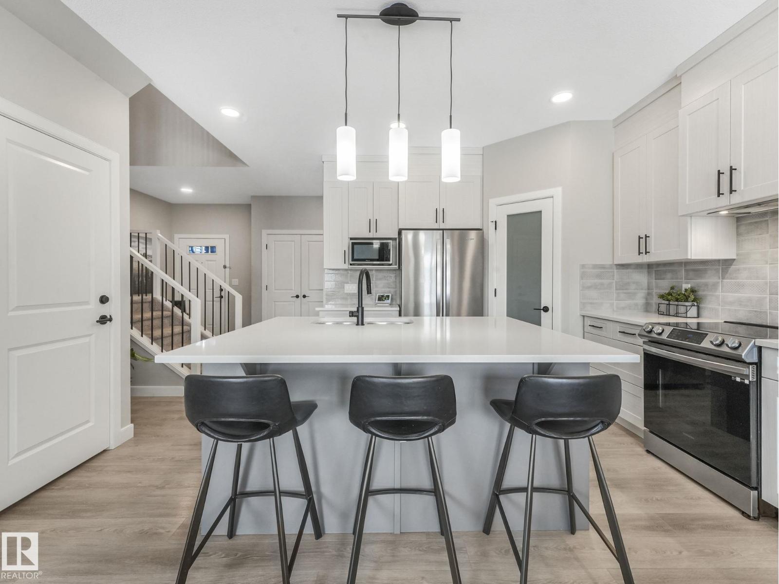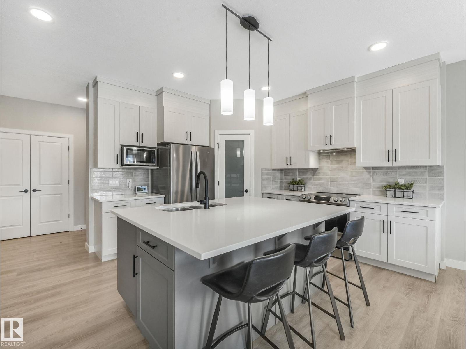 Welcome to this exceptional, better-than-new home in desirable Rosenthal. Located on a premium lot with no back neighbour's, it offers privacy and peaceful backyard views. Inside, the bright open-concept main floor features a massive kitchen island, stainless steel appliances, and large windows that fill the space with natural light. Upstairs you’ll find three generous bedrooms, a spacious primary suite with a 5-piece ensuite and walk-in closet, a large bonus room, and convenient upper-level laundry. The fully finished basement includes a legal one-bedroom suite with its own separate entrance — perfect for income potential or extended family. Outside, the landscaping is fully completed and beautifully maintained. This 10/10 property shows at true show-home quality and is move-in ready. Don’t miss this turn-key gem in one of Edmonton’s most sought-after communities. (id:63190)