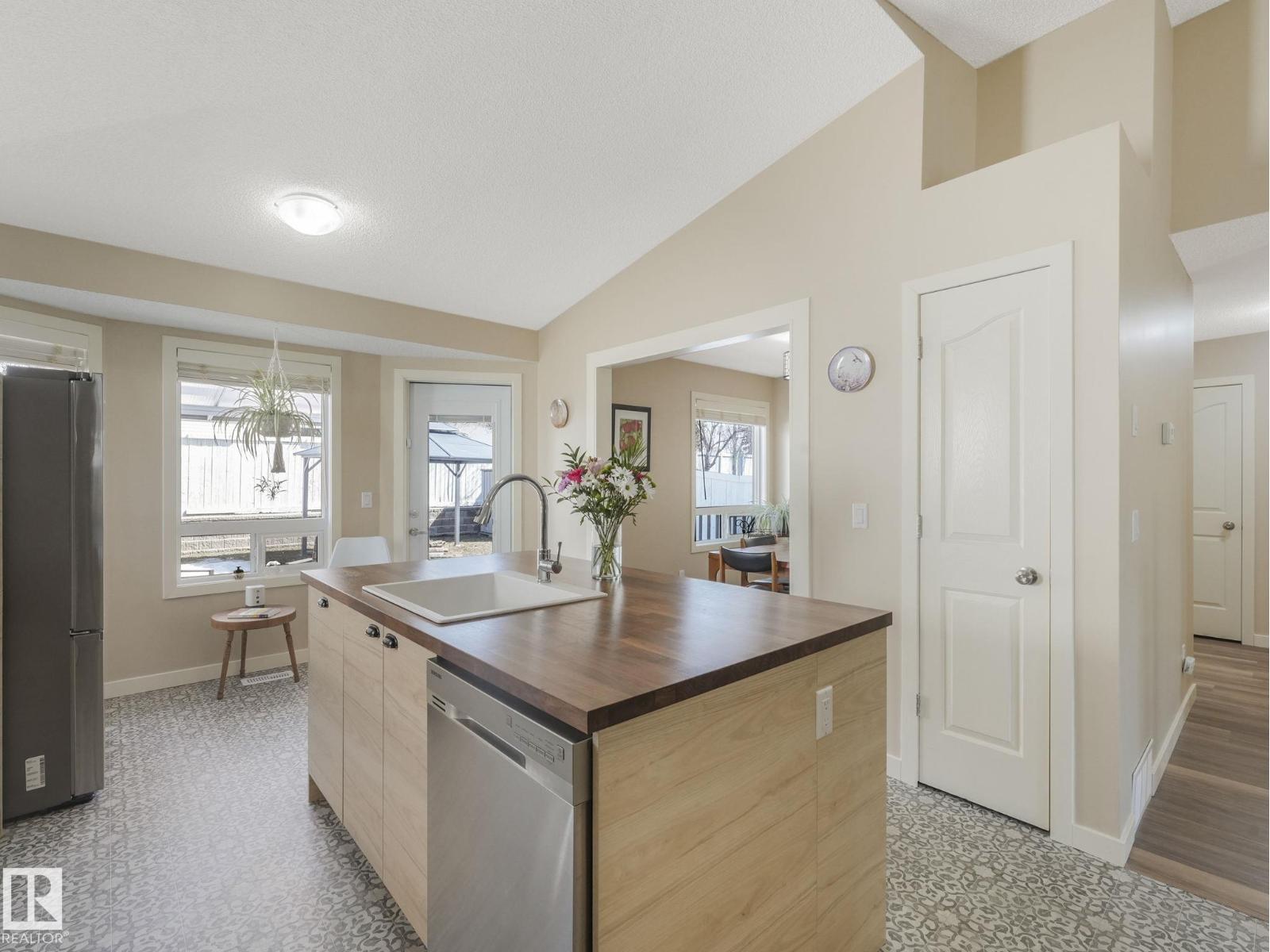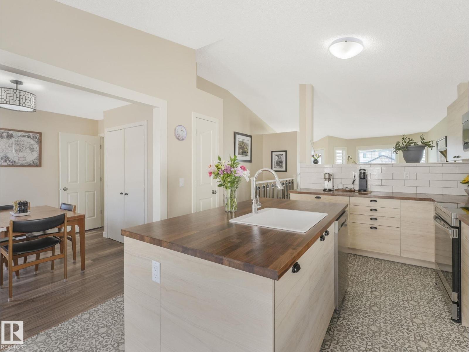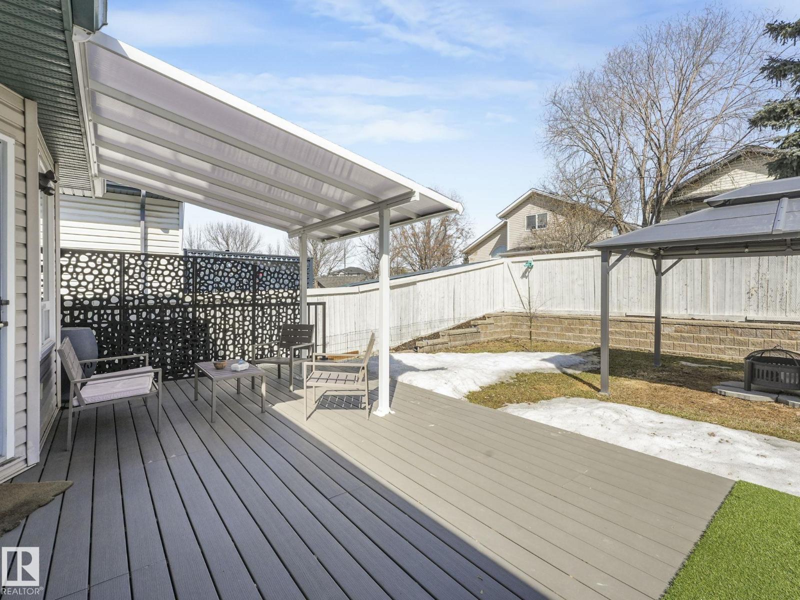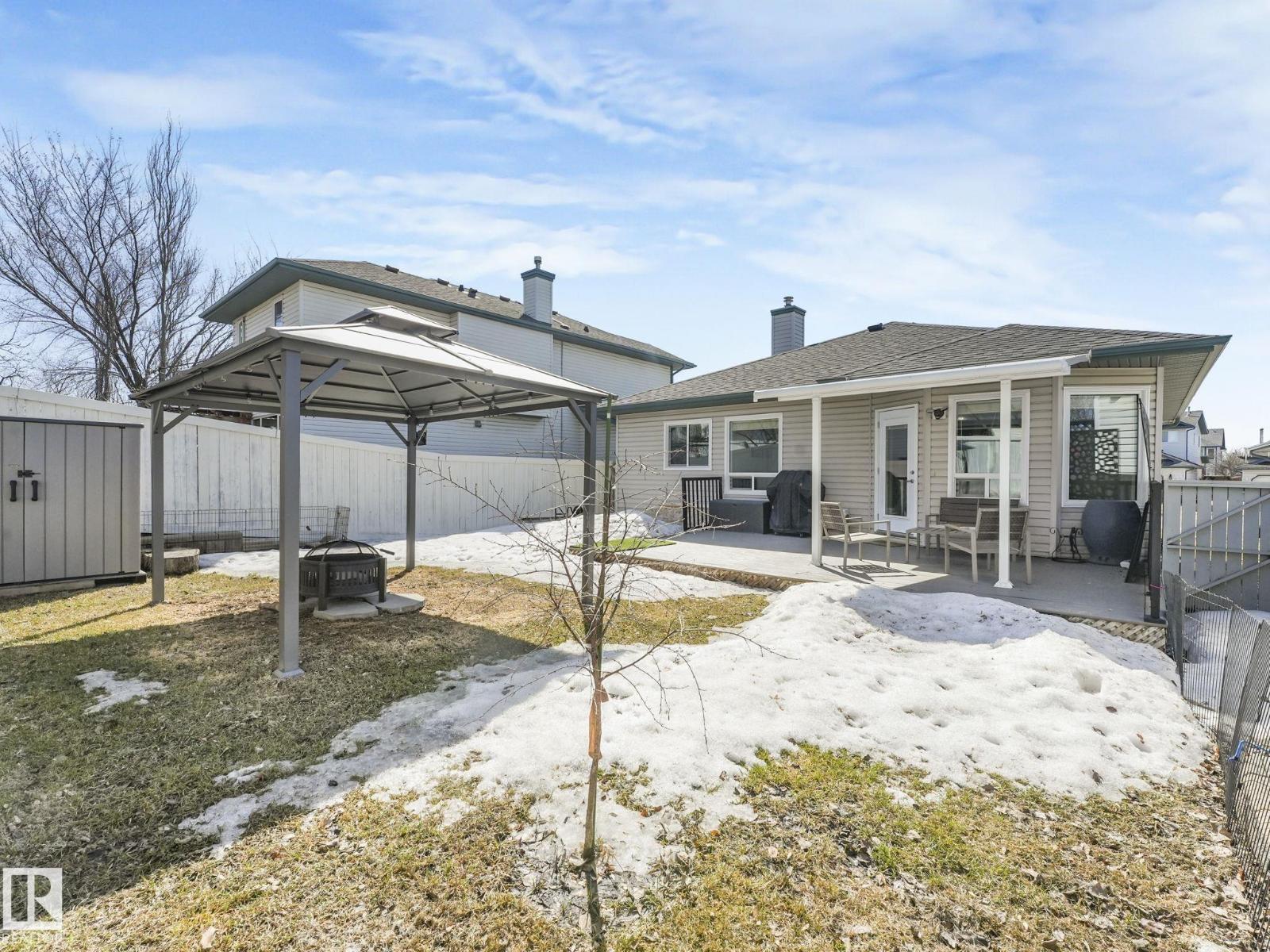 REMODELLED in HERITAGE LAKES. 3 bedrooms total and 3 full baths. This 1068 sq ft bungalow has extensive improvements. This open home has vaulted ceilings accentuated with an open main floor. The kitchen was remodeled(2024) with new soft-close cabinets, island, countertops, and stainless steel appliances. New doors and triple pane windows with custom window coverings throughout with SunStop on west facing windows(2024), floorcoverings(2023 up, 2025 down), painted(2023), baseboards(2025), new insulated overhead garage door(2025), all light fixtures(2023), central air conditioning(2023), backyard retaining wall brickwork(2023). Primary bedroom has a walkin closet and 3 -pc ensuite. Maintenace free deck and enclosed fenced yard for kids and pets. Furnace last serviced Feb 2026. Close to schools, parks, playground. Easy access to Edmonton via 170St, Ray Gibbon Dr, and Anthony Henday. (id:63190)