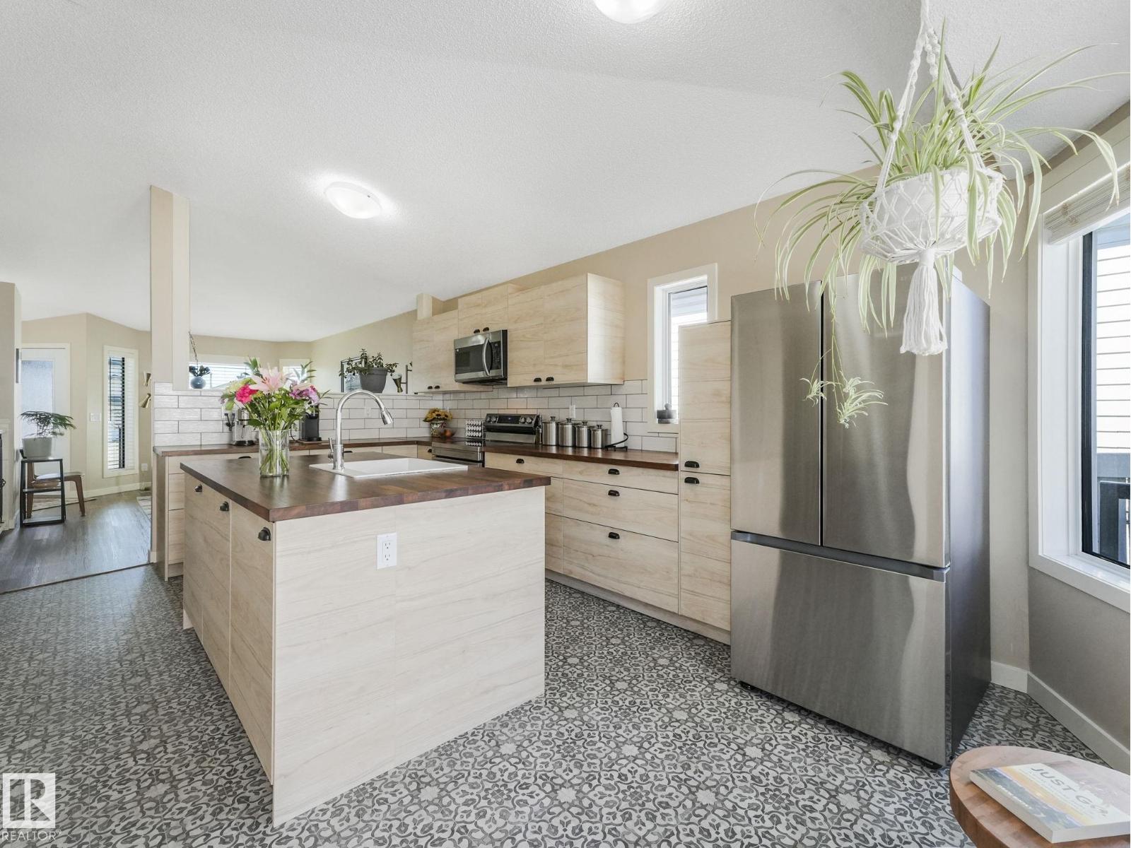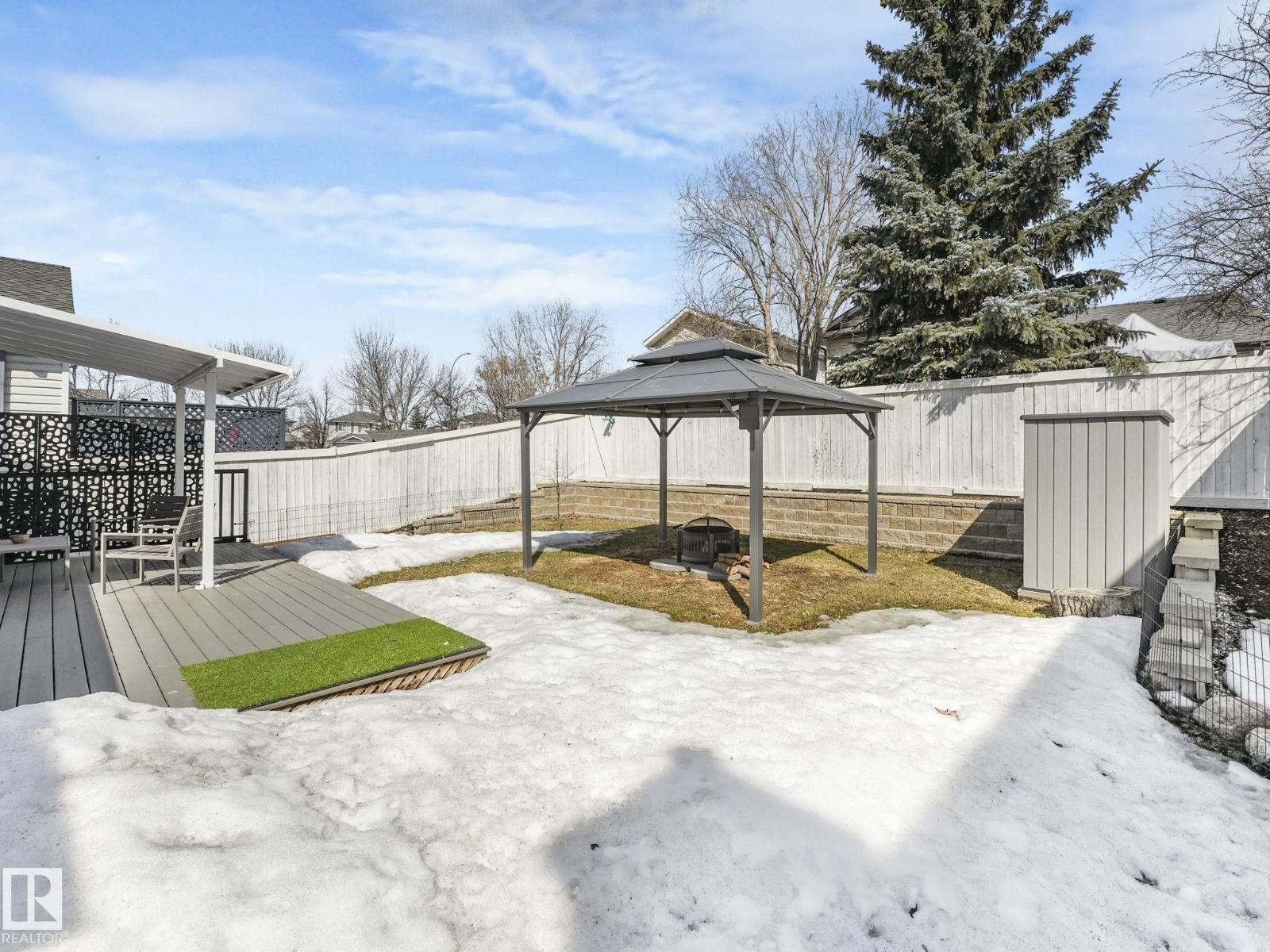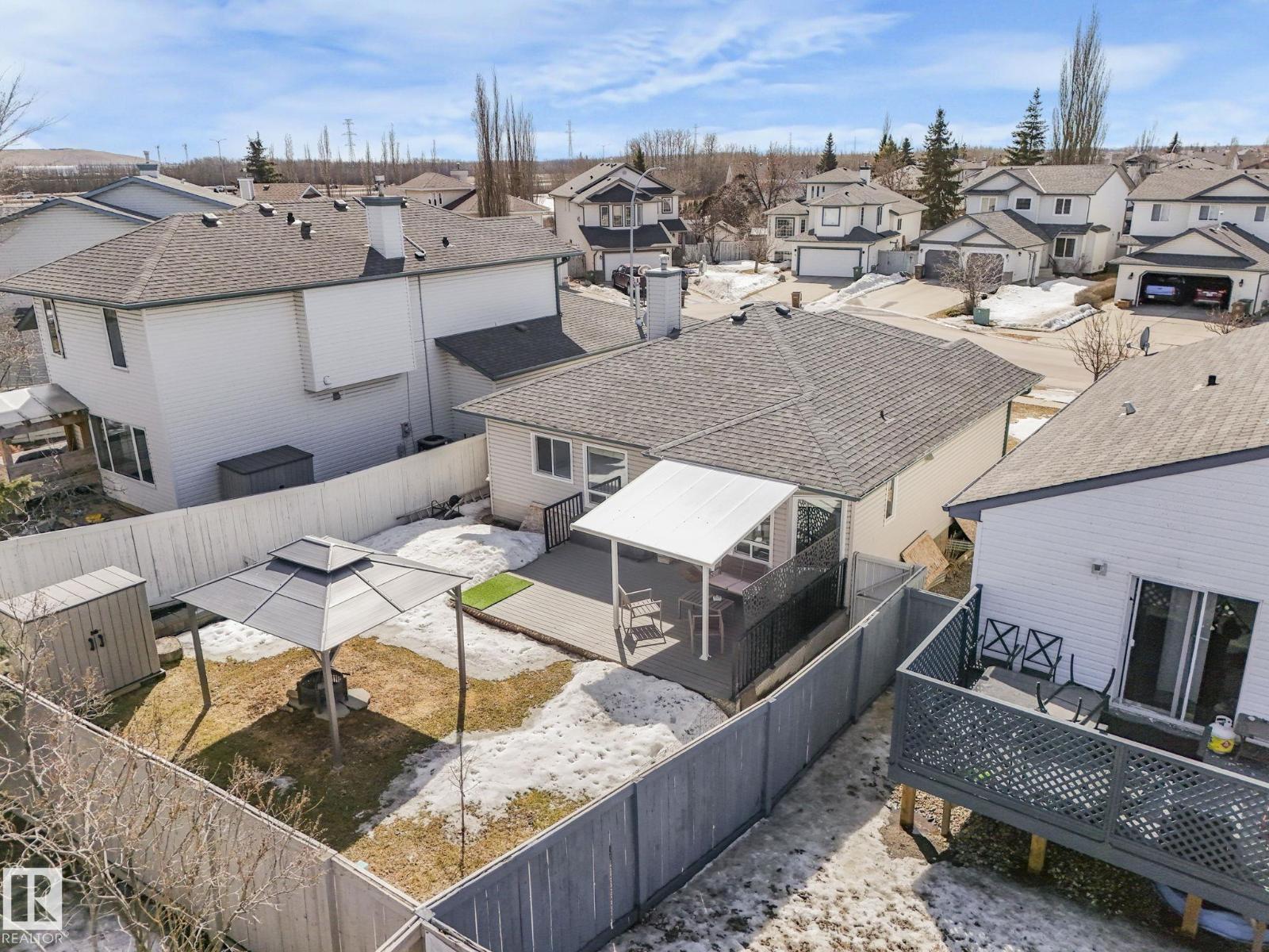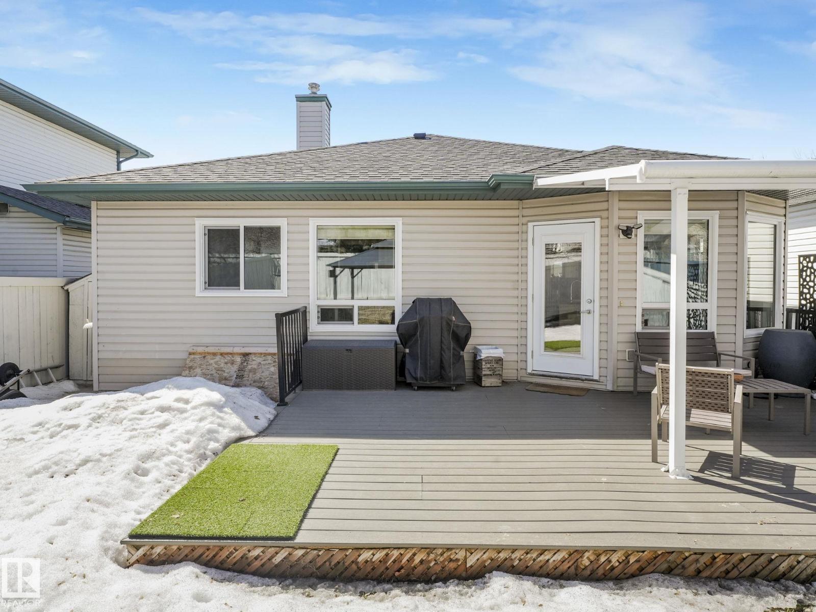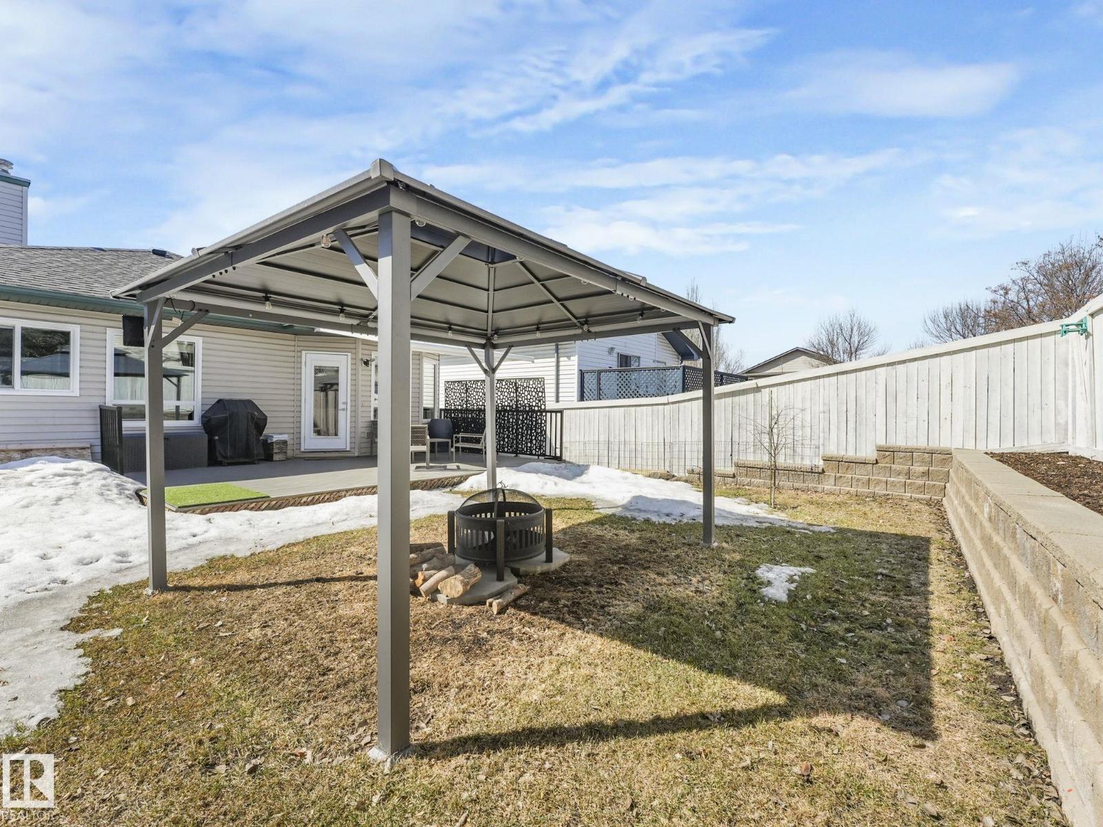 REMODELLED in HERITAGE LAKES. 3 bedrooms total and 3 full baths. This 1068 sq ft bungalow has extensive improvements. This open home has vaulted ceilings accentuated with an open main floor. The kitchen was remodeled(2024) with new soft-close cabinets, island, countertops, and stainless steel appliances. New doors and triple pane windows with custom window coverings throughout with SunStop on west facing windows(2024), floorcoverings(2023 up, 2025 down), painted(2023), baseboards(2025), new insulated overhead garage door(2025), all light fixtures(2023), central air conditioning(2023), backyard retaining wall brickwork(2023). Primary bedroom has a walkin closet and 3 -pc ensuite. Maintenace free deck and enclosed fenced yard for kids and pets. Furnace last serviced Feb 2026. Close to schools, parks, playground. Easy access to Edmonton via 170St, Ray Gibbon Dr, and Anthony Henday. (id:63190)