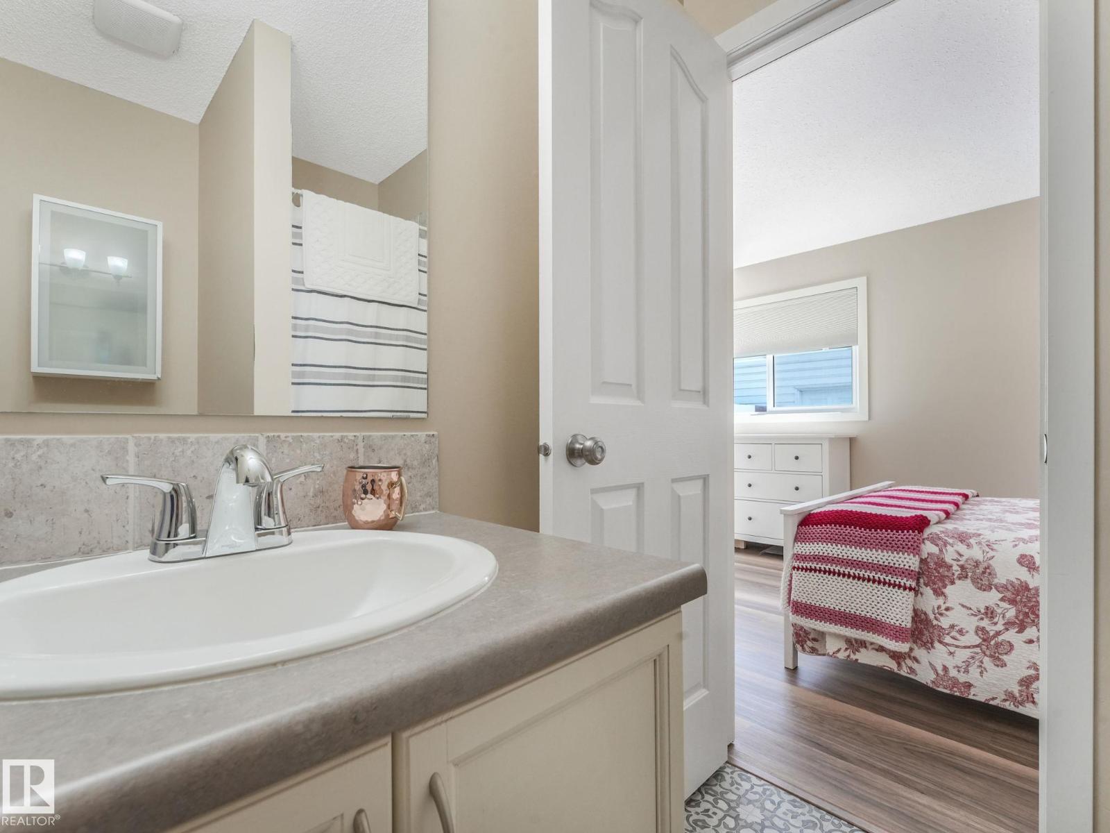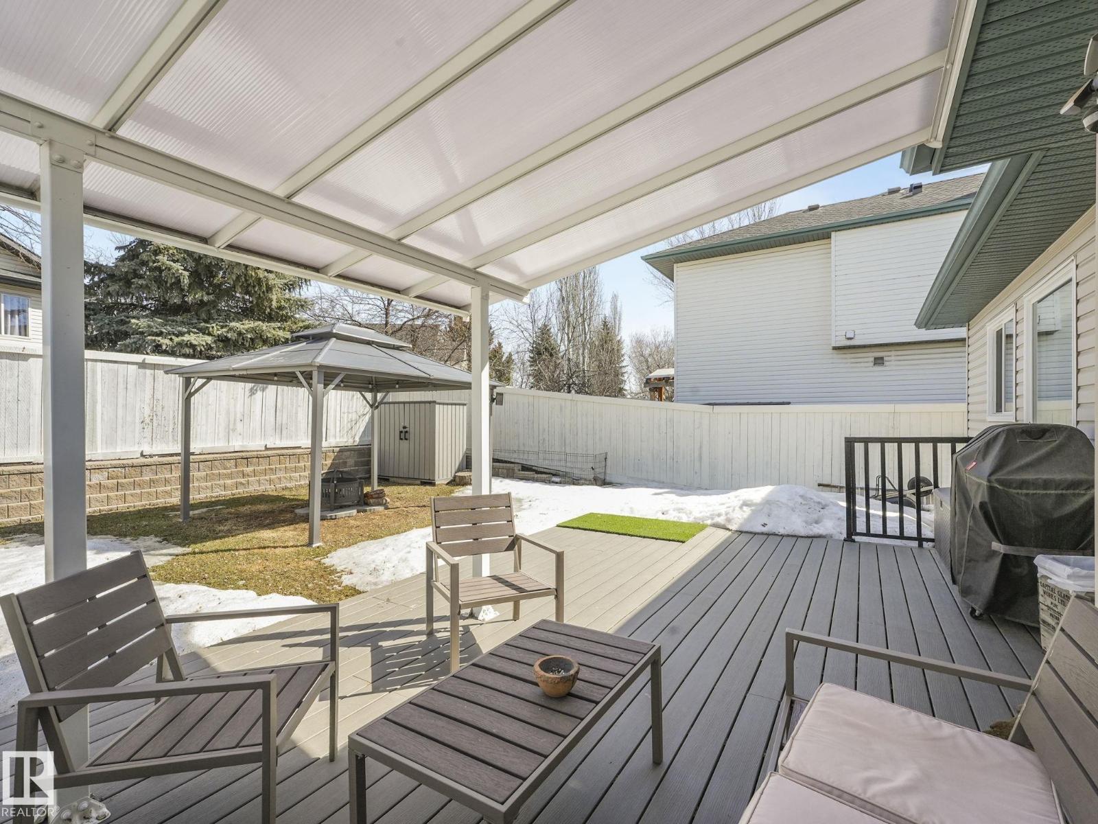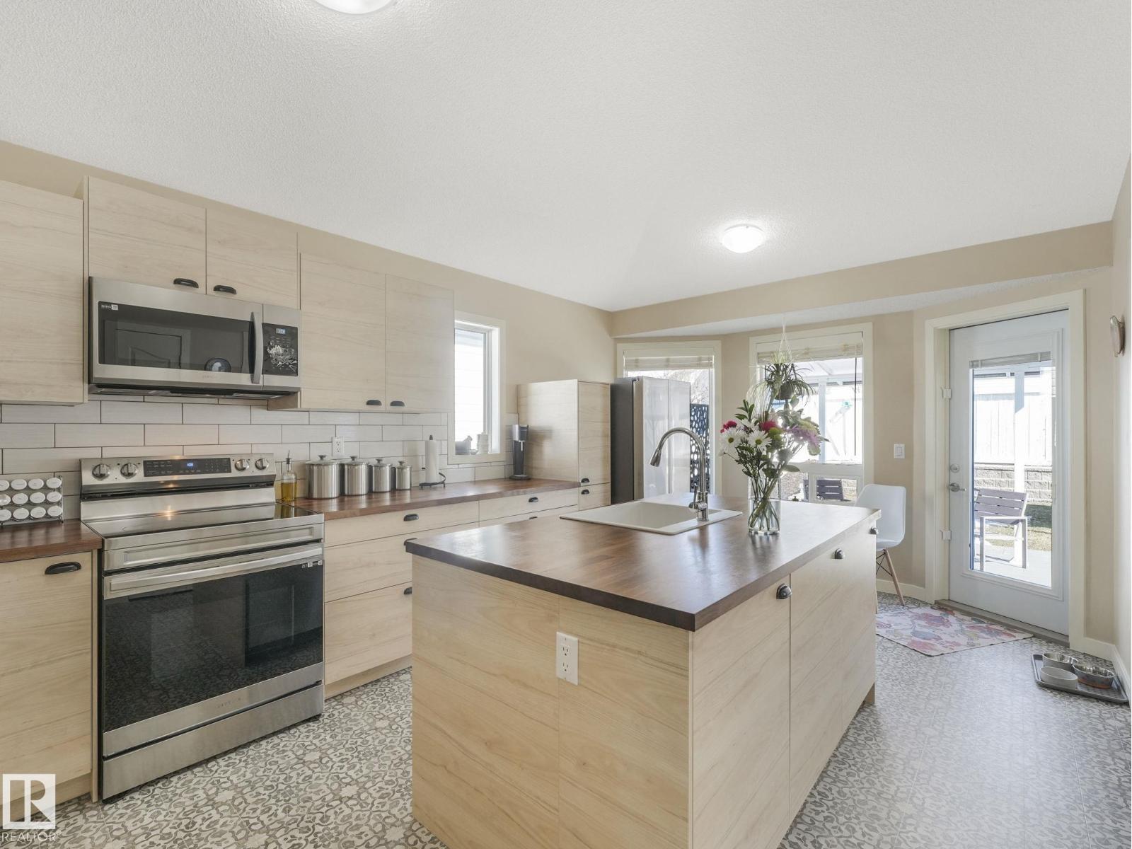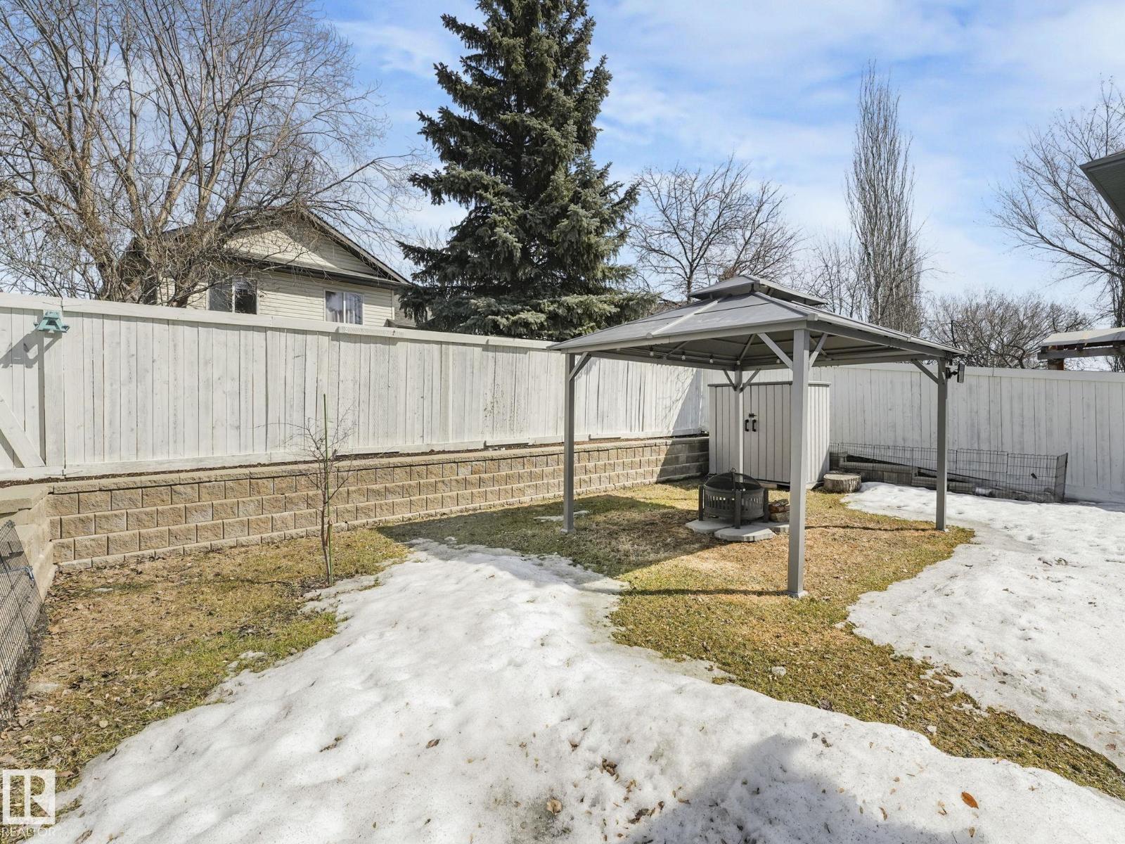 REMODELLED in HERITAGE LAKES. 3 bedrooms total and 3 full baths. This 1068 sq ft bungalow has extensive improvements. This open home has vaulted ceilings accentuated with an open main floor. The kitchen was remodeled(2024) with new soft-close cabinets, island, countertops, and stainless steel appliances. New doors and triple pane windows with custom window coverings throughout with SunStop on west facing windows(2024), floorcoverings(2023 up, 2025 down), painted(2023), baseboards(2025), new insulated overhead garage door(2025), all light fixtures(2023), central air conditioning(2023), backyard retaining wall brickwork(2023). Primary bedroom has a walkin closet and 3 -pc ensuite. Maintenace free deck and enclosed fenced yard for kids and pets. Furnace last serviced Feb 2026. Close to schools, parks, playground. Easy access to Edmonton via 170St, Ray Gibbon Dr, and Anthony Henday. (id:63190)