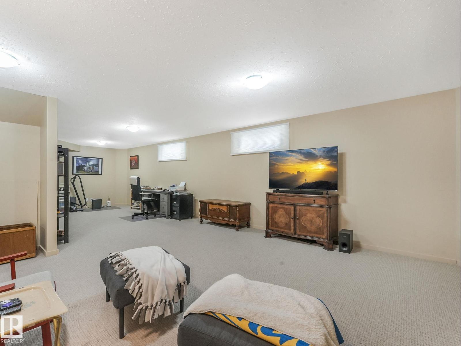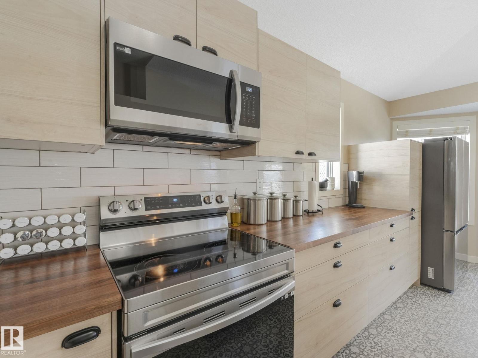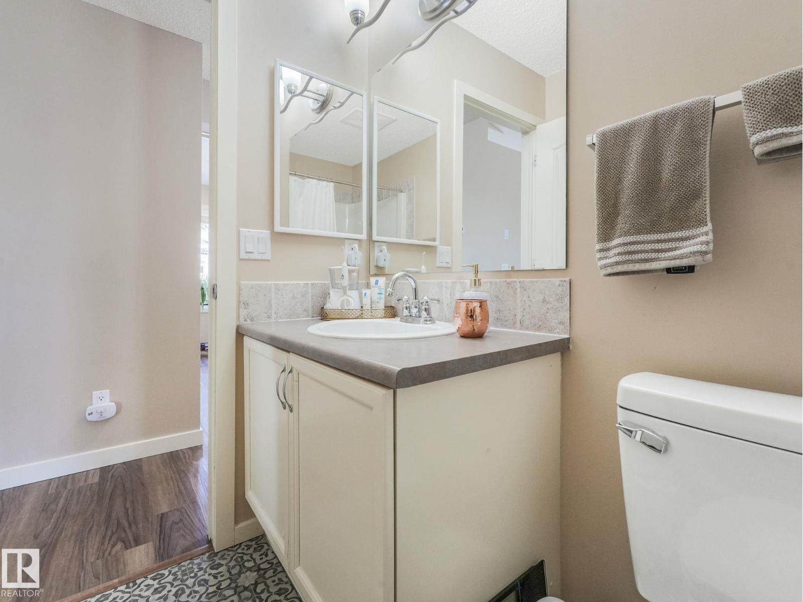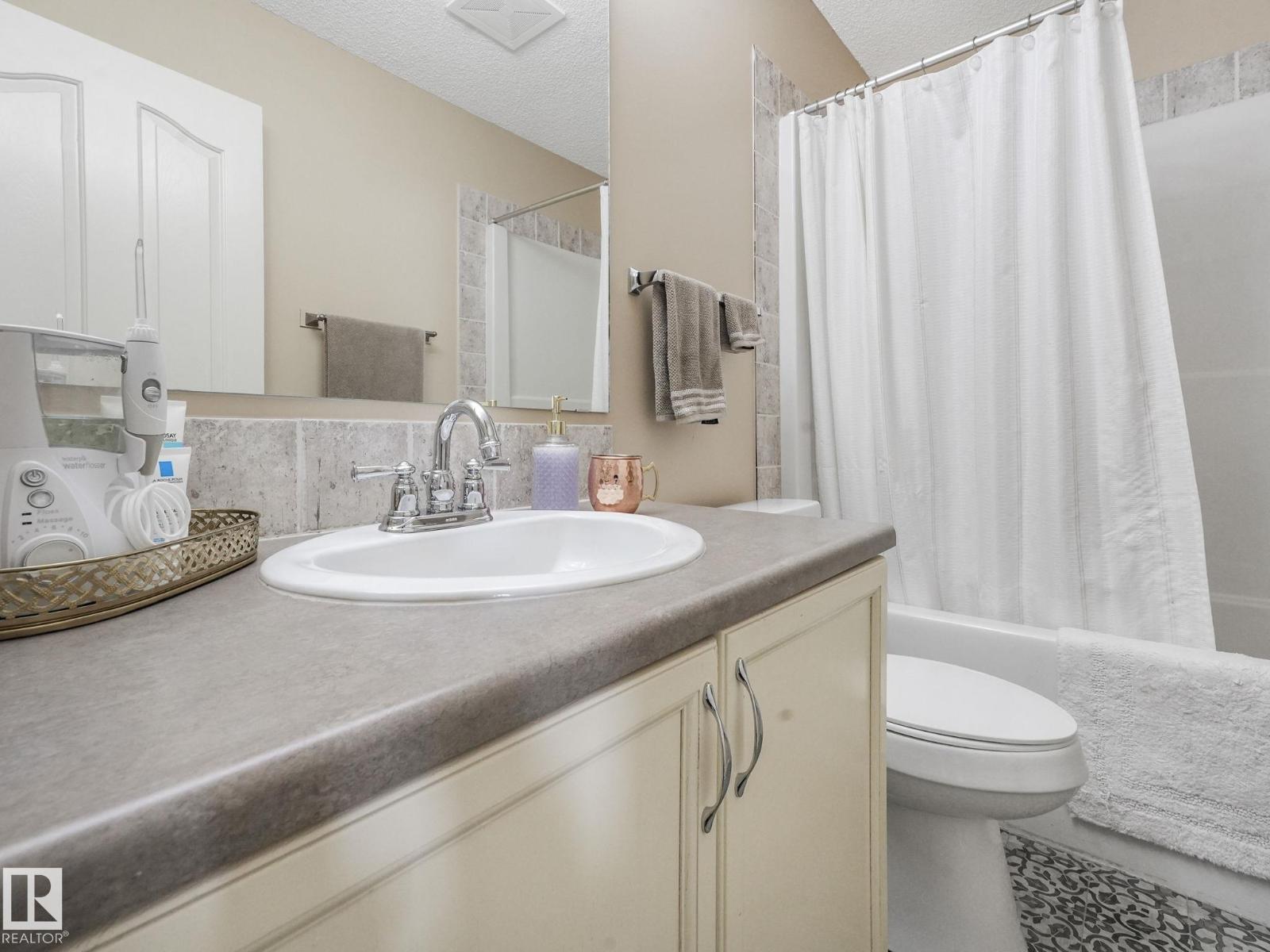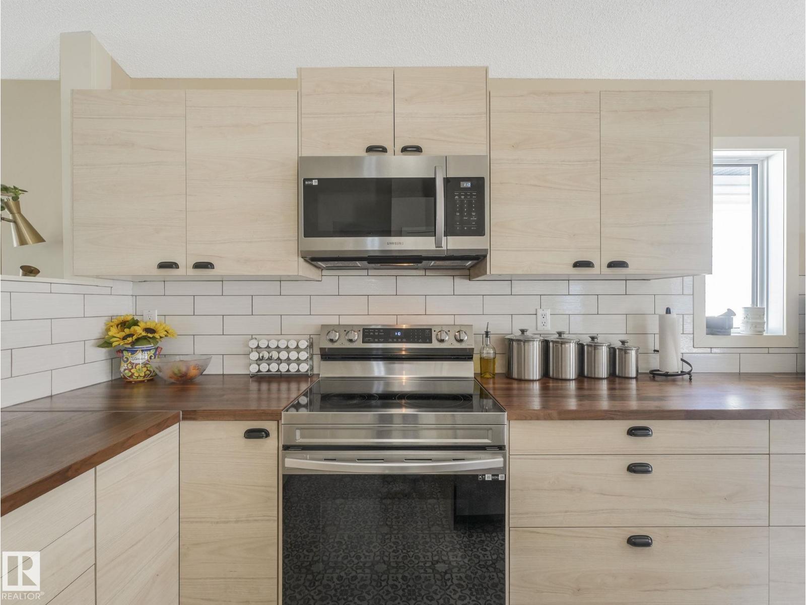REMODELLED in HERITAGE LAKES. 3 bedrooms total and 3 full baths. This 1068 sq ft bungalow has extensive improvements. This open home has vaulted ceilings accentuated with an open main floor. The kitchen was remodeled(2024) with new soft-close cabinets, island, countertops, and stainless steel appliances. New doors and triple pane windows with custom window coverings throughout with SunStop on west facing windows(2024), floorcoverings(2023 up, 2025 down), painted(2023), baseboards(2025), new insulated overhead garage door(2025), all light fixtures(2023), central air conditioning(2023), backyard retaining wall brickwork(2023). Primary bedroom has a walkin closet and 3 -pc ensuite. Maintenace free deck and enclosed fenced yard for kids and pets. Furnace last serviced Feb 2026. Close to schools, parks, playground. Easy access to Edmonton via 170St, Ray Gibbon Dr, and Anthony Henday. (id:63190)