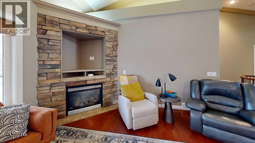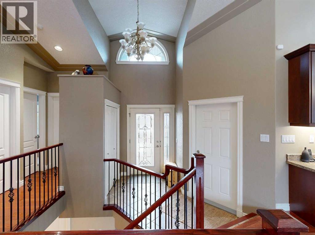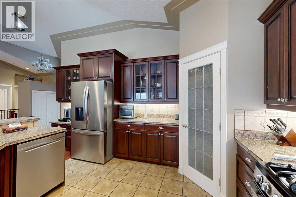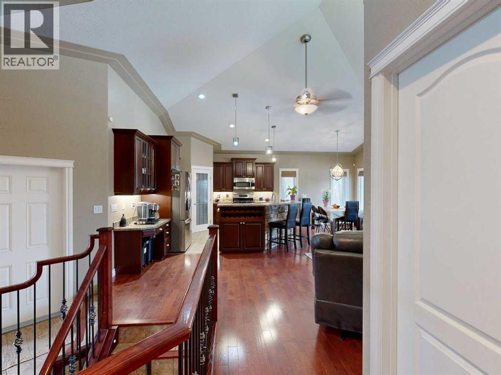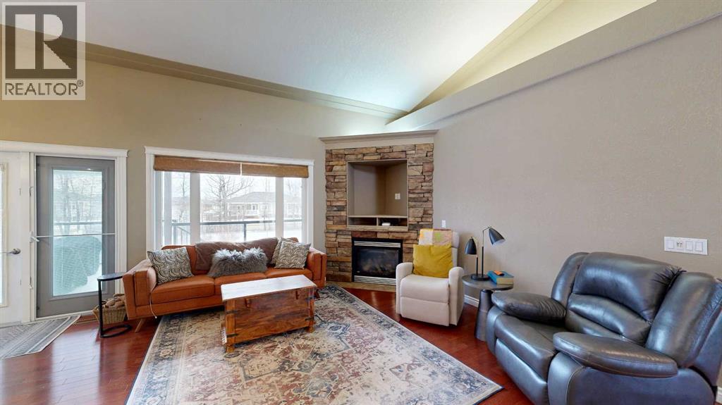 Welcome to this lovely 6-bedroom, 3-bathroom bungalow offering the perfect blend of comfort, functionality, and privacy! The main floor features beautiful vaulted ceilings that create an open, airy feel, while the fully developed basement boasts tall ceilings and in-floor heating for year-round comfort.The heart of the home includes a cozy natural gas fireplace, perfect for relaxing evenings, and a thoughtfully designed layout ideal for families of all sizes. The primary suite offers a true retreat with a large walk-in closet and a 4-piece ensuite complete with a double vanity.Enjoy the convenience of central air conditioning, along with in-floor heating in both the basement and the impressive 24x26 heated garage. Outside, you'll find a maintenance-free covered deck, perfect for entertaining, along with a fully fenced yard offering exceptional privacy with no rear neighbours.Additional features include RV power and a sewer dump, making this property ideal for those with recreational vehicles or guests. This home truly has it all—space, comfort, outdoor privacy, and a great location close to the golf course, ball diamonds, shopping, parks, and plenty of walking trails! (id:63190)