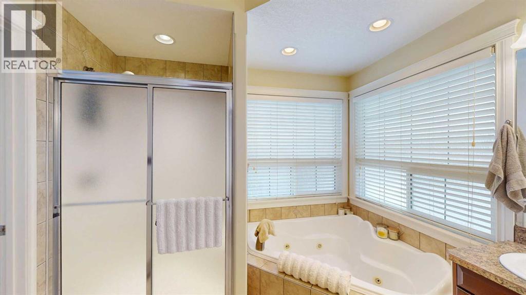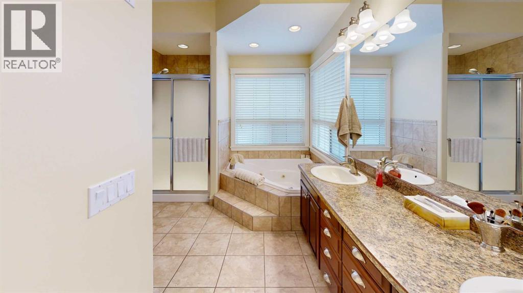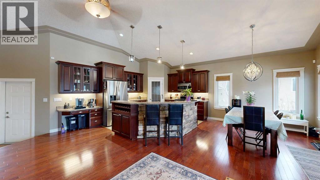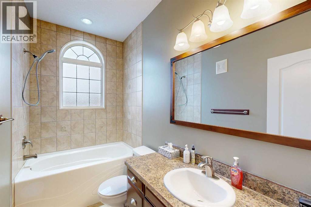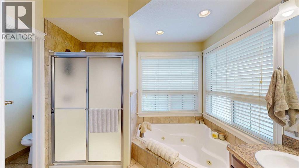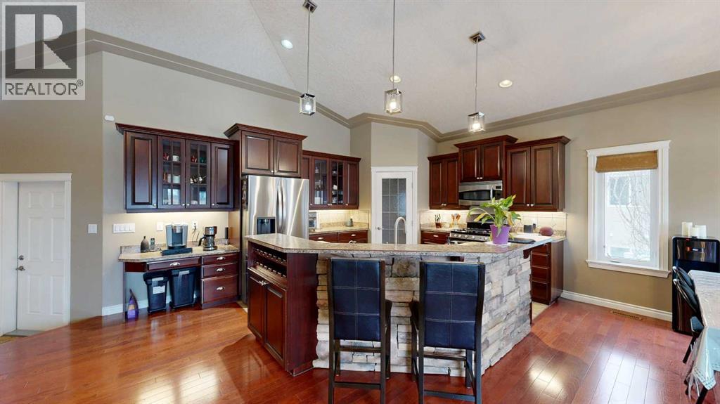 Welcome to this lovely 6-bedroom, 3-bathroom bungalow offering the perfect blend of comfort, functionality, and privacy! The main floor features beautiful vaulted ceilings that create an open, airy feel, while the fully developed basement boasts tall ceilings and in-floor heating for year-round comfort.The heart of the home includes a cozy natural gas fireplace, perfect for relaxing evenings, and a thoughtfully designed layout ideal for families of all sizes. The primary suite offers a true retreat with a large walk-in closet and a 4-piece ensuite complete with a double vanity.Enjoy the convenience of central air conditioning, along with in-floor heating in both the basement and the impressive 24x26 heated garage. Outside, you'll find a maintenance-free covered deck, perfect for entertaining, along with a fully fenced yard offering exceptional privacy with no rear neighbours.Additional features include RV power and a sewer dump, making this property ideal for those with recreational vehicles or guests. This home truly has it all—space, comfort, outdoor privacy, and a great location close to the golf course, ball diamonds, shopping, parks, and plenty of walking trails! (id:63190)