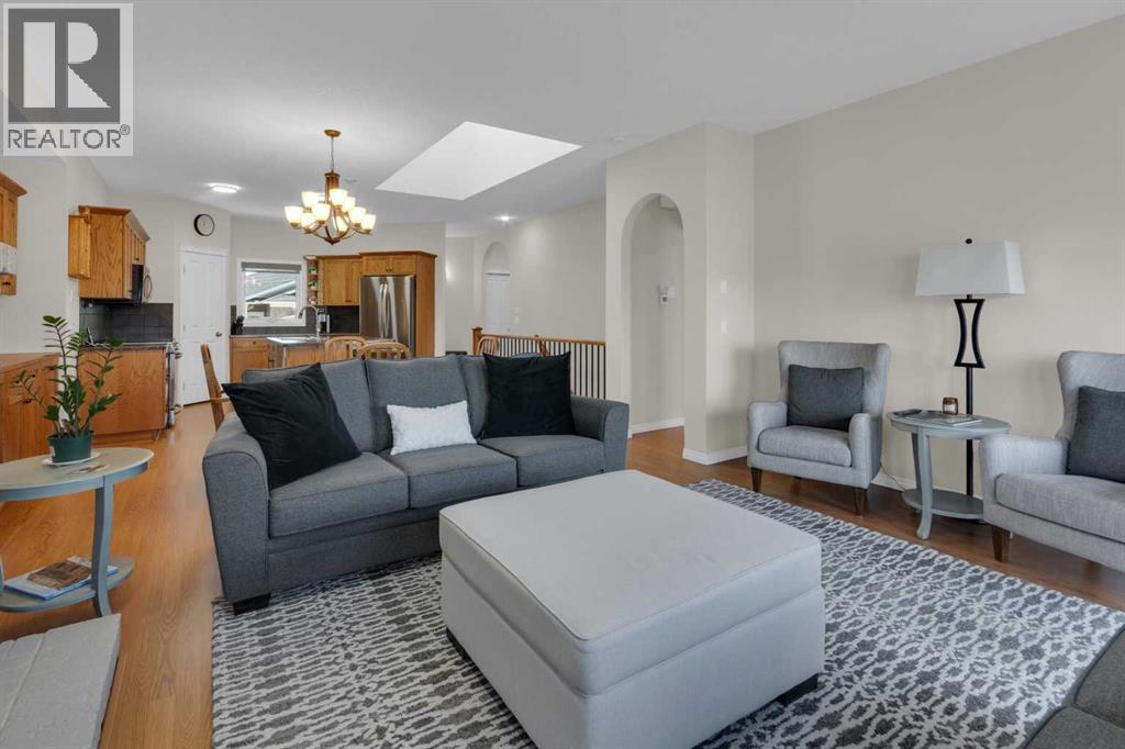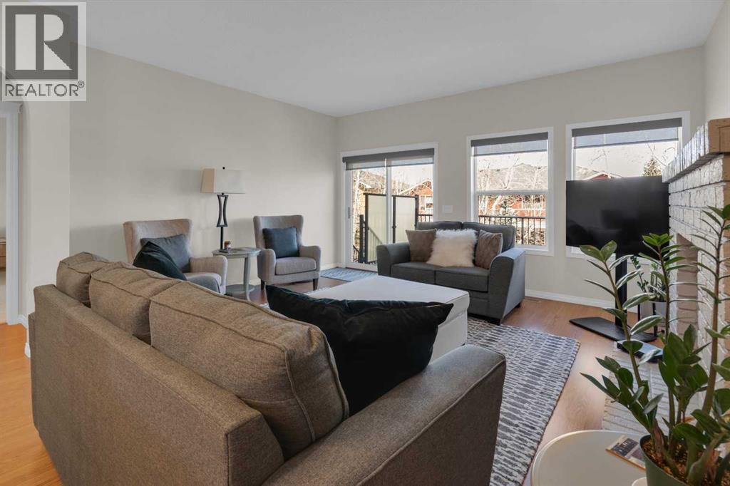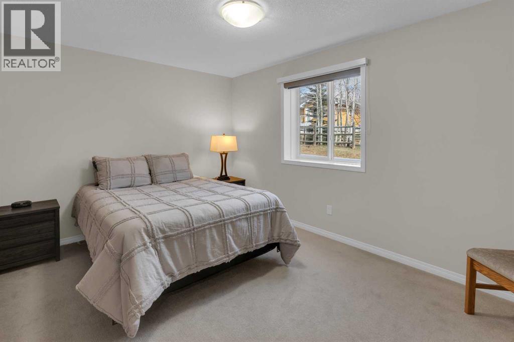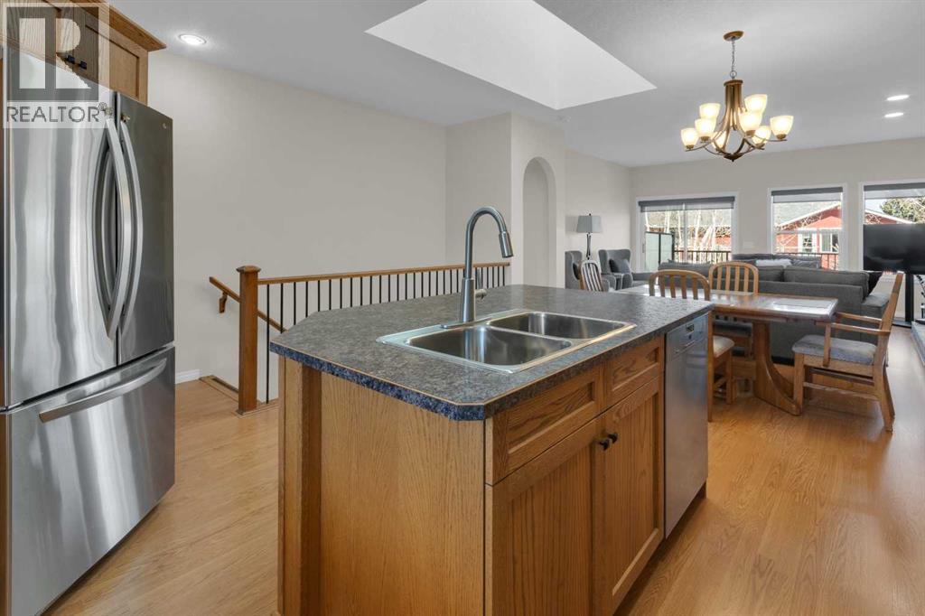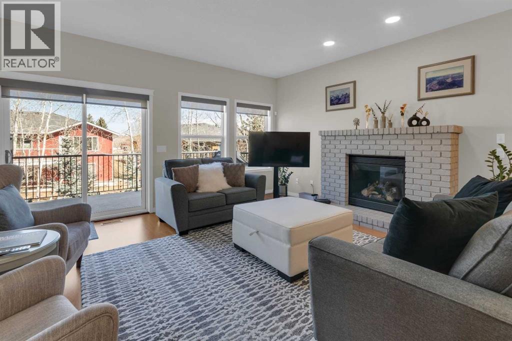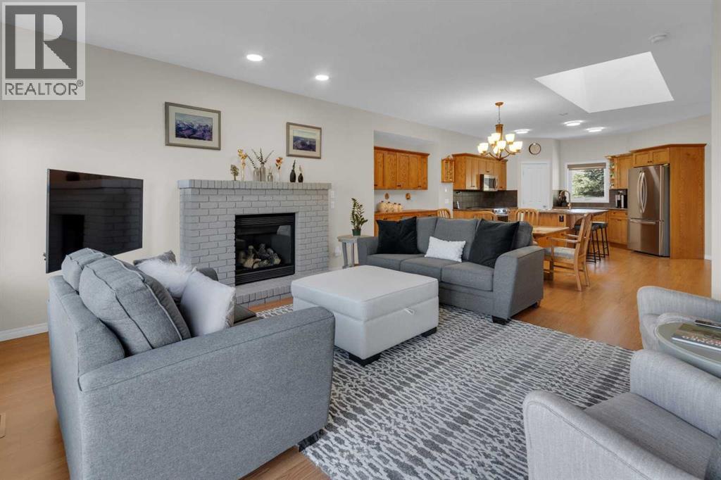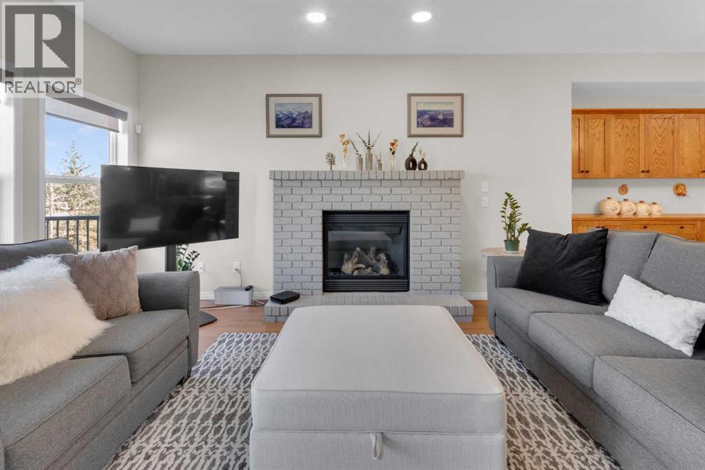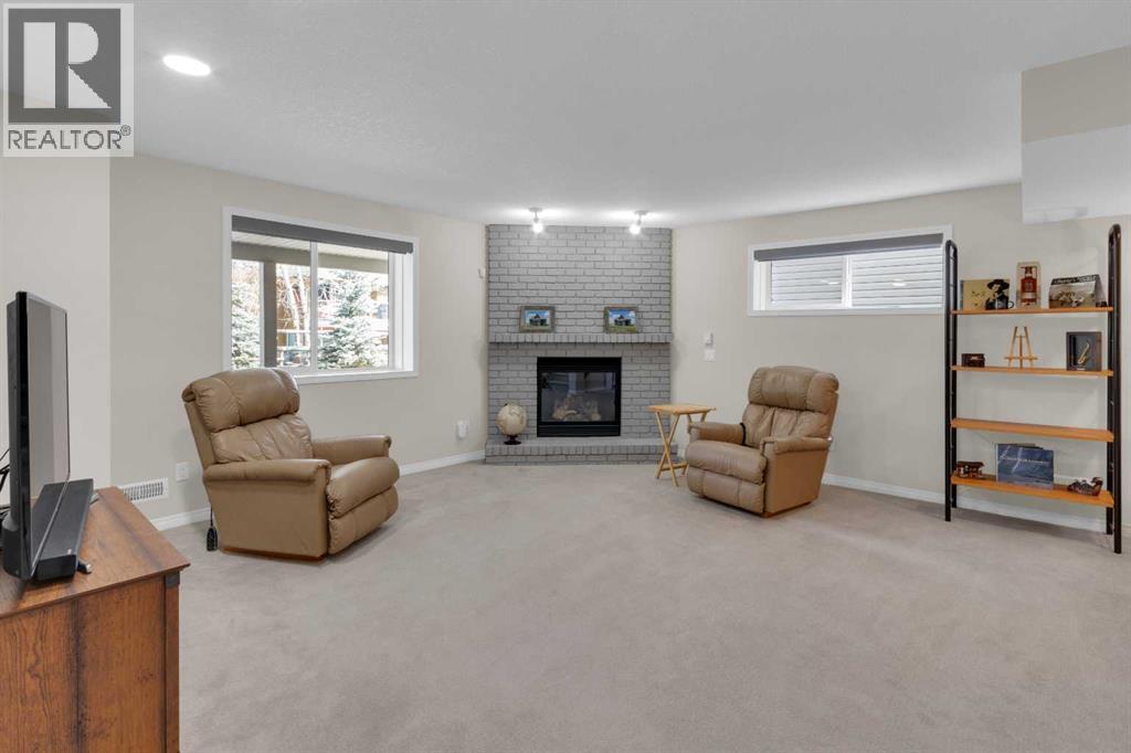 Impressive, fresh, open, and bright! This immaculate updated villa sits in a quiet cul de sac backing onto a treed green belt with access to natural areas and Turner Valley Golf Club. Surprisingly private and peaceful, listen to birdsong and watch the deer stroll by your private deck and living areas. This turnkey, easy care home has extensive updates that make it truly move in ready. A partial list of updates (5 years); painted top to bottom - ceilings, doors and trim. New AC, all new appliances, all new window coverings, all new light fixtures (LED), all faucets, HWT, sump pump, vinyl floors, new landscaping incl. 5 big Colorado Blue Spruce at back fence, sprinklers, and more! Large functional indoor & outdoor living areas on the 1217 sq.ft. main with a sunny skylight spilling natural light all day. Roomy, country style kitchen with generous counter/storage space. Airy, open, connected, dining and living areas that open onto the 17’ x 10’ deck. Spacious 15’ x 15’ primary bedroom, main level laundry/mud room and a discreetly located powder room. Enjoy 1140 sq.ft. of thoughtful lower-level development with big bright walkout size windows, large family room with cozy fireplace, bedroom, full bath, flex room/bedroom (new egress window) and ample storage. A great home for when friends/family visit - 3 bedrooms, 2.5 baths, 2 gas fireplaces, 2 living areas – yet not too big when relaxing on your own. Refreshed 25’ x 19’2” garage with epoxy painted floor, new heater & opener. Recently serviced Lennox furnace and Kinetico filtration water softener. Lots of nearby natural walking trails, off leash areas and a paved walking/bike path into town. A short bike ride or drive for all your favourite shops, restaurants, groceries, pubs and full-service hospital. NOTE: Low condo fees of $273 include exterior maintenance, (incl. roof, windows and doors!) lawn service & snow removal. Telus Fibre Optics Internet available. A great opportunity, all the hard work is done. Just move in, r elax and enjoy your elegant easy-care country home! Click 3D for interactive floorplan. (id:63190)