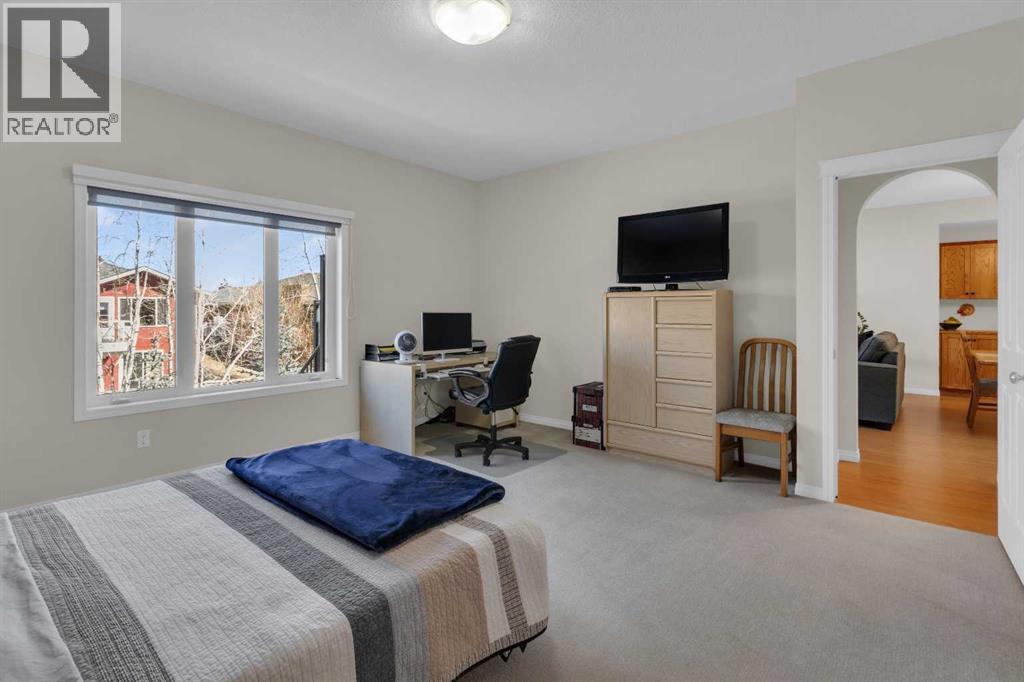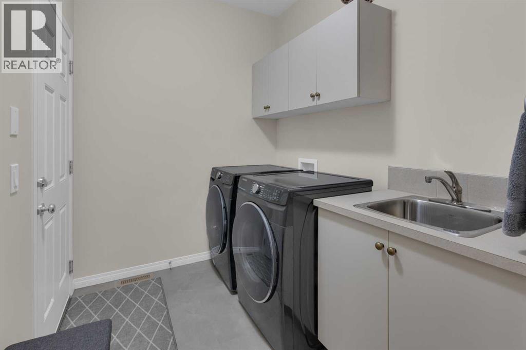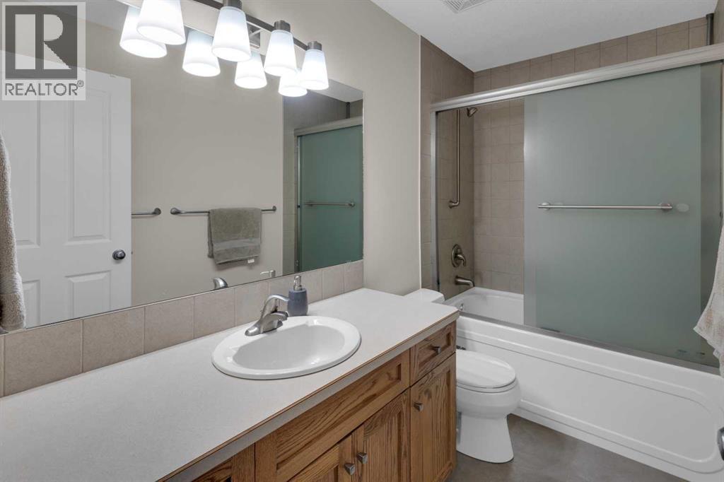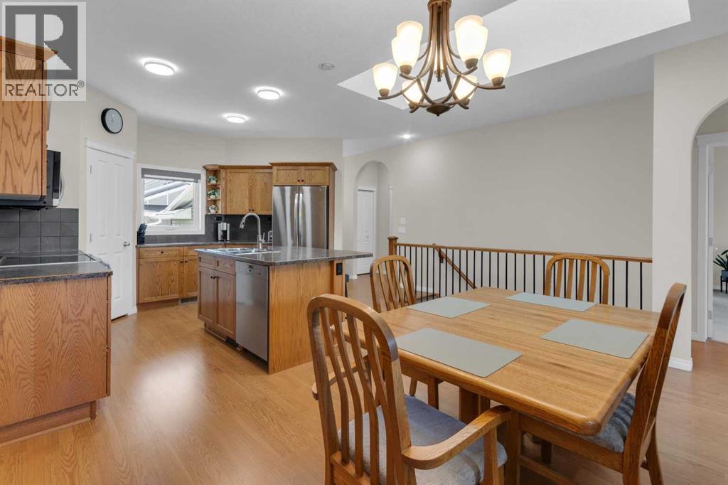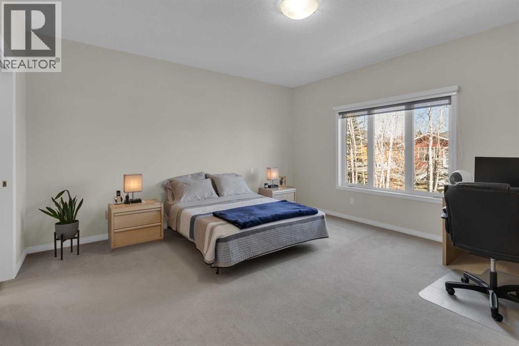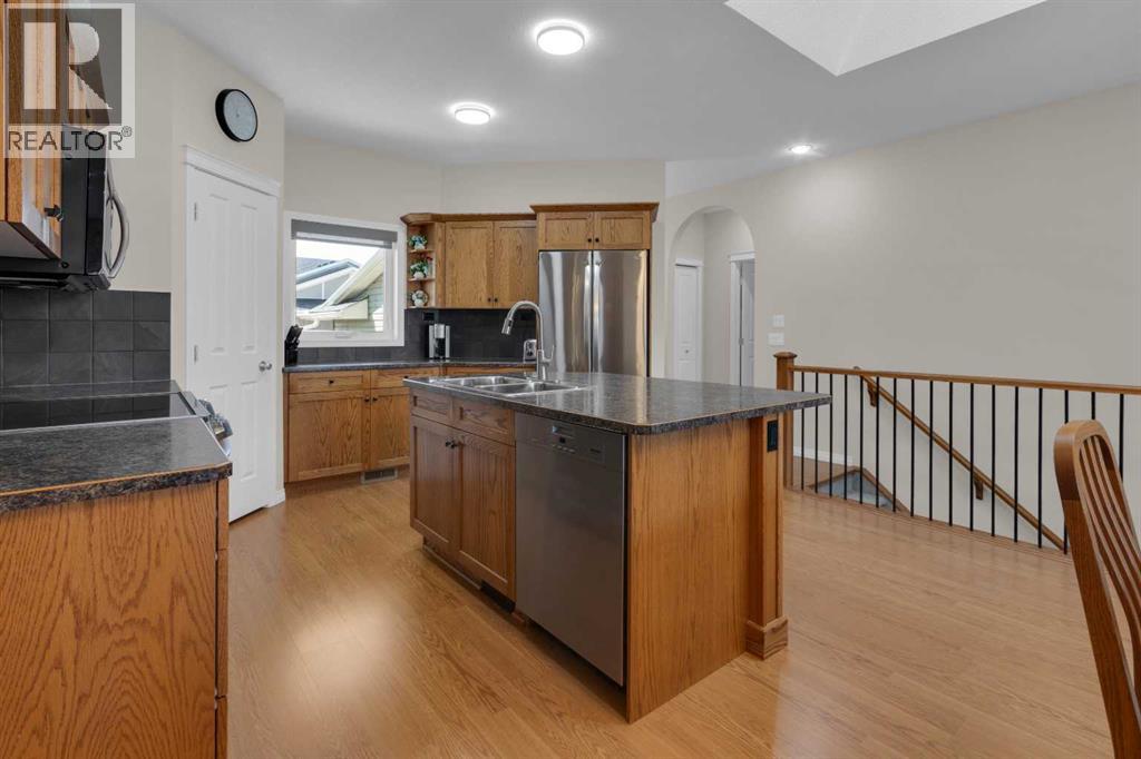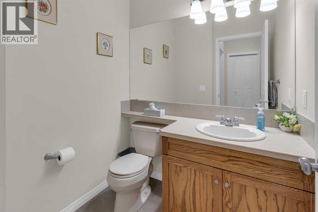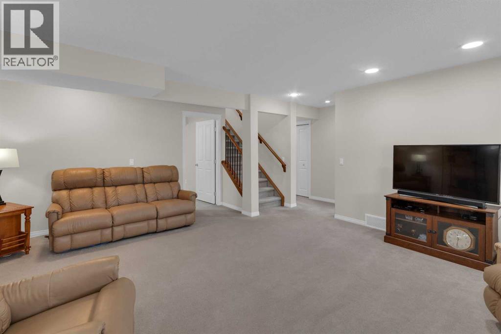 Impressive, fresh, open, and bright! This immaculate updated villa sits in a quiet cul de sac backing onto a treed green belt with access to natural areas and Turner Valley Golf Club. Surprisingly private and peaceful, listen to birdsong and watch the deer stroll by your private deck and living areas. This turnkey, easy care home has extensive updates that make it truly move in ready. A partial list of updates (5 years); painted top to bottom - ceilings, doors and trim. New AC, all new appliances, all new window coverings, all new light fixtures (LED), all faucets, HWT, sump pump, vinyl floors, new landscaping incl. 5 big Colorado Blue Spruce at back fence, sprinklers, and more! Large functional indoor & outdoor living areas on the 1217 sq.ft. main with a sunny skylight spilling natural light all day. Roomy, country style kitchen with generous counter/storage space. Airy, open, connected, dining and living areas that open onto the 17’ x 10’ deck. Spacious 15’ x 15’ primary bedroom, main level laundry/mud room and a discreetly located powder room. Enjoy 1140 sq.ft. of thoughtful lower-level development with big bright walkout size windows, large family room with cozy fireplace, bedroom, full bath, flex room/bedroom (new egress window) and ample storage. A great home for when friends/family visit - 3 bedrooms, 2.5 baths, 2 gas fireplaces, 2 living areas – yet not too big when relaxing on your own. Refreshed 25’ x 19’2” garage with epoxy painted floor, new heater & opener. Recently serviced Lennox furnace and Kinetico filtration water softener. Lots of nearby natural walking trails, off leash areas and a paved walking/bike path into town. A short bike ride or drive for all your favourite shops, restaurants, groceries, pubs and full-service hospital. NOTE: Low condo fees of $273 include exterior maintenance, (incl. roof, windows and doors!) lawn service & snow removal. Telus Fibre Optics Internet available. A great opportunity, all the hard work is done. Just move in, r elax and enjoy your elegant easy-care country home! Click 3D for interactive floorplan. (id:63190)