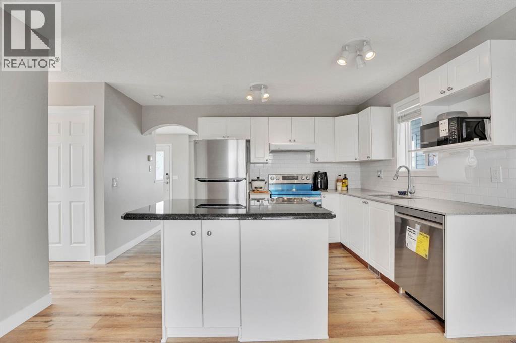 Welcome home to this beautiful laned property on a desirable corner lot, ideally located near parks and public transit in Citadel Acres Close.Designed with efficiency and comfort in mind, the home features a spacious foyer that opens into a bright, inviting living room. The kitchen and dining area are seamlessly connected, creating a perfect space for everyday living and entertaining. The kitchen showcases white cabinetry, granite and quartz countertops, a functional island, and brand-new stainless steel appliances. The dining area comfortably accommodates family and guests, with easy access to a private deck complete with a pergola—ideal for extending your gatherings outdoors. A convenient half bathroom completes the main floor.Upstairs, you’ll find three bedrooms, including two generously sized rooms and a spacious primary bedroom with ample closet space. A convenient 4-piece Jack and Jill bathroom serves the upper level.The fully finished basement offers a large recreation room—perfect for relaxing, entertaining, or creating your own game or media space.This home is filled with natural light thanks to its many windows, and features freshly painted walls along with durable LVP and laminate flooring, making maintenance easy and minimizing dust.The corner lot provides extra yard space for gardening, play, and hosting family and friends, with plenty of room for larger gatherings. Additional features include a storage shed, fire pit, and ample parking space at the back for two vehicles plus an RV.Come experience everything this wonderful home has to offer—it just could be your perfect home sweet home! (id:63190)