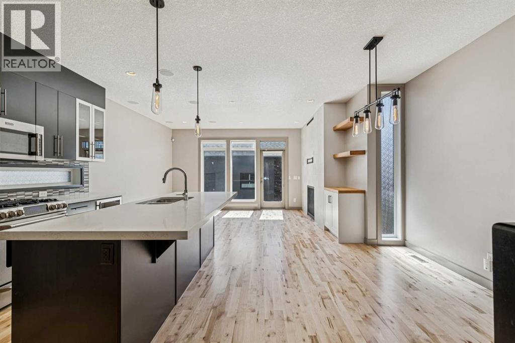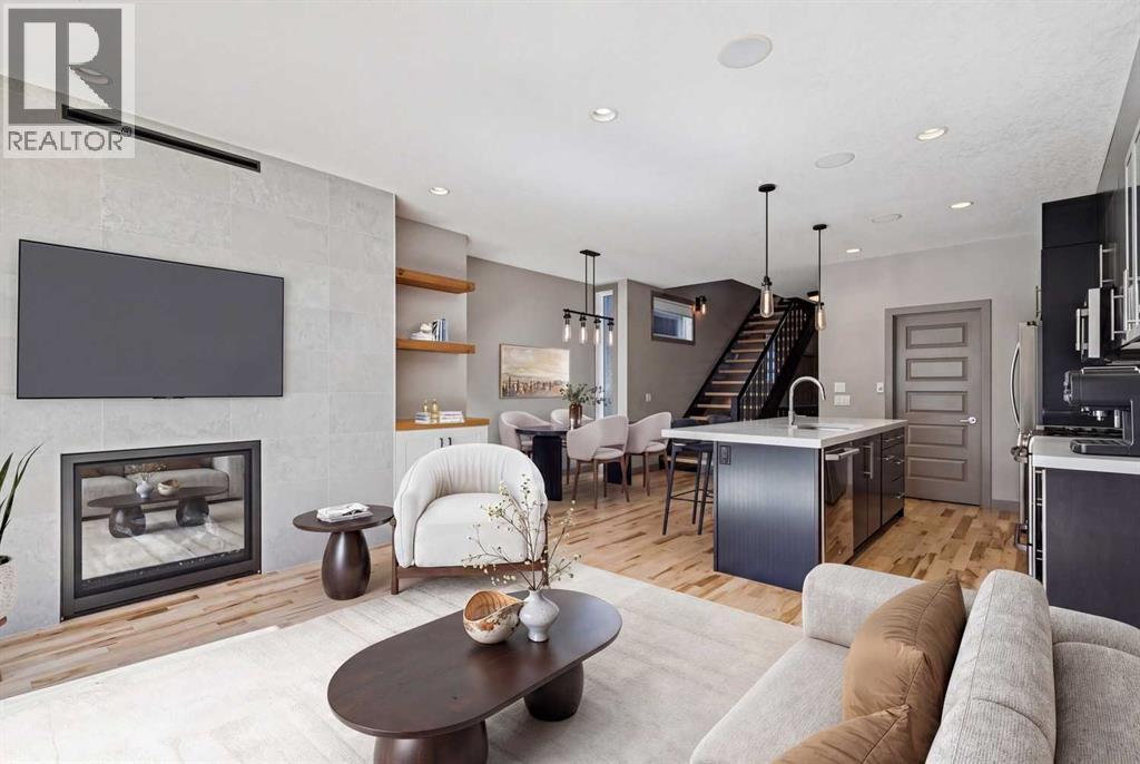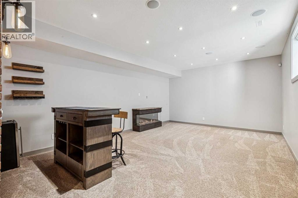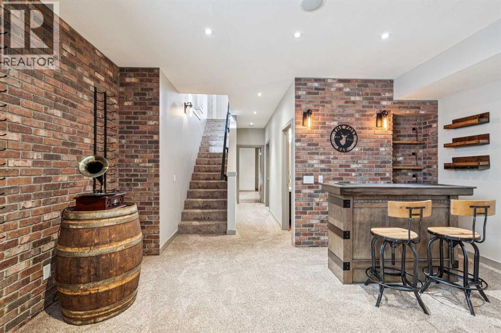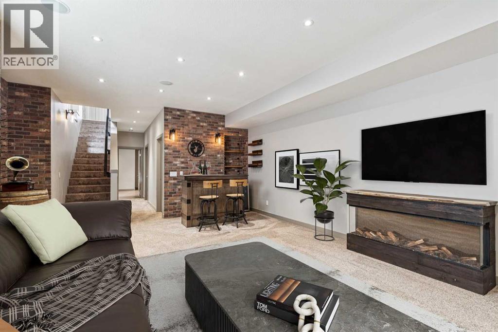 Located on a quiet, tree-lined street in desirable Altadore, this fully developed detached home blends refined design with everyday functionality while placing parks, pathways and Marda Loop amenities within easy reach. Step inside to a bright main level where 9’ ceilings and recently refinished hardwood flooring establish an open, airy feel and new light fixtures introduce a polished layer of style. Work from home with ease in the front den, where a sliding door allows privacy without sacrificing natural light. Entertain effortlessly in the chef-inspired kitchen, where a gas stove, new fridge, built-in wine fridge, updated quartz countertops and a gorgeous custom butler pantry come together around a generous island. Share meals in the adjacent dining area, which keeps conversation connected while maintaining clear sightlines across the main floor. Unwind in the family room where a gas fireplace anchors the space and oversized windows draw sunlight inward and invite seamless access to the backyard. Head upstairs via the custom open riser staircase, where hardwood flooring continues and a central bonus room introduces a flexible zone suited to relaxing, studying, or play. Recharge in the primary retreat, where generous proportions establish a true sense of escape and a lavish ensuite elevates daily routines with new quartz countertops, in-floor heated tile, an oversized steam shower, dual sinks and a deep soaker tub. A customized California Closet system is thoughtfully arranged to keep everything organized and accessible. Two additional bedrooms, a 4-piece bathroomnand upper laundry finish this level with everyday convenience in mind. The finished basement adds extra living space with exposed brick detail, a wine wall, bar area and an electric fireplace. The expansive recreation area is suited to movie nights or games, while a fourth bedroom and 3-piece bathroom bring added flexibility for guests or a home gym. Outside, the south-facing backyard features a deck, pat io and gas BBQ hookup, designed for low-maintenance outdoor living. Additional highlights include central A/C, security system, gemstone exterior lighting, in-ceiling speakers, tankless hot water and a double garage. Enjoy walking to Sandy Beach Park, the Elbow River pathways and the vibrant shops, dining, and recreation options of Marda Loop. (id:63190)
