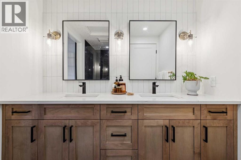 Completely renovated from top to bottom, this high-quality, stylish townhouse offers a rare blend of modern design, thoughtful upgrades, and an unbeatable location with greenspace behind and just one row from the scenic pathways of the Bow River. Featuring a single attached garage with brand-new epoxy flooring and a driveway, this home has been refreshed throughout, including all new windows, creating a truly move-in ready experience. Inside, the main level impresses with a dramatic 2-storey ceiling in the living room, anchored by a cozy gas fireplace and finished with durable LVP flooring, while patio doors lead to a private, FULLY FENCED BACKYARD. The adjacent kitchen and dining area are equally striking, showcasing beautiful updates with a large island with breakfast bar, stainless steel appliances including an oven that has barely been used, stone countertops and backsplash, custom cabinetry, floating open shelves, a large walk-in pantry, and a charming bay window with café-style seating, perfect for morning coffee or a work-from-home nook. The dining space features a custom built-in bench, adding both style and function. Also on this level, the show-stopping half bathroom is beautifully finished with tile flooring, granite countertops, bold black walls, and unique, modern design details with updated fixtures throughout. Upstairs, you will find 3 well-sized bedrooms and 2 full bathrooms, including a spacious primary retreat with a large walk-in closet complete with built-ins, new window coverings, and a private, treed outlook with mature evergreens. The ensuite offers double sinks, granite counters, tile flooring, and a large, gorgeous tiled shower, while the secondary bathroom includes a tub/shower combo and granite countertops. The fully finished basement extends your living space with LVP flooring, laundry, a flex room, and convenient under-stair storage. A welcoming front patio sitting area adds to the home’s charm, while the surrounding community offers a u nique, nature-filled setting with mature trees throughout, easy access to downtown, the Children’s Hospital, the Foothills Hospital, and quick routes west to the mountains - making this an exceptional opportunity for those seeking both lifestyle and location. The maintenance fees are some of the lowest in the neighbourhood! (id:63190)