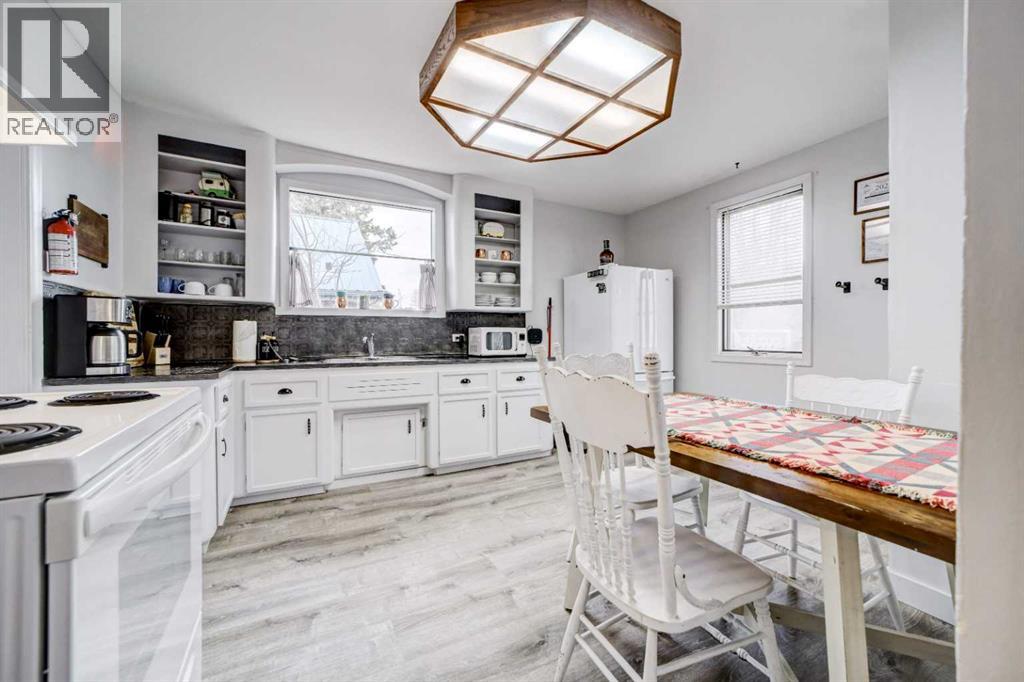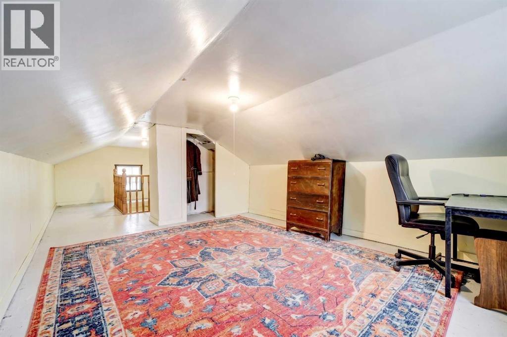 Charming 1.5 storey home in Coleman, currently permitted and operating as a successful short term rental, offering a unique opportunity for both lifestyle and income. From the moment you step inside, there is a warmth to this home that feels easy to settle into. The main floor is filled with natural light and thoughtful updates that honour the home’s character. Two comfortable bedrooms and a beautifully renovated period inspired bathroom with a cast iron clawfoot tub create a space that feels both timeless and refreshed. The primary bedroom offers peaceful views, adding to the calm, inviting atmosphere throughout. Upstairs, the loft provides over 300 square feet of additional living space not included in the RMS. It is a versatile area that could work as a cozy retreat, play space, creative studio, or office. The full basement is bright and full of possibility, with lots of windows bringing in the natural light, separate exterior access, and a new electrical panel installed in 2025. Whether you envision future development or simply appreciate the added space, it offers flexibility to suit your needs. Outside is where this property truly comes to life. A recent lane purchase from the municipality has expanded the backyard, creating an oversized lot that feels private, quiet, and expansive. Mature trees surround the space, while the sunny south facing orientation with mountain views makes it ideal for long afternoons outdoors, gardening, or simply unwinding at the end of the day. It is the kind of yard that invites you to slow down and enjoy where you are. (id:63190)