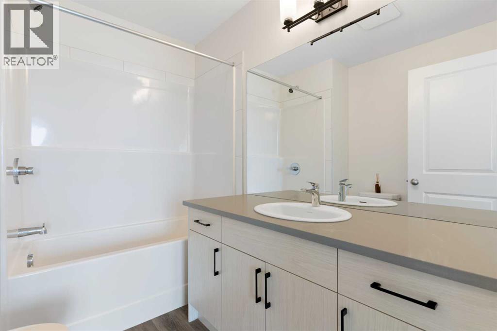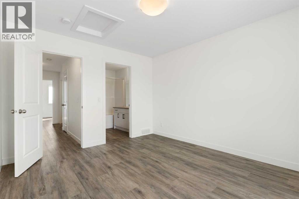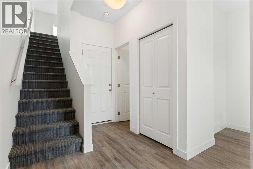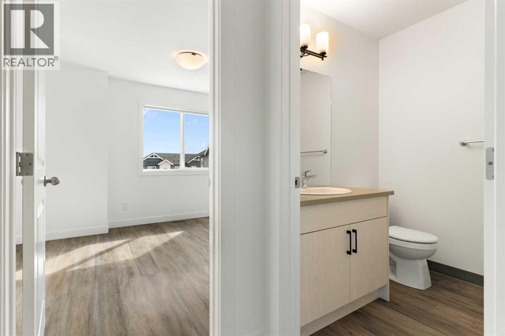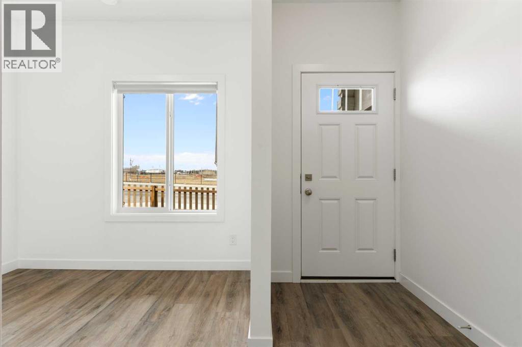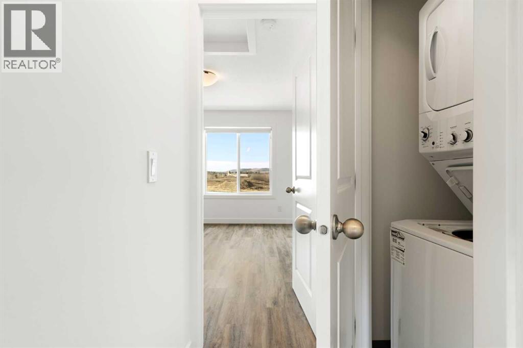 Experience the best of modern living in this lightly lived in Cochrane townhome. , enjoy a west facing backdrop! Located directly across from the future Rivercrest School! and offering stunning Mountain Views! The last interior unit with a deck facing the Mountains! Inside, discover a bright, open-concept haven designed for both entertaining and everyday comfort. The kitchen is the heart of the home, featuring a sprawling white quartz island perfect for casual meals or lively gatherings. You'll love the sleek two-tone cabinetry with soft-close drawers, a full GE stainless steel appliance package, ample cabinet space, and a pantry, all illuminated by stylish pendant lighting. Large windows on both sides of the unit flood the space with natural light, highlighting the durable vinyl plank floors and soaring, knock-down textured ceilings. Pull-down window coverings offer privacy and shade when desired, while the adjacent living room provides a natural gathering spot. This meticulously designed townhome offers two spacious bedrooms, 2.5 baths, and a versatile flex space on the main level—perfect for a home office, guest room, or creative studio. The primary suite on the third level boasts dual closets for ample storage and large windows and its own 4pc ensuite. This level also features a convenient laundry area and a full 4-piece bath for the other bedroom. Convenience is paramount with the oversized, fully insulated single-car garage, with dual access (doors on both sides of the unit) Location is key! Nestled in a fantastic complex, you're just steps from shopping, scenic pathways, and the tranquil Bow River. Bow Valley High School is close by, with a Cochrane's newest school (K-8 Breaking ground this Spring) conveniently located next door , and local transit is mere steps away. Enjoy quick access to Calgary for work or entertainment and the majestic mountains for weekend adventures. (id:63190)