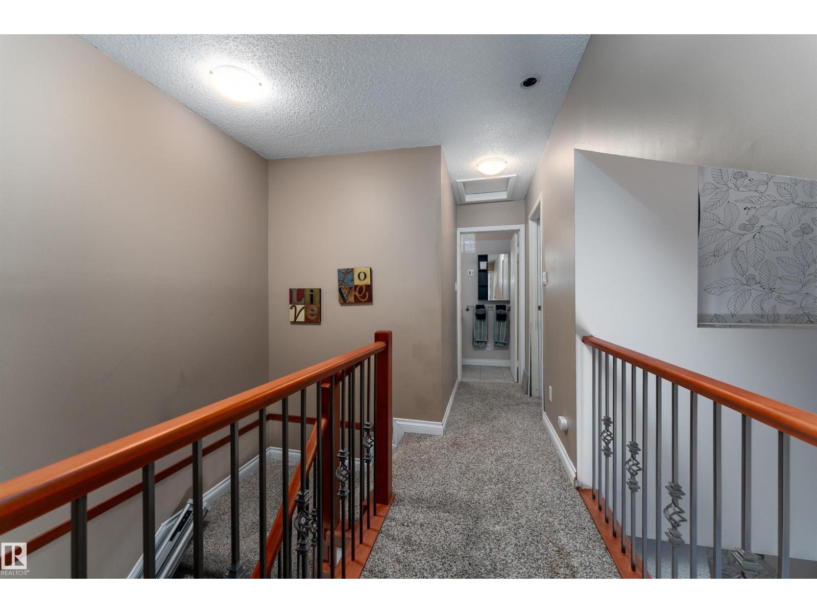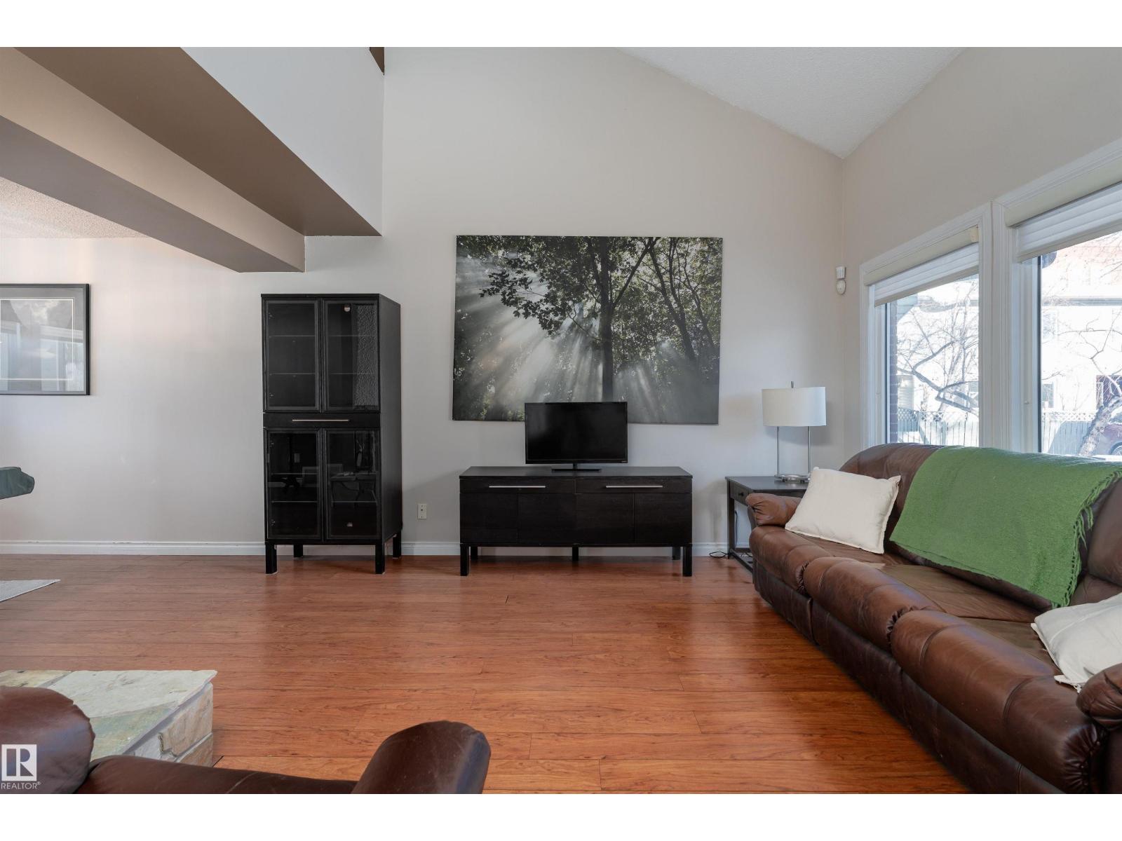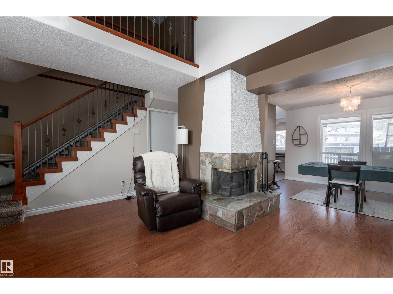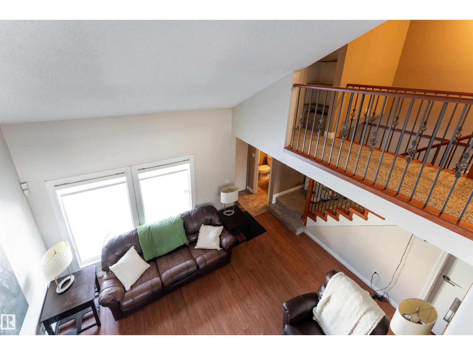Stop searching and start packing because this uniquely designed 1,222 sq. ft. Hillview Crescent gem is the one you’ve been waiting for! The main floor features a grand living room with high vaulted ceilings and a cozy stone-surround wood fireplace. The modern kitchen is a dream. Designed with warm wood cabinetry, beautiful tile backsplash, dark counters, and a bright breakfast nook by the window. Hosting is a breeze in the large dining room, while neutral-toned flooring and a 2-pc bath complete the level. Upstairs, the open-to-below design enhances the space, leading to a massive primary suite with vaulted ceilings and an attached flex room, a second generous bedroom with cozy carpeting. The partially finished basement has a full bath, laundry room, and 3rd bedroom. Outside, enjoy the private deck and west-facing yard for afternoon sun. Complete with 2 assigned parking stalls, and close proximity to schools and shopping. Your perfect home awaits! (Furnace replaced in 2025). (id:63190)