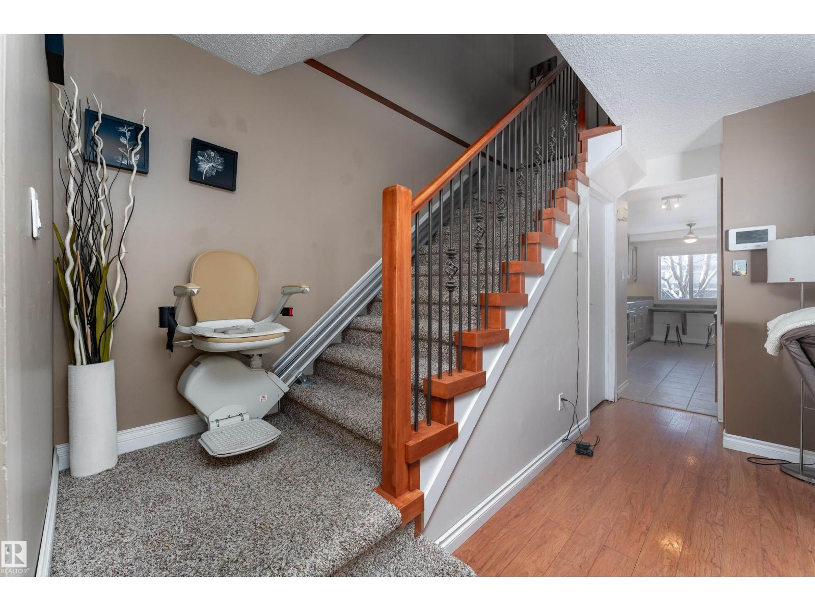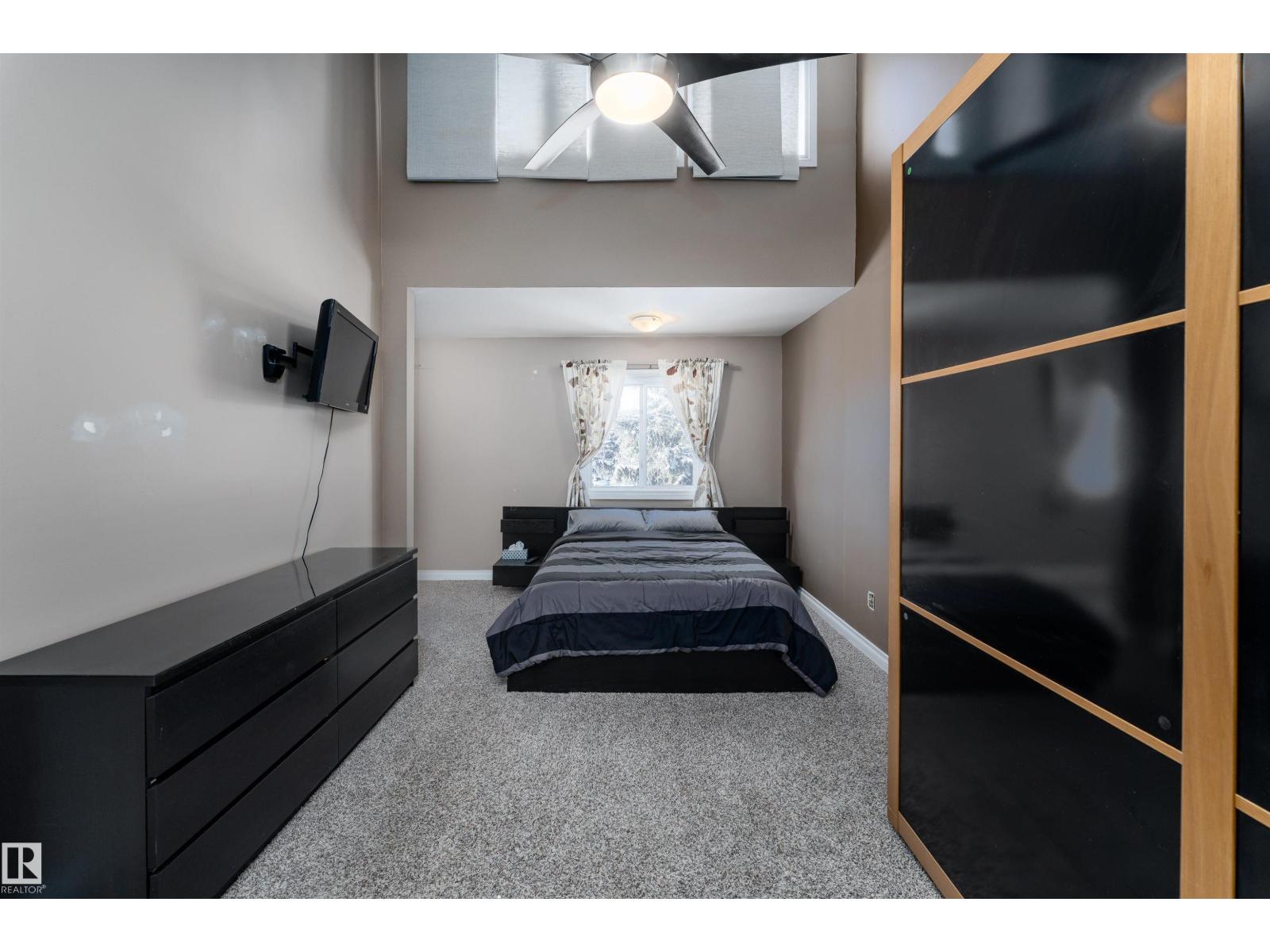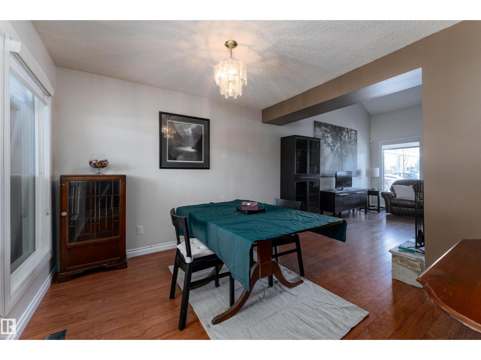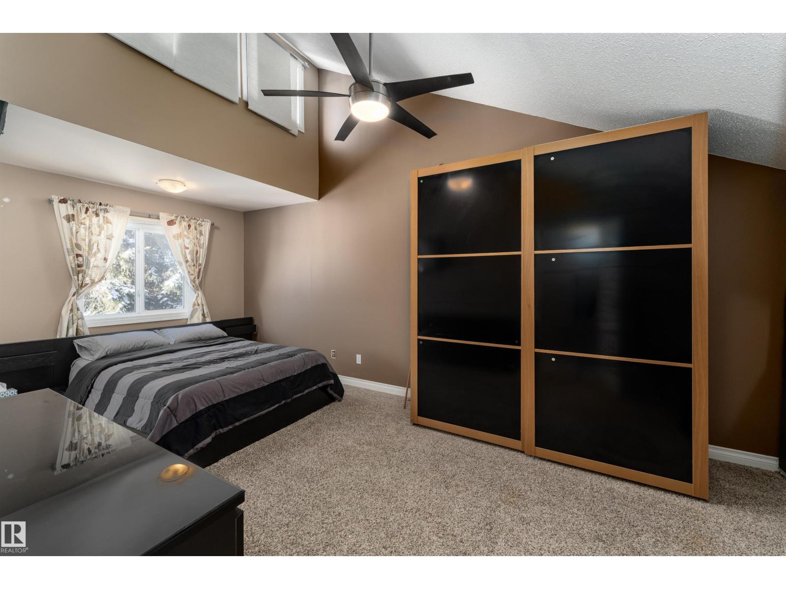 Stop searching and start packing because this uniquely designed 1,222 sq. ft. Hillview Crescent gem is the one you’ve been waiting for! The main floor features a grand living room with high vaulted ceilings and a cozy stone-surround wood fireplace. The modern kitchen is a dream. Designed with warm wood cabinetry, beautiful tile backsplash, dark counters, and a bright breakfast nook by the window. Hosting is a breeze in the large dining room, while neutral-toned flooring and a 2-pc bath complete the level. Upstairs, the open-to-below design enhances the space, leading to a massive primary suite with vaulted ceilings and an attached flex room, a second generous bedroom with cozy carpeting. The partially finished basement has a full bath, laundry room, and 3rd bedroom. Outside, enjoy the private deck and west-facing yard for afternoon sun. Complete with 2 assigned parking stalls, and close proximity to schools and shopping. Your perfect home awaits! (Furnace replaced in 2025). (id:63190)