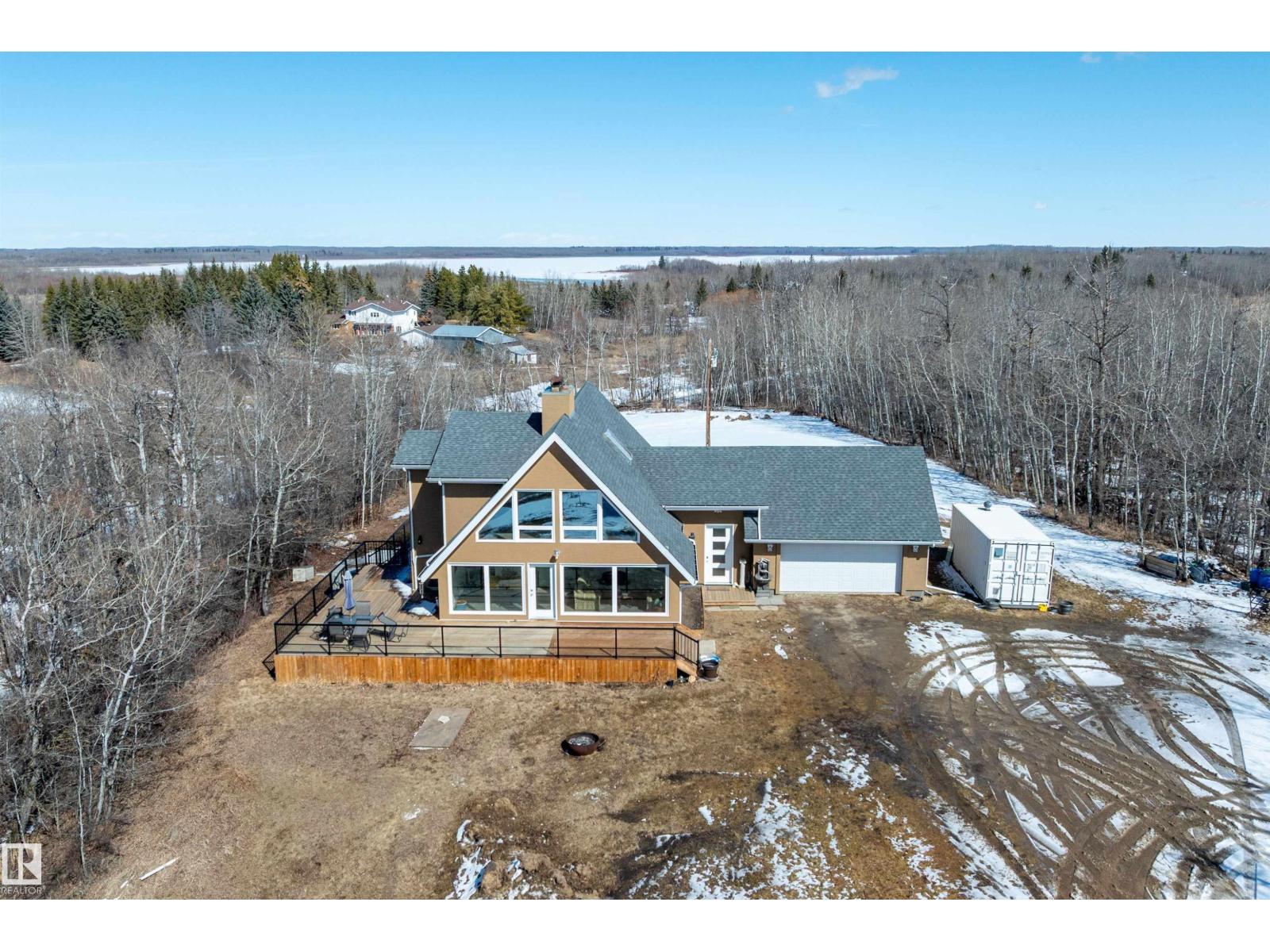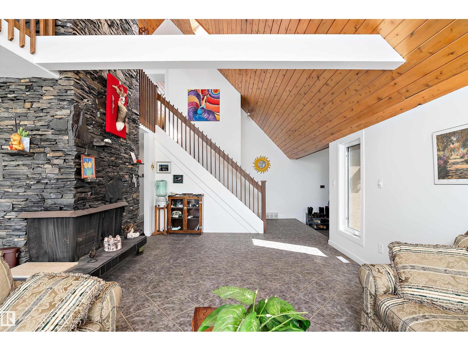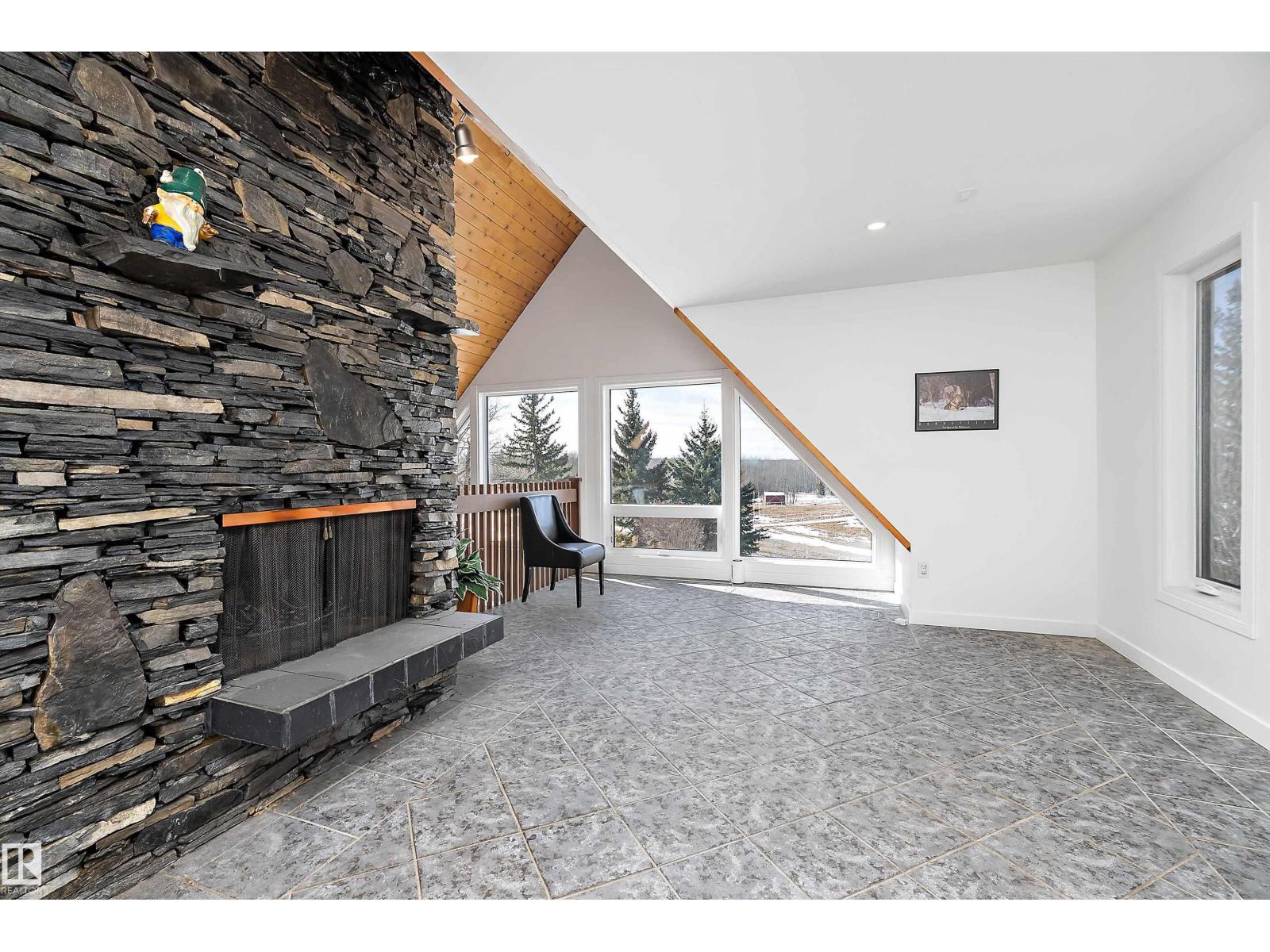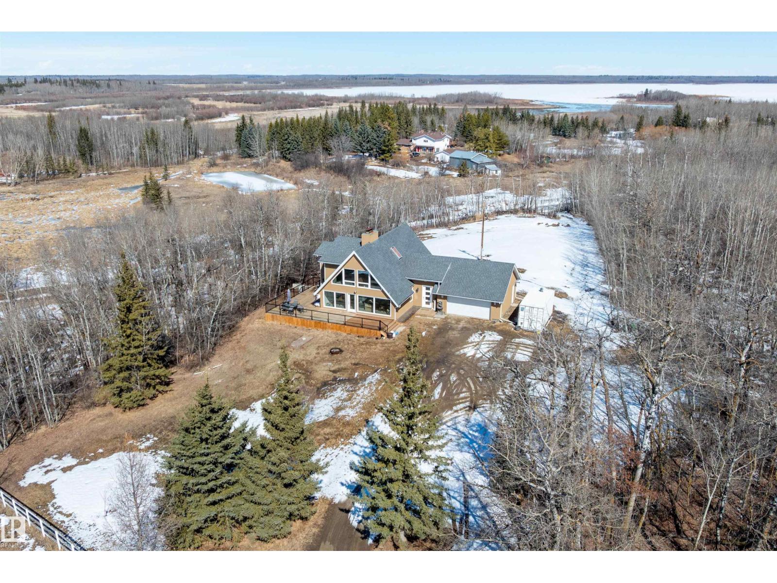 This property is a DREAM COME TRUE for EQUINE ENTHUSIASTS! Spanning 40.53 Acres, it offers everything you need for thriving equine activities! A 160 x 70 heated INDOOR RIDING ARENA, INSULATED & HEATED BARN w/septic, THIRTEEN-12 x 10 rubber matted stalls, WASH BAY, LAUNDRY/LUNCH ROOM, TACK RM & LOCKERS, & 2 pce bathrm. Outside you'll find numerous paddocks, 3 AUTO WATERERS, HAY & EQUIPMENT SHEDS, and an OVAL TRACK around the perimeter! The lrg 35 x 78 STORAGE QUONSET has 2x14 ft drive thru overhead doors & new vinyl cover. The FULLY RENOVATED house exudes charm with its vaulted ceilings boasting a cosy living area w/stone fireplace, 2 spacious bedrms, 2 bathrooms, and a GORGEOUS KITCHEN! Upper level has a MASSIVE PRIMARY SUITE w/4 pce ensuite, and is completed with a den w/fireplace overlooking the main level and AMAZING view out the west facing windows. Fully developed lower level is complete w/3 pce bath, bedrm, kitchen and flex areas. AMAZING HORSE PROPERTY on a beautiful and PRIVATE 40.53 Acres. (id:63190)