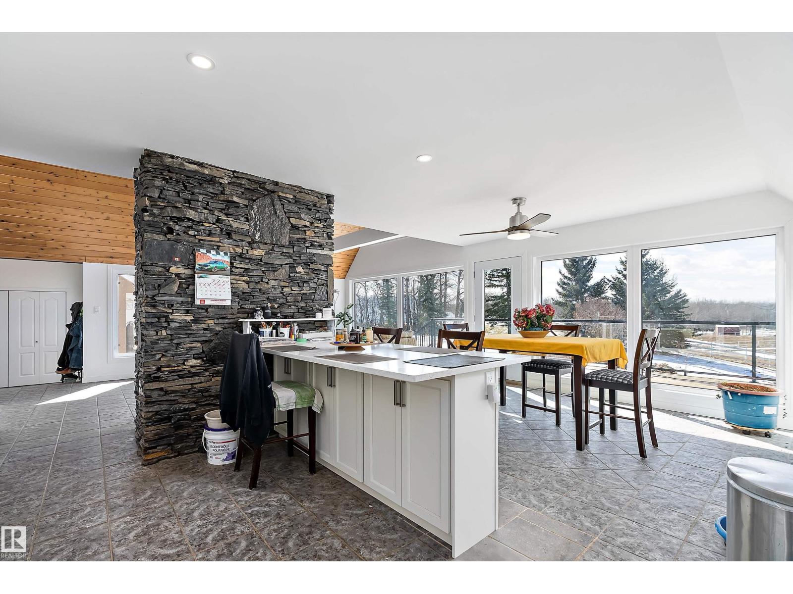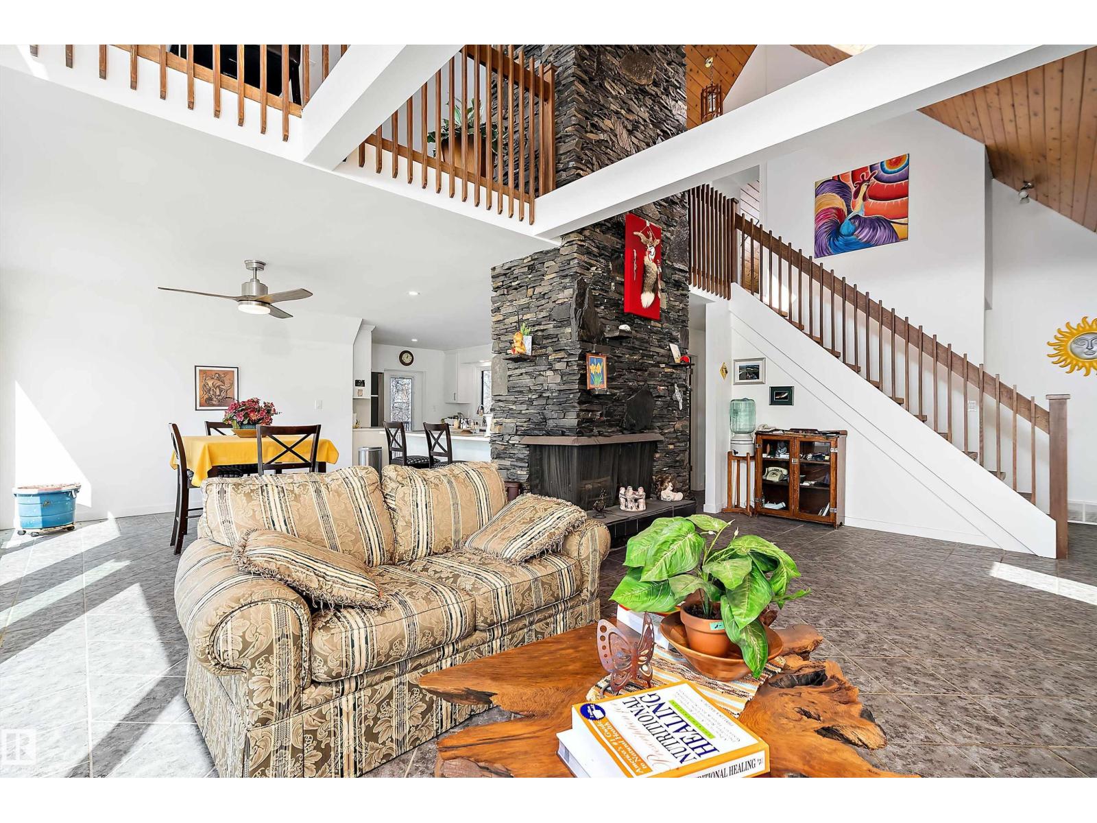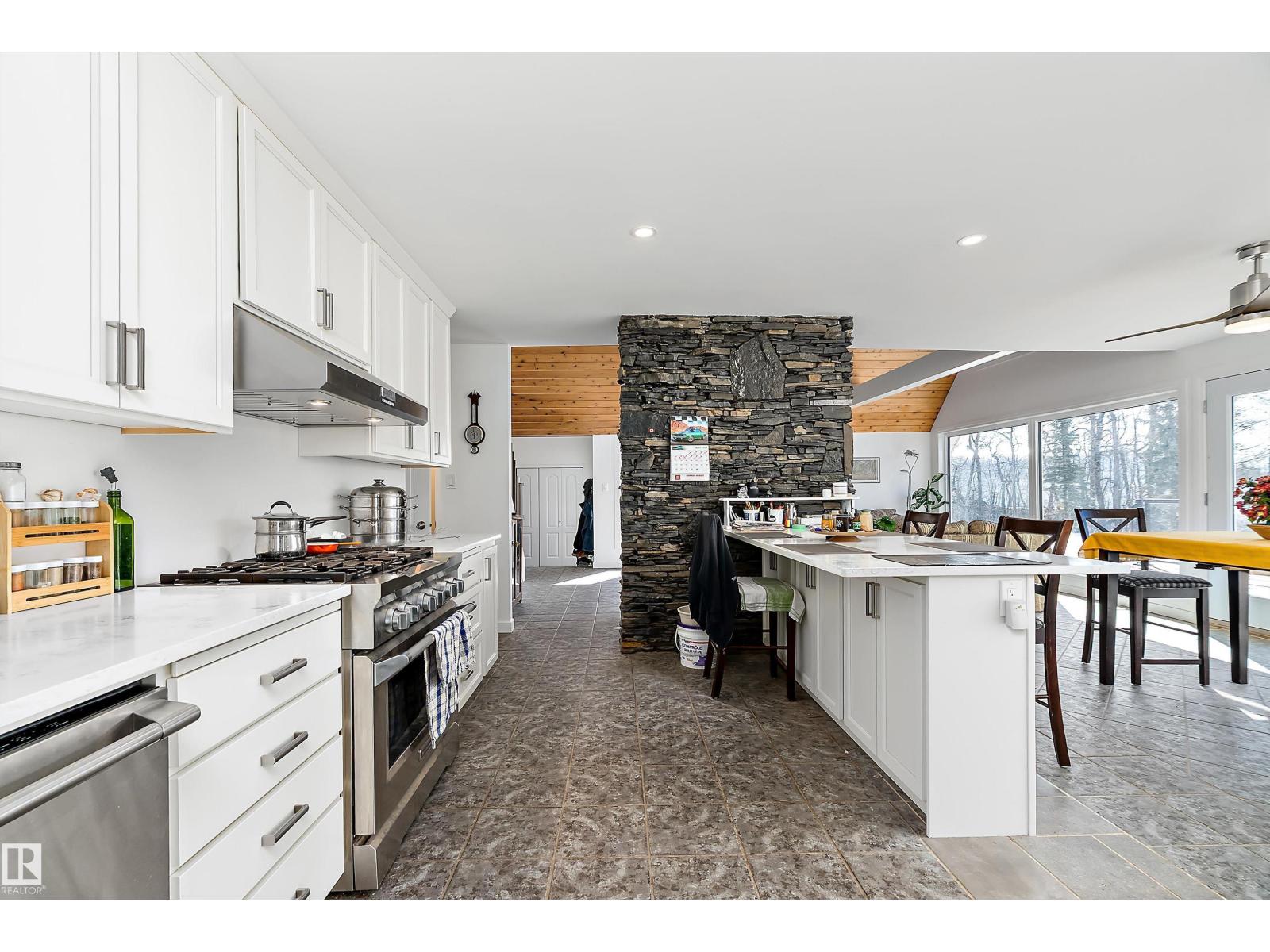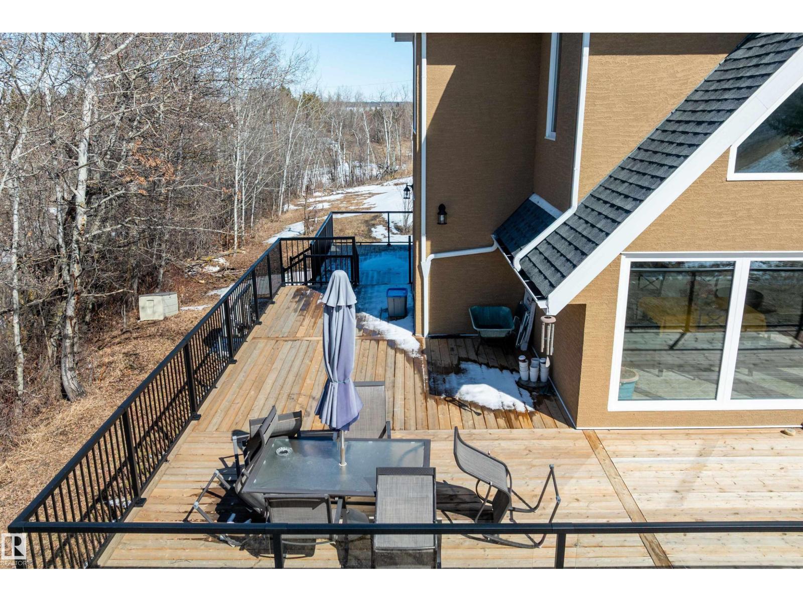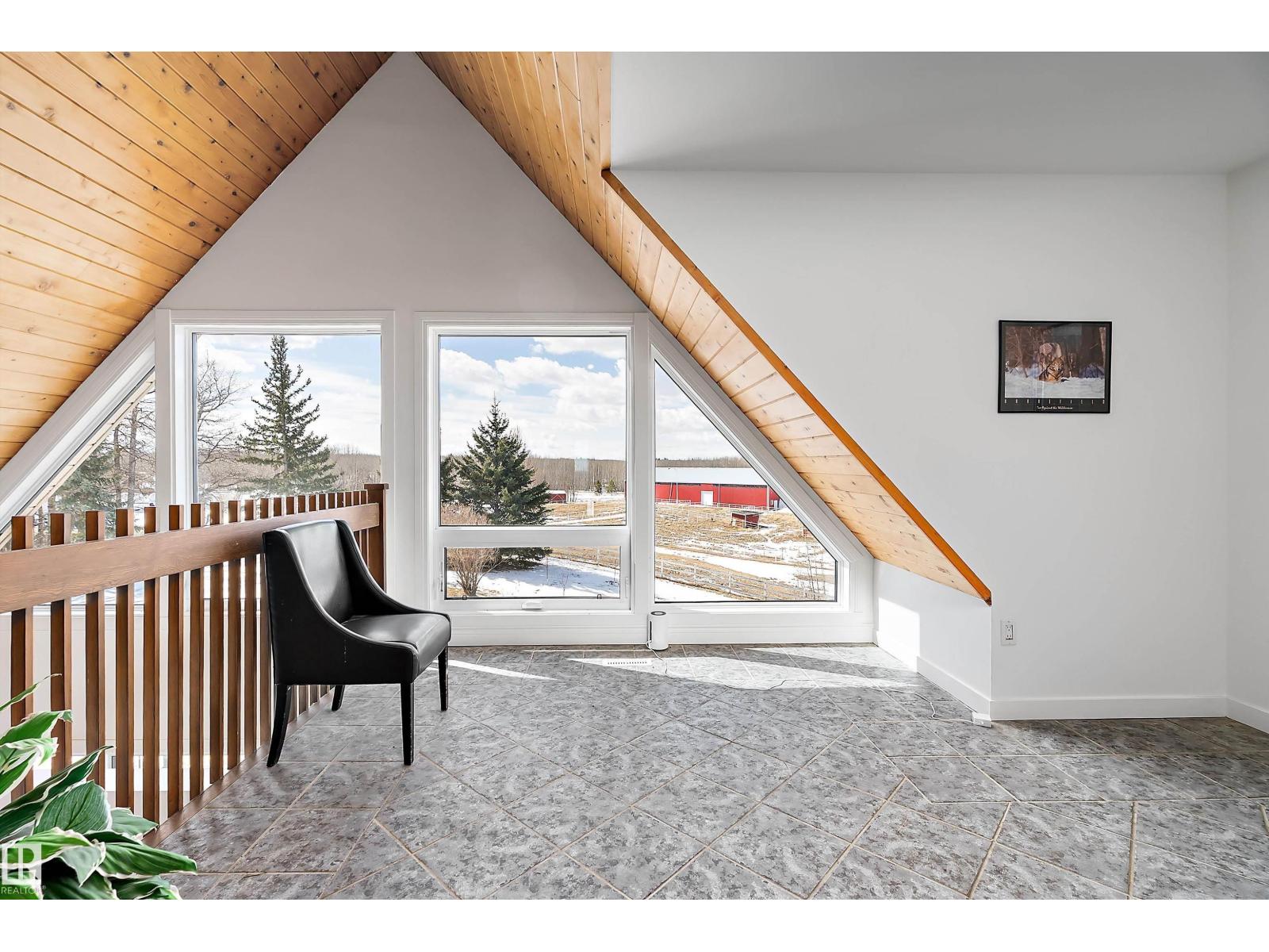 This property is a DREAM COME TRUE for EQUINE ENTHUSIASTS! Spanning 40.53 Acres, it offers everything you need for thriving equine activities! A 160 x 70 heated INDOOR RIDING ARENA, INSULATED & HEATED BARN w/septic, THIRTEEN-12 x 10 rubber matted stalls, WASH BAY, LAUNDRY/LUNCH ROOM, TACK RM & LOCKERS, & 2 pce bathrm. Outside you'll find numerous paddocks, 3 AUTO WATERERS, HAY & EQUIPMENT SHEDS, and an OVAL TRACK around the perimeter! The lrg 35 x 78 STORAGE QUONSET has 2x14 ft drive thru overhead doors & new vinyl cover. The FULLY RENOVATED house exudes charm with its vaulted ceilings boasting a cosy living area w/stone fireplace, 2 spacious bedrms, 2 bathrooms, and a GORGEOUS KITCHEN! Upper level has a MASSIVE PRIMARY SUITE w/4 pce ensuite, and is completed with a den w/fireplace overlooking the main level and AMAZING view out the west facing windows. Fully developed lower level is complete w/3 pce bath, bedrm, kitchen and flex areas. AMAZING HORSE PROPERTY on a beautiful and PRIVATE 40.53 Acres. (id:63190)
