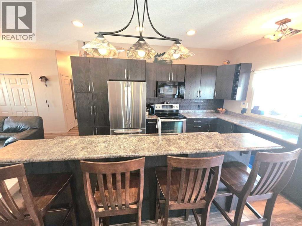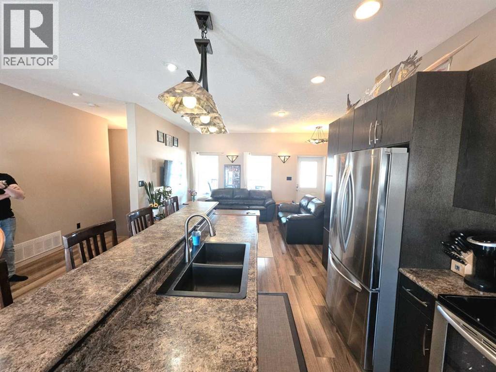 Welcome to Saddleback Ridge in Peace River—one of the area’s most desirable newer subdivisions! This well-maintained 1,300+ sq. ft. home, built in 2008, offers a perfect blend of comfort, style, and location. Ideally situated close to major box stores, grocery shopping, the hospital, and medical clinic, this property delivers convenience for the whole family. Step inside to a bright and inviting main floor featuring a trendy kitchen with modern finishes, ample cabinetry, and a functional layout that flows seamlessly into the dining and living areas—perfect for everyday living and entertaining. The home offers four spacious bedrooms and three bathrooms, including a large master suite complete with a private 4 piece en suite and large walk in closet. The fully finished basement adds valuable living space with a recreation area, additional bedrooms, 3 piece bathroom and plenty of storage. There has been recent updates to the furnace and the hot water tank Outside, enjoy a large fenced yard with a generous garden area, ideal for those with a green thumb. Relax or entertain on the rear deck or unwind on the welcoming front porch. The heated double car garage provides comfort and convenience year-round with excellent mezzanine storage as well This is a fantastic opportunity to own a move-in-ready home in a great neighborhood—perfect for families or anyone looking for space and modern living in Peace River. (id:63190)
