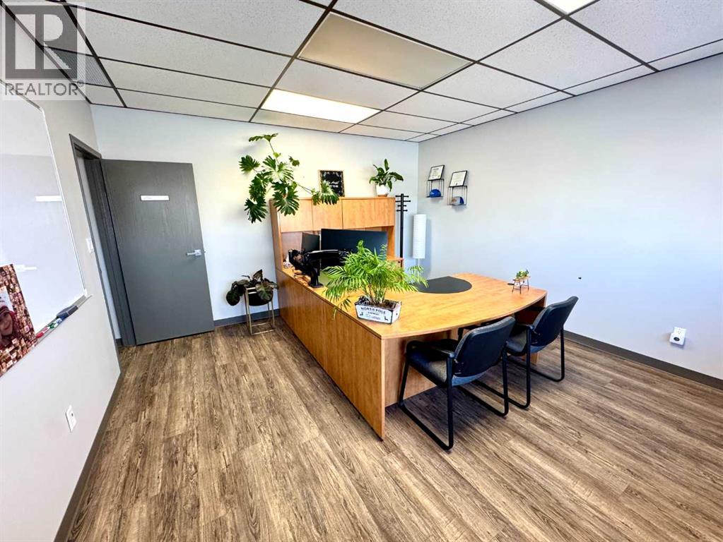 TURN-KEY Commercial/Industrial Unit w/ immediate AVAILABILITY!. SUBSTANTIALLY RENOVATED INDUSTRIAL BAY, Located in Northlands Industrial Park, this fully developed, HIGH-END 4,517 SQ FT light industrial bay features a total of 6 offices (3 upstairs), 3 baths (1 upstairs), and an executive-finished boardroom (1,265 SQ FT developed mezzanine space). At the back there's 1900 SQ FT +/- of shop/storage space at the back. (70'x28'W) with a total main-floor footprint of 3,252 SQ FT (28'x120'). A large 12'x14' overhead door w/ an automatic opener, ceiling height of 18' services the back. Partially paved back-alley access for easy loading/unloading and a generous helping of parking at the front & rear. A tremendous opportunity to lease this nicely built-out industrial condo! . All office spaces are air-conditioned. Operational expenses of $4.45/PSF or $1,675.05/month (2025), which include taxes, insurance, condo fees, and water & sewer. With a base rent of $3,387.75/month, this affordable commercial/industrial condo bay is at an asking price of $5,062.80/month or $13.45/PSF total rent on an introductory price! Easy to show during business hours. Possession can be immediate. (id:63190)
