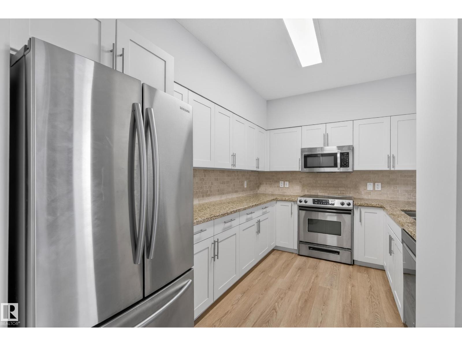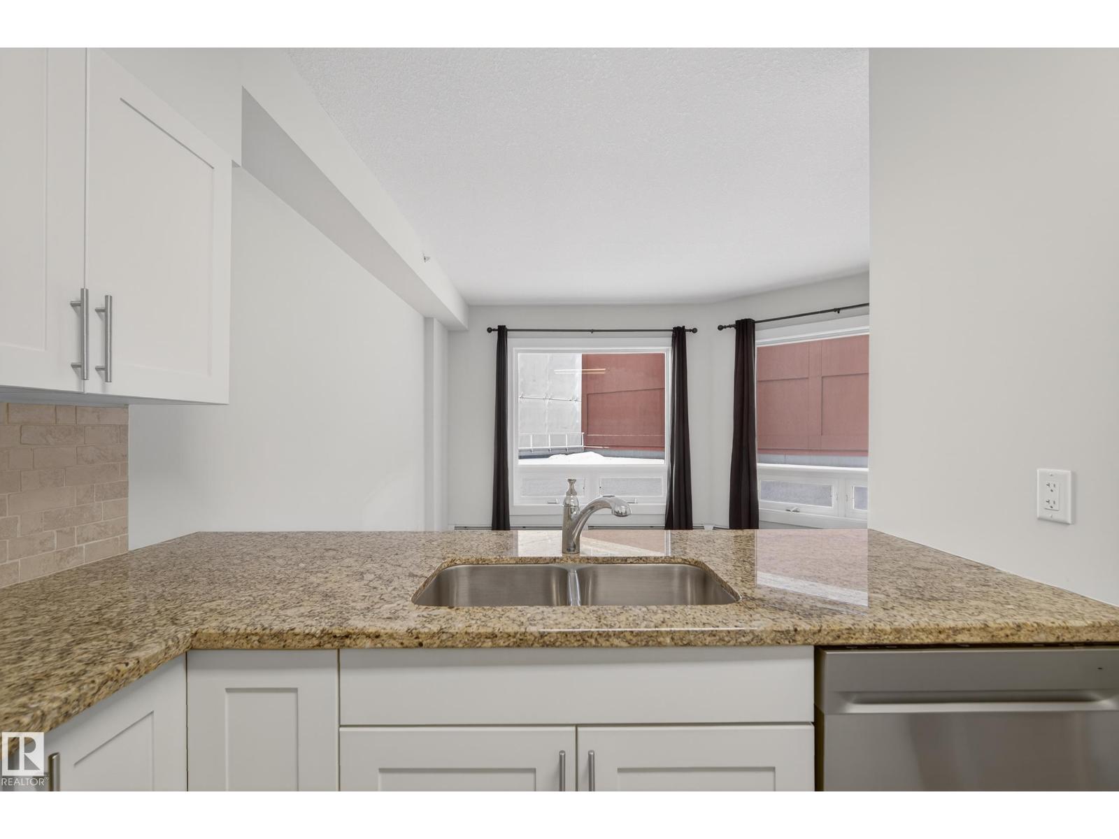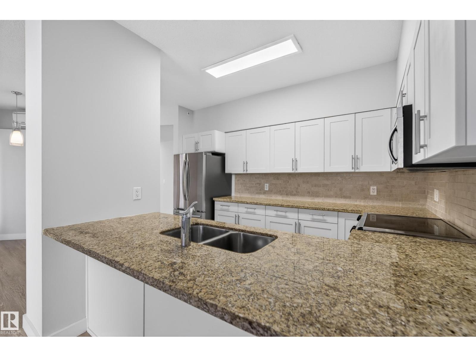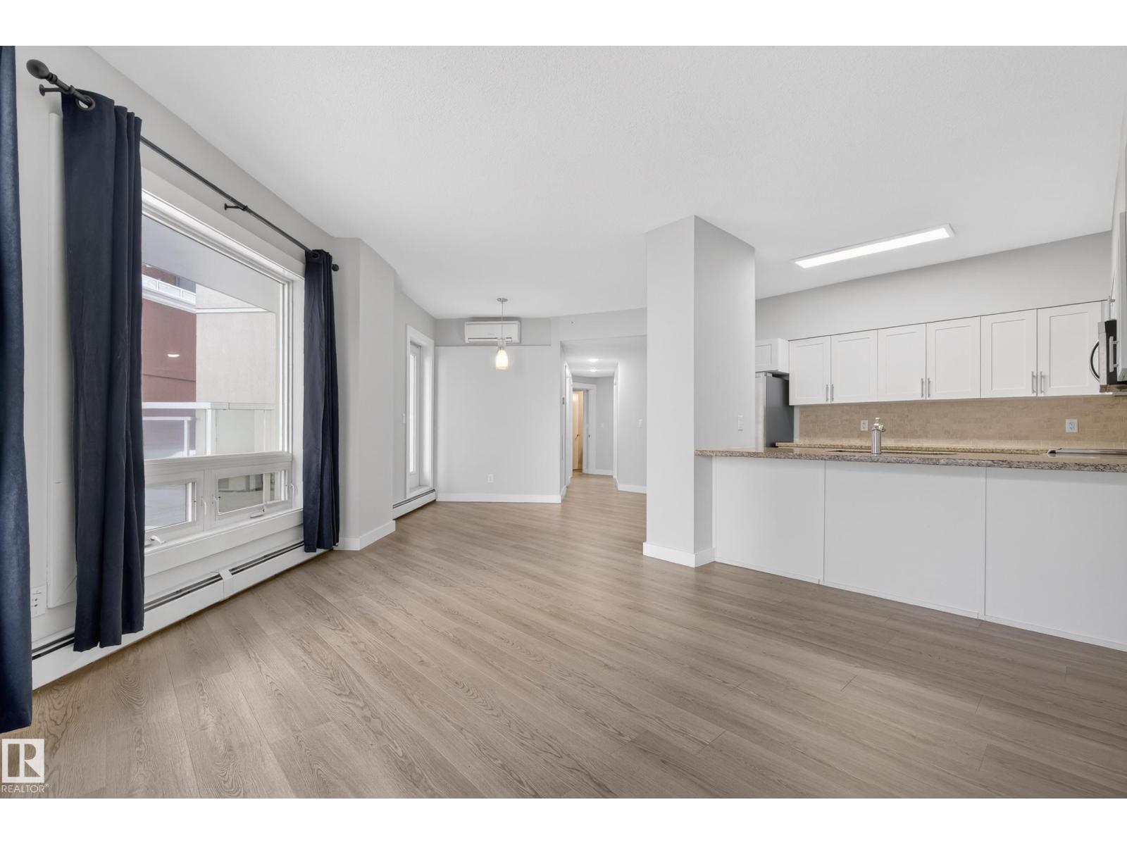 Experience the best of downtown living in this bright 2-bedroom, 2-bath condo, with titled TANDEM underground parking and a large private patio perfect for entertaining. The open-concept living and dining area flows into a modern kitchen with granite counters, eating bar, and stainless-steel appliances. The spacious primary bedroom offers a generous walk in closet and 3 pc ensuite. The large second bedroom has ample closet space and direct access to the 4 pc bath. Enjoy in-suite laundry, sleek vinyl plank flooring, air conditioning, and plenty of storage. Steps to fantastic restaurants, cafes, shops & nightlife. Minutes to Ice District & Rogers Place. Quick access to the U of A and the rest of the city with LRT across the street. This move-in ready condo is perfect for anyone seeking style, comfort, and vibrant downtown living. (id:63190)
