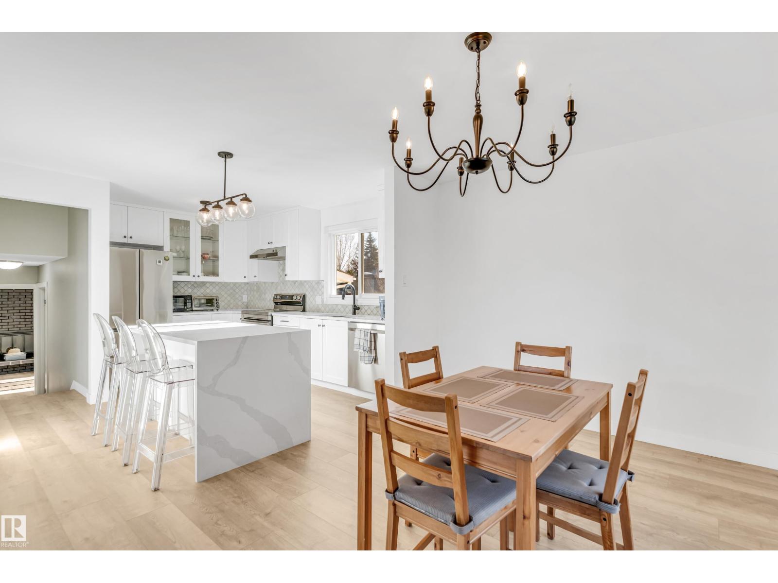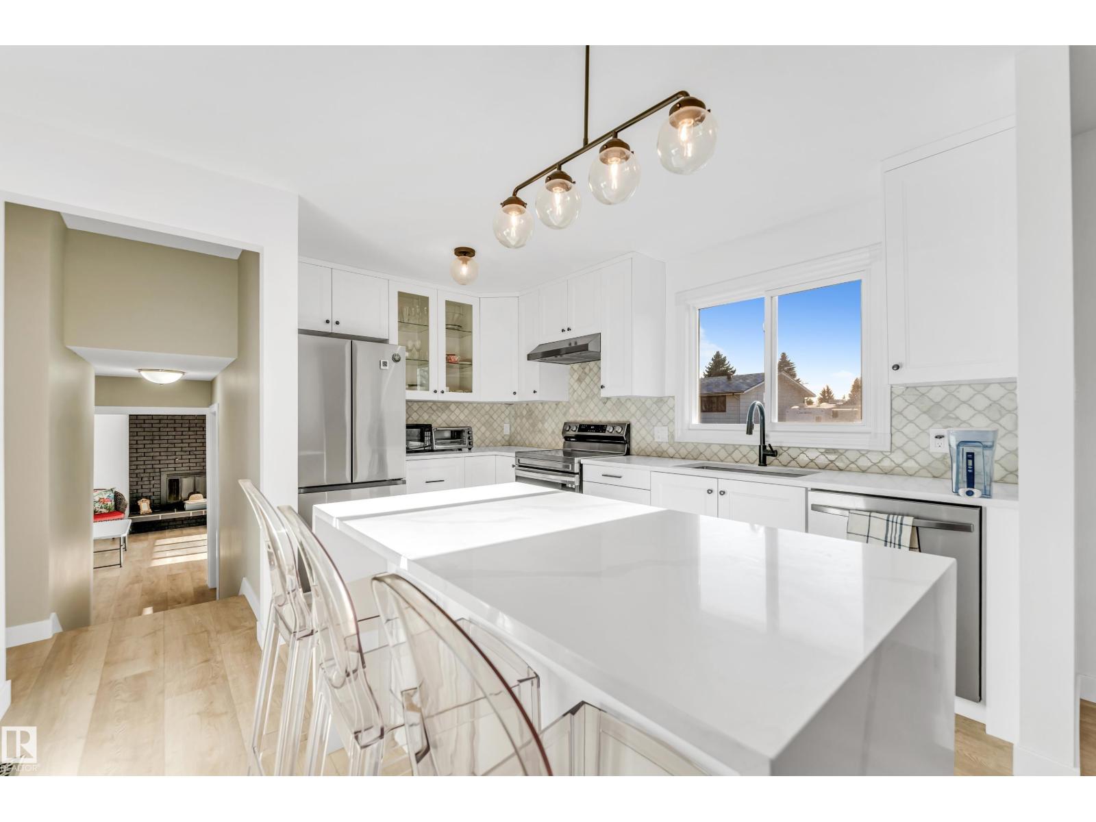 This extensively renovated home boasts five bedrooms and three-and-a-half bathrooms across approximately 1,907 sq. ft. of stylish living space. Recent upgrades include a new roof, windows, 8mm vinyl plank flooring, plush carpeting, modern appliances, and updated lighting throughout. The open-concept kitchen showcases elegant white cabinetry, quartz countertops, and ample storage, seamlessly flowing into a sun-filled living area enhanced by French doors for a bright, inviting atmosphere. All bathrooms have been tastefully upgraded with contemporary finishes and neutral tilework, while the private primary suite features a glass-enclosed shower for a spa-like experience. Two generous living areas provide plenty of space for entertaining, including a second family room with a charming brick wood-burning fireplace—perfect for cozy gatherings during cooler months. The fully finished basement offers even more room to relax, complete with a large wet bar and soft carpeting, making it an ideal entertainment hub. (id:63190)