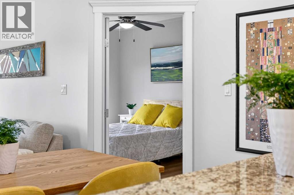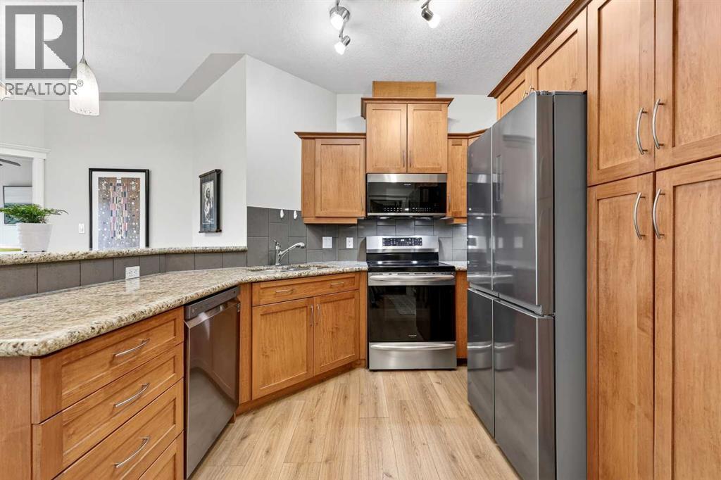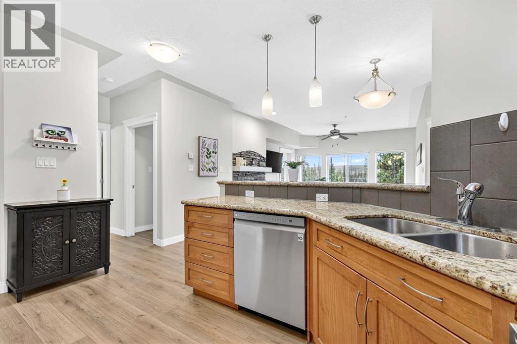 Is there a 2-bed apartment in Discovery Ridge with forest views and over 1000 sqft? This beautifully updated 2-bedroom apartment in Discovery Ridge offers over 1000 square feet of living space, high ceilings, and a rare south-facing balcony backing onto protected forest, combining comfort, privacy, and natural surroundings. Step inside and you are welcomed by a bright, open floor-plan where high ceilings and natural light enhance the sense of space. The living and dining areas flow seamlessly together, creating an ideal setting for both relaxing and entertaining. The kitchen is equipped with brand new appliances and is complemented by fresh laminate flooring, new paint, and updated window coverings throughout, giving the entire home a clean, modern feel. As you move through the home, two generously sized bedrooms offer comfort and functionality. The primary suite serves as a private retreat, complete with a full walk-in closet and a 4-piece ensuite. The second bedroom is equally spacious, perfect for guests, a home office, or additional living needs. One of the standout features is the south-facing balcony, where you can unwind while overlooking the protected forest, offering rare privacy and a peaceful connection to nature. Located in the highly sought-after community of Discovery Ridge, this home provides quick access to Stoney Trail and is just minutes from west Calgary amenities, shopping, dining, and outdoor pathways. This 2-bed apartment in Discovery Ridge is a perfect blend of modern updates, functional design, and natural beauty. (id:63190)