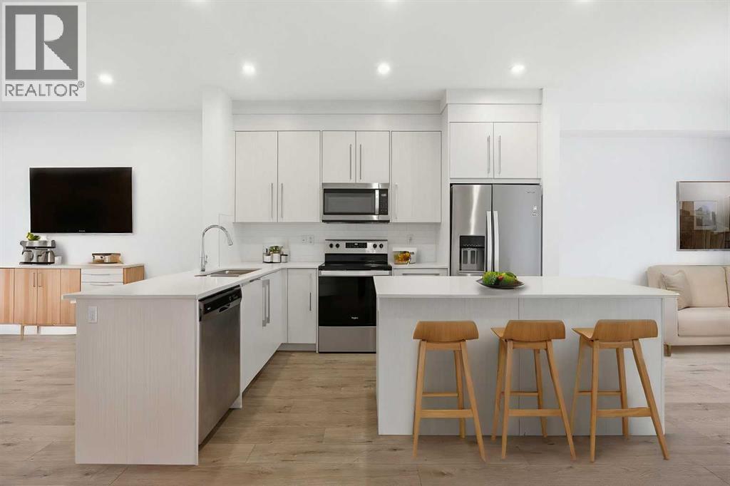 | LOW CONDO FEES | DOUBLE GARAGE | 4 BED & 2.5 BATH | 1600+ SQFT TOTAL | Discover contemporary living at its best in this stunning built townhome by Truman Homes, situated in the highly sought-after Savanna community in Saddle Ridge, Calgary. This thoughtfully designed 3-storey home boasts 4 bedrooms, 2.5 bathrooms, and a double attached garage—with an additional storage space. The bright, open-concept second floor is filled with natural light from expansive East facing windows, while the living room opens onto a large balcony—ideal for relaxing or entertaining. The modern chef’s kitchen showcases sleek quartz countertops, stainless steel appliances, a large island, soft-close cabinetry, and a spacious pantry for extra storage. Next to the chef's kitchen, you'll find a dedicated dining area perfect for meals and gatherings. Completing this level is a two-piece powder room, featuring a sink, lavatory, and a large window for added brightness. Upstairs, you’ll find three inviting bedrooms, including a primary suite with elegant tray ceilings, a roomy walk-in closet, and a private 4-piece ensuite. The two additional bedrooms are generously sized, each with its own private closet, and they share a well-appointed 4-piece bathroom. A conveniently located side-by-side washer and dryer on this level add to the home’s functionality. The ground floor offers access to your double garage and a flexible bedroom, perfect for use as an office, guest room, or flex space, with ample natural light streaming in through its north-facing windows. Located just steps away from Savanna Bazaar, you’ll enjoy easy access to groceries, dining, and daily essentials. Commuters will love the proximity to major routes such as Airport Trail, 88th Ave, Metis Trail, and Stoney Trail, as well as nearby public transit options like Saddletowne Station. Whether you're an investor seeking a rental property or a first-time homebuyer, this unit offers an unbeatable combination of location and value. Schedule your viewing today! (id:63190)