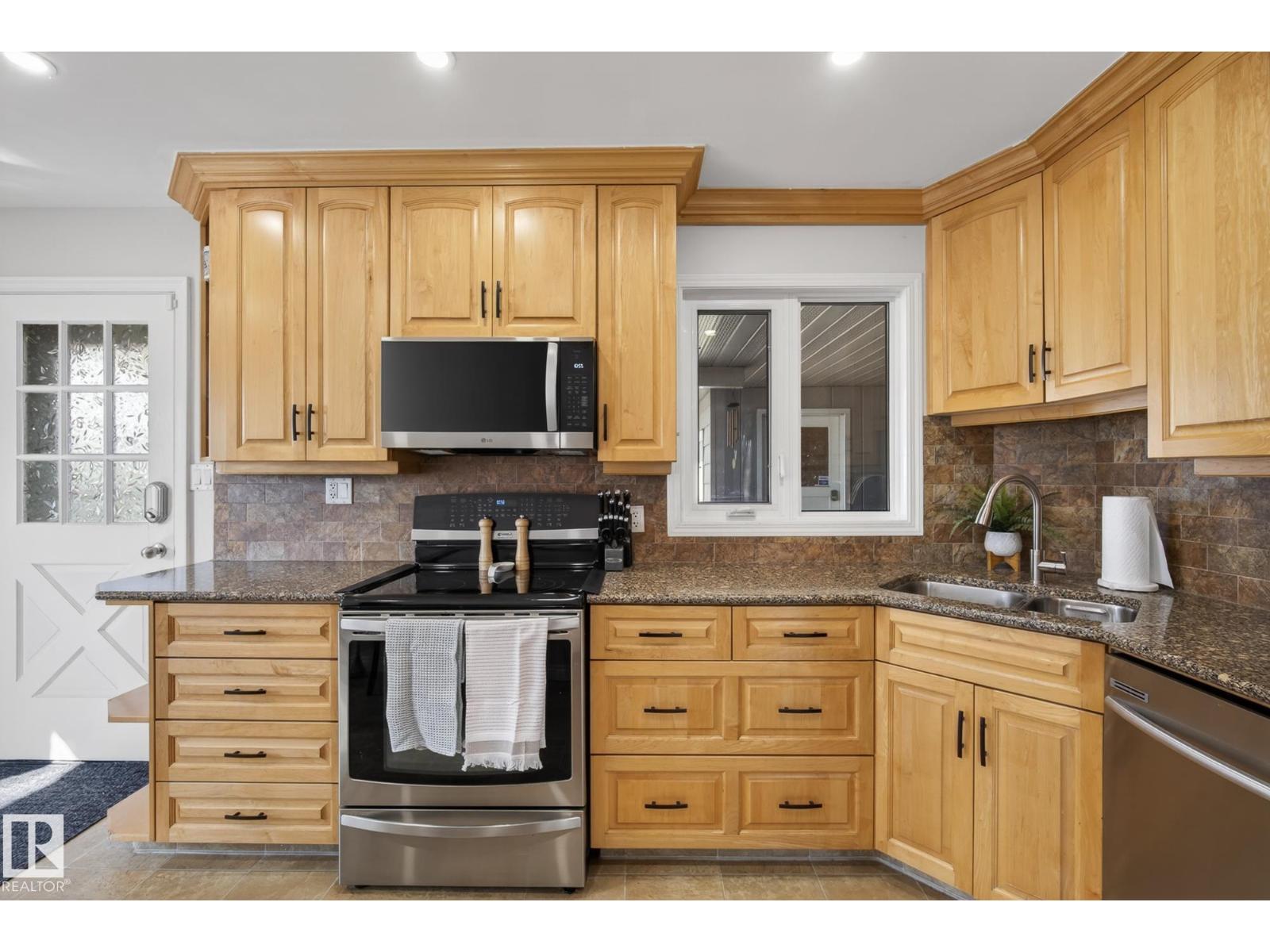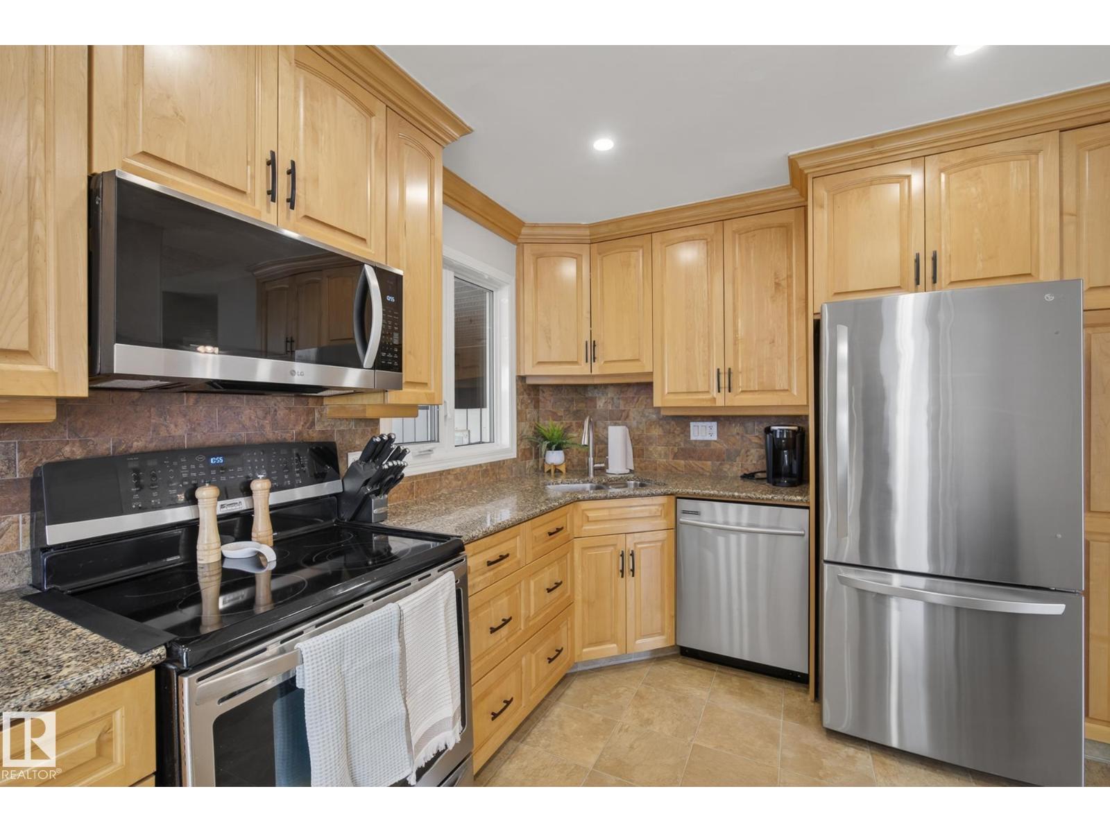 Absolutely stunning 4 bedroom Athlone bungalow loaded with high-end upgrades inside and out! This beautifully maintained home offers incredible curb appeal and a long list of improvements including new electrical panel, energy-efficient main floor windows, upgraded attic insulation, gutters/downspouts, roof turbine, fresh paint, and hardwood flooring through the living room, hallway, and third bedroom. The showpiece kitchen is fully renovated with custom solid maple crown-moulded cabinetry, gleaming quartz countertops, tile backsplash, corner stainless steel sink, garburator, pantry, and top-of-the-line stainless steel appliances including a built-in microwave and convection range. The main bath has also been stylishly updated with a marble counter, new fixtures, new toilet, new sink, and refinished tub. Outside is a private, fully landscaped yard with paving stone patio, brick flower boxes, RV parking, secure fencing, and a heated double garage with workbench. A true gem! (id:63190)