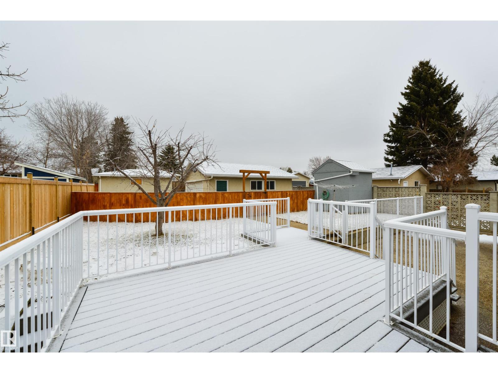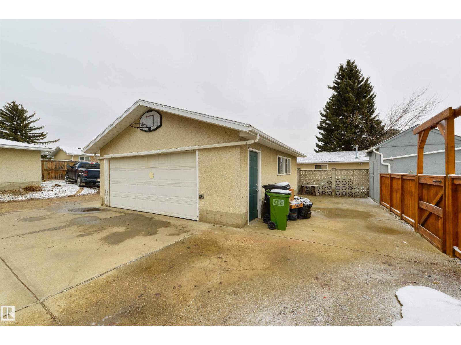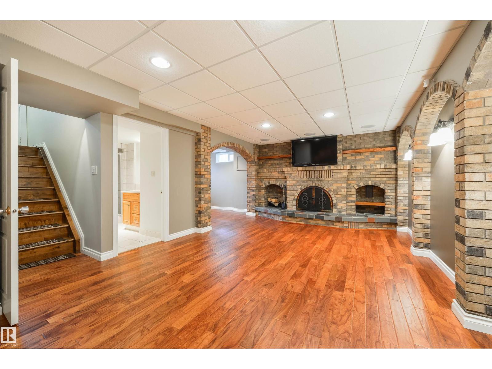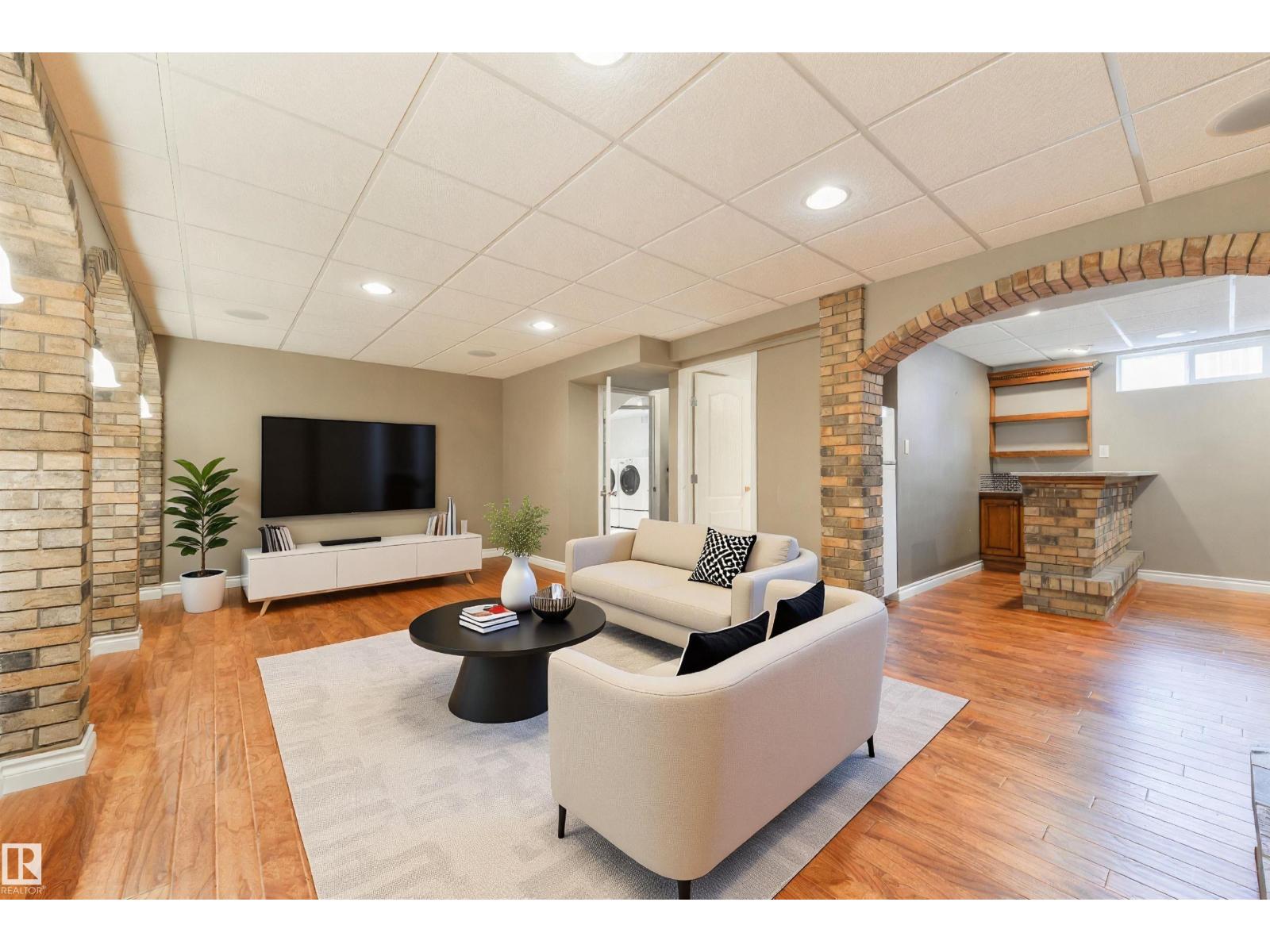 Welcome to this stunning home, meticulously maintained by its original owner. Step into a spacious living room with gleaming hardwood floors, leading to a bright dining area, and an upgraded kitchen with ceiling-height cabinets, granite countertops, and upgraded appliances. The main floor offers three comfortable bedrooms and a modern, updated bathroom. Downstairs, the basement features a custom brick accent wall, a wood-burning fireplace, surround sound, and a stylish bar. You’ll also find a 4th bedroom with an egress window & a stylish bathroom. The utility room is equipped with an updated furnace, hot water tank, and front-load washer & dryer. Step outside to a large deck and a private backyard with a brand-new fence. The oversized garage provides ample parking, including space for RV. Situated in Rundle Heights, you’re just one block from walking and biking trails, and minutes from Rundle Park, the golf course, schools, and the Yellowhead and Anthony Henday. Homes like this one are truly a rare find! (id:63190)