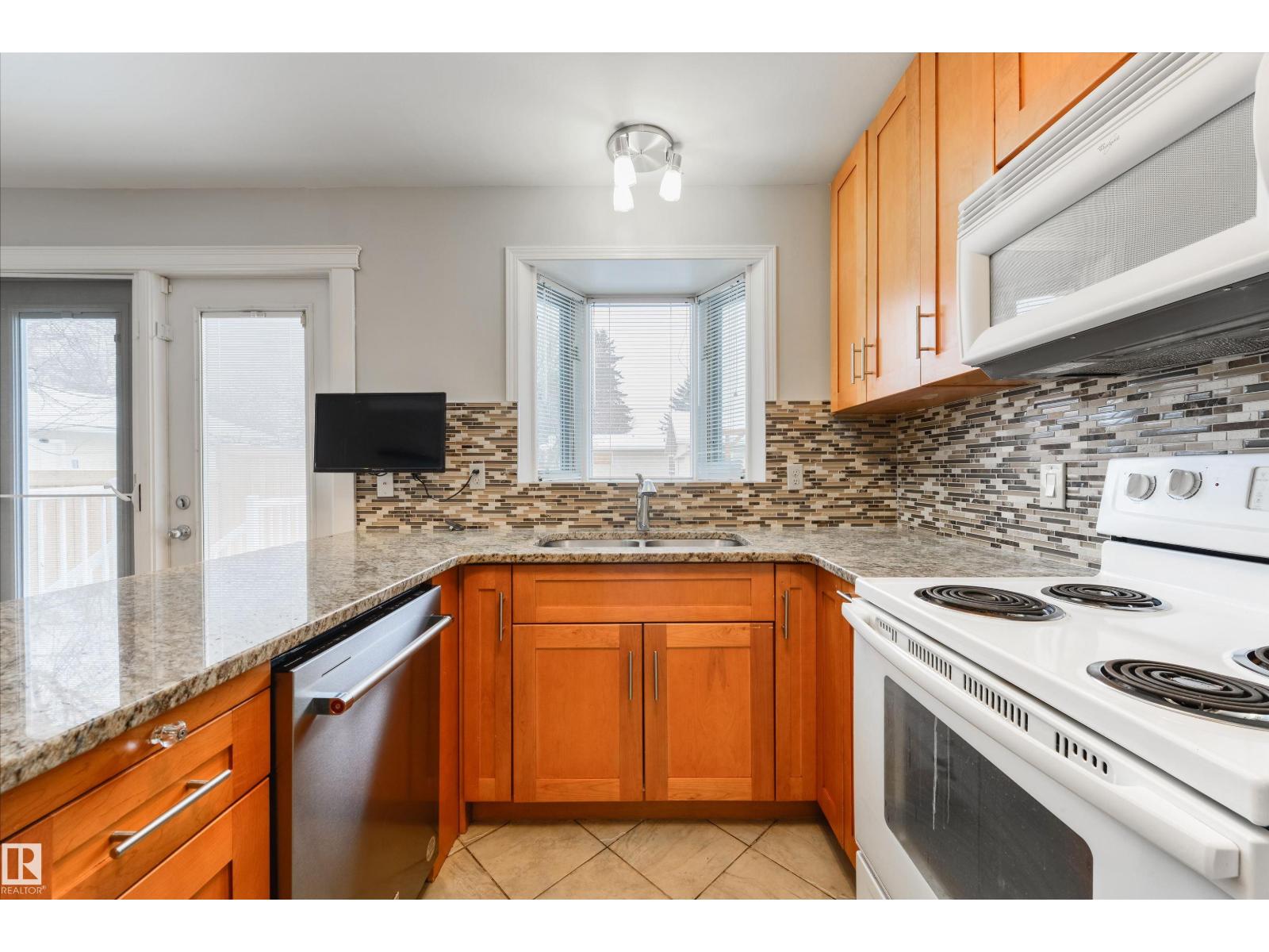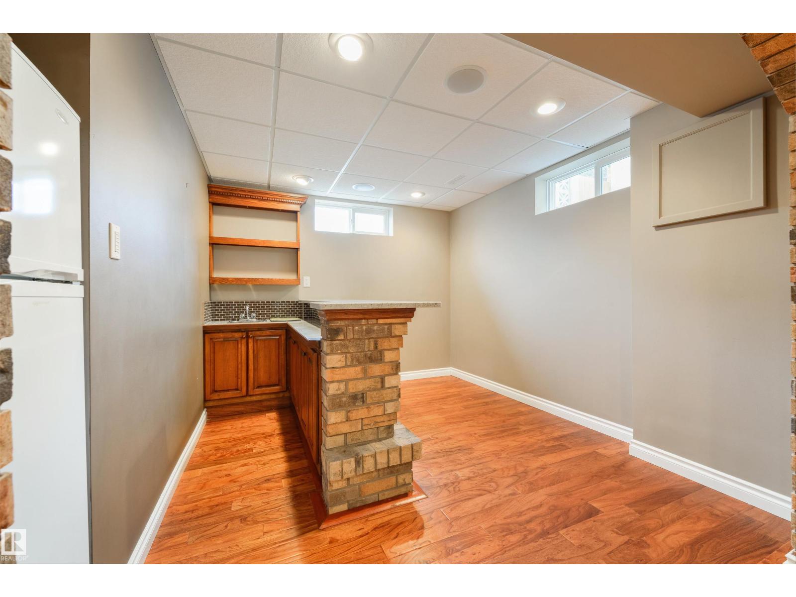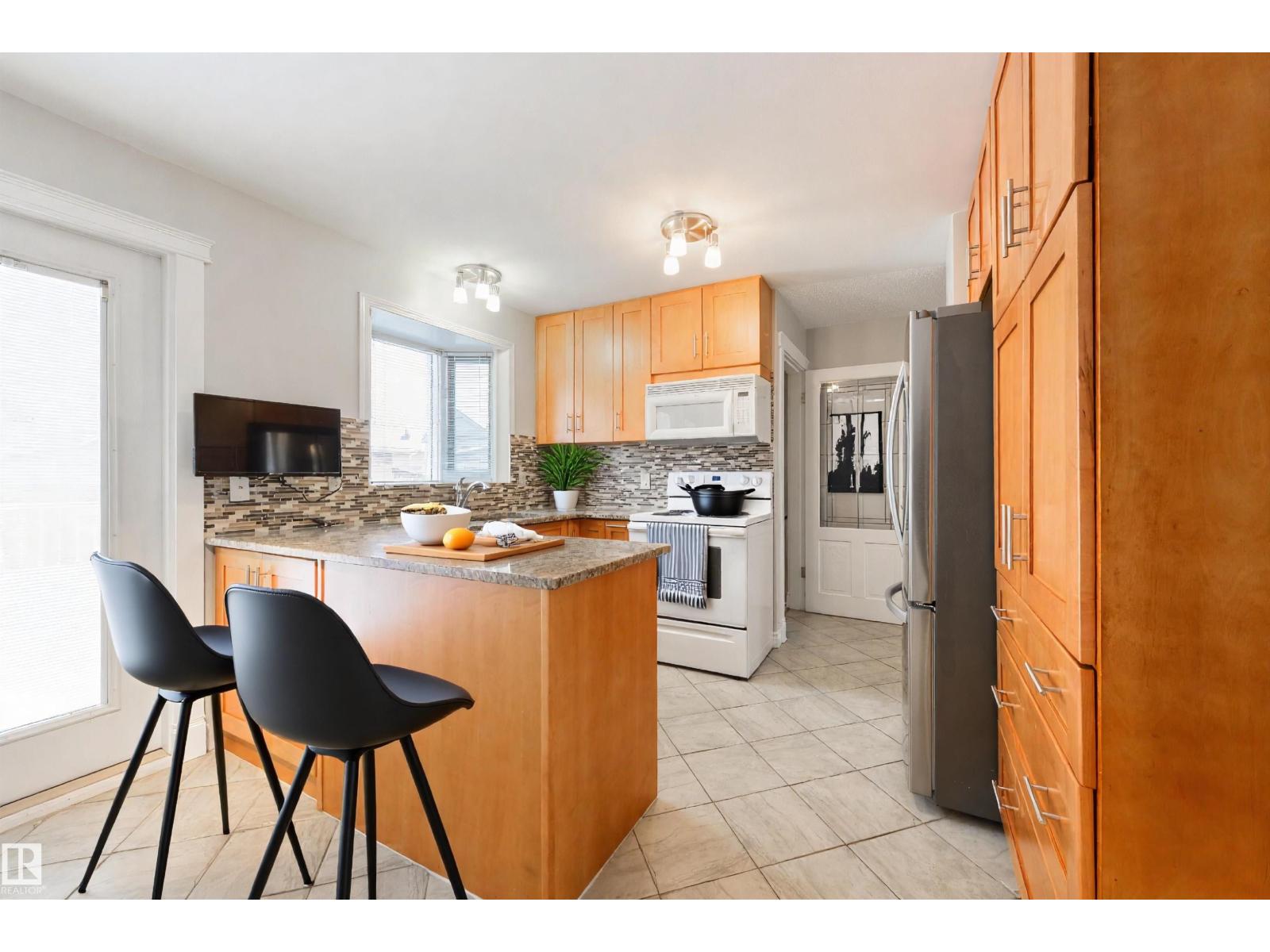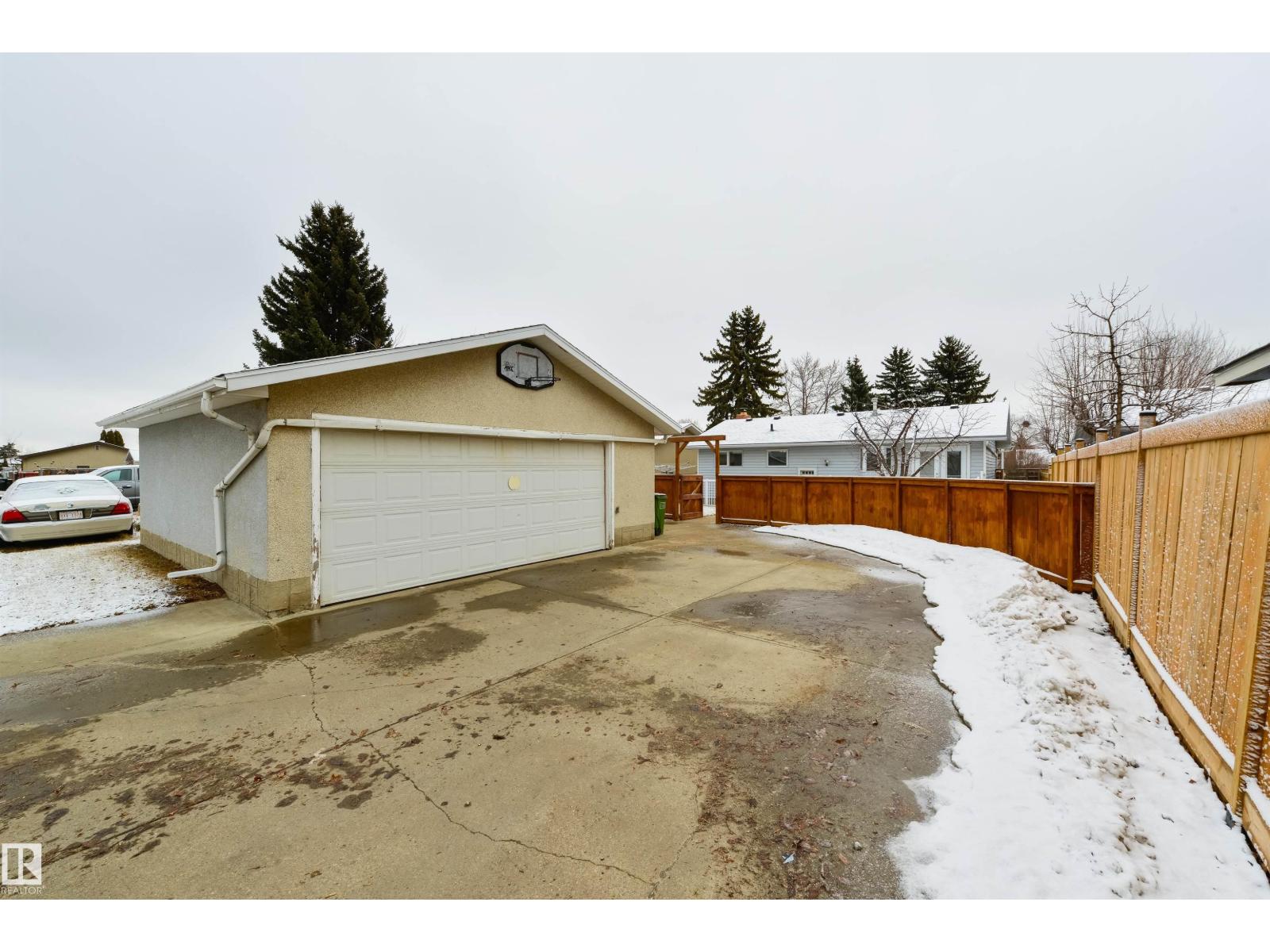 Welcome to this stunning home, meticulously maintained by its original owner. Step into a spacious living room with gleaming hardwood floors, leading to a bright dining area, and an upgraded kitchen with ceiling-height cabinets, granite countertops, and upgraded appliances. The main floor offers three comfortable bedrooms and a modern, updated bathroom. Downstairs, the basement features a custom brick accent wall, a wood-burning fireplace, surround sound, and a stylish bar. You’ll also find a 4th bedroom with an egress window & a stylish bathroom. The utility room is equipped with an updated furnace, hot water tank, and front-load washer & dryer. Step outside to a large deck and a private backyard with a brand-new fence. The oversized garage provides ample parking, including space for RV. Situated in Rundle Heights, you’re just one block from walking and biking trails, and minutes from Rundle Park, the golf course, schools, and the Yellowhead and Anthony Henday. Homes like this one are truly a rare find! (id:63190)