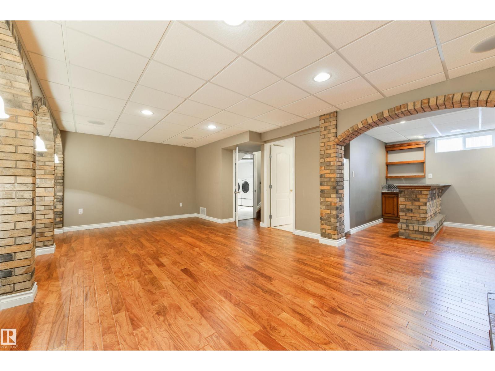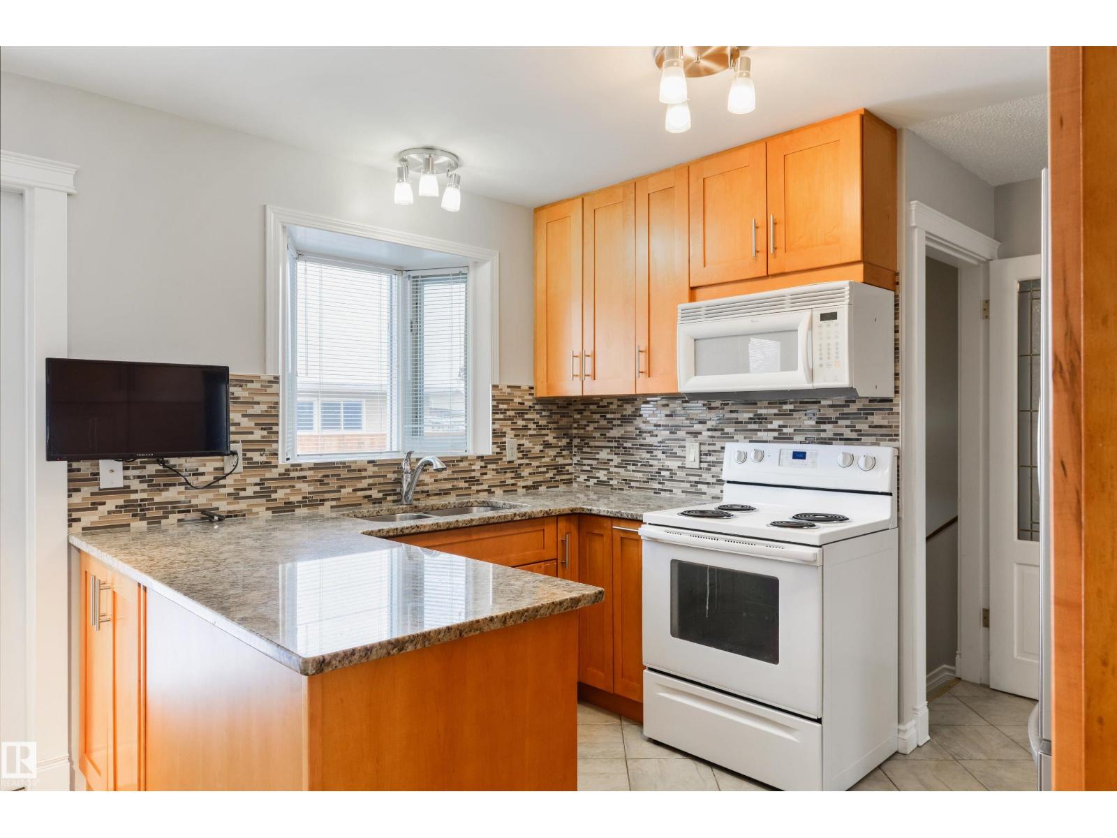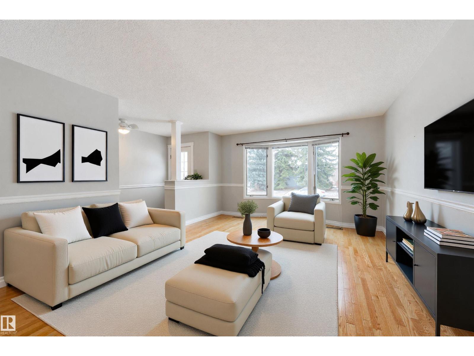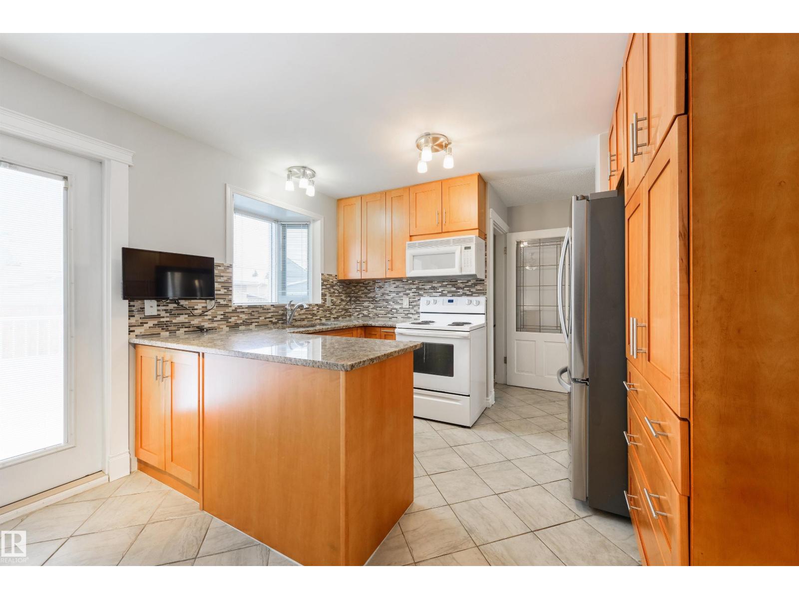 Welcome to this stunning home, meticulously maintained by its original owner. Step into a spacious living room with gleaming hardwood floors, leading to a bright dining area, and an upgraded kitchen with ceiling-height cabinets, granite countertops, and upgraded appliances. The main floor offers three comfortable bedrooms and a modern, updated bathroom. Downstairs, the basement features a custom brick accent wall, a wood-burning fireplace, surround sound, and a stylish bar. You’ll also find a 4th bedroom with an egress window & a stylish bathroom. The utility room is equipped with an updated furnace, hot water tank, and front-load washer & dryer. Step outside to a large deck and a private backyard with a brand-new fence. The oversized garage provides ample parking, including space for RV. Situated in Rundle Heights, you’re just one block from walking and biking trails, and minutes from Rundle Park, the golf course, schools, and the Yellowhead and Anthony Henday. Homes like this one are truly a rare find! (id:63190)