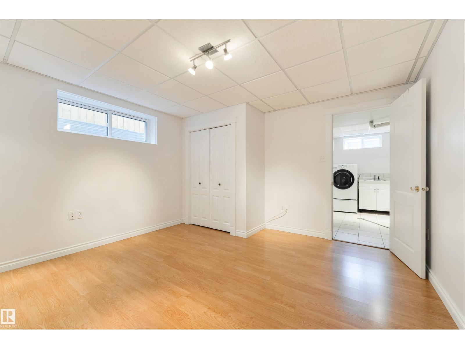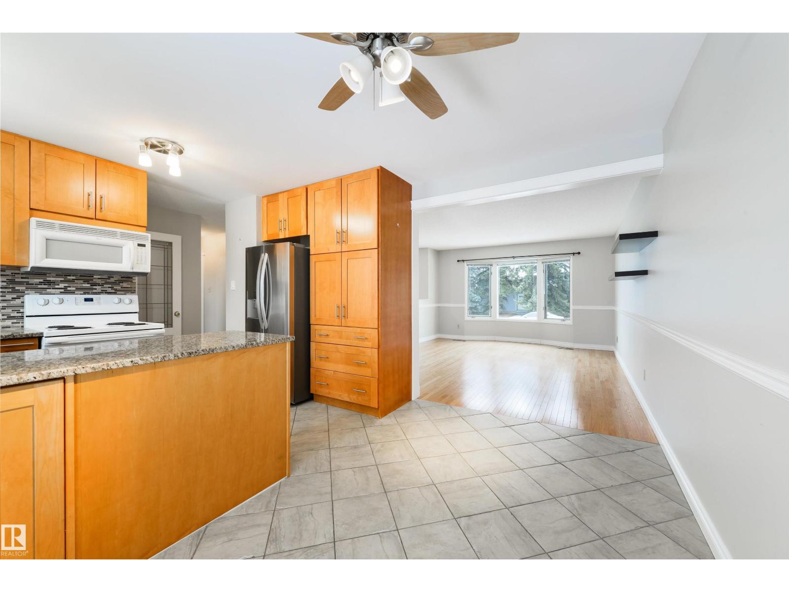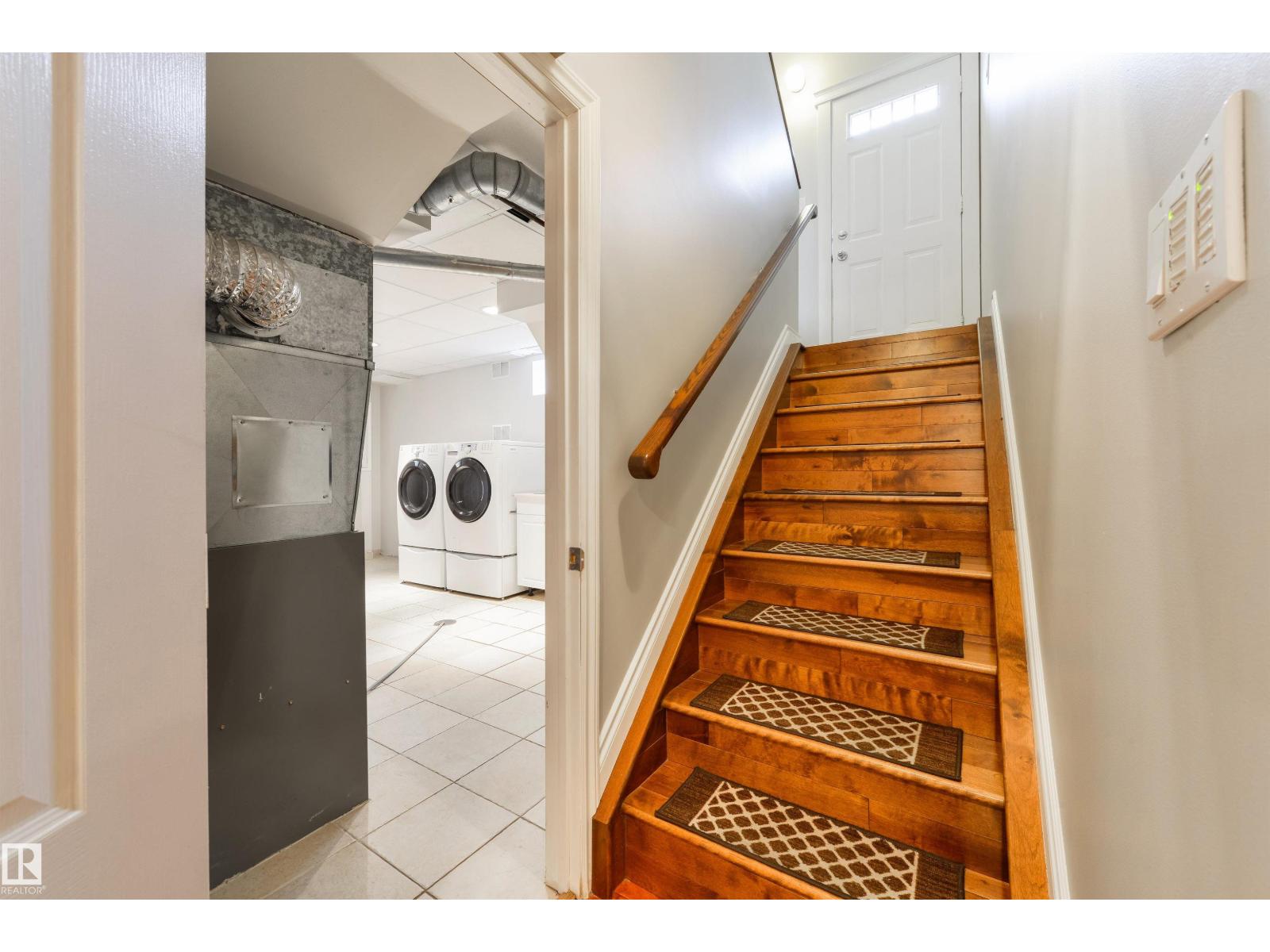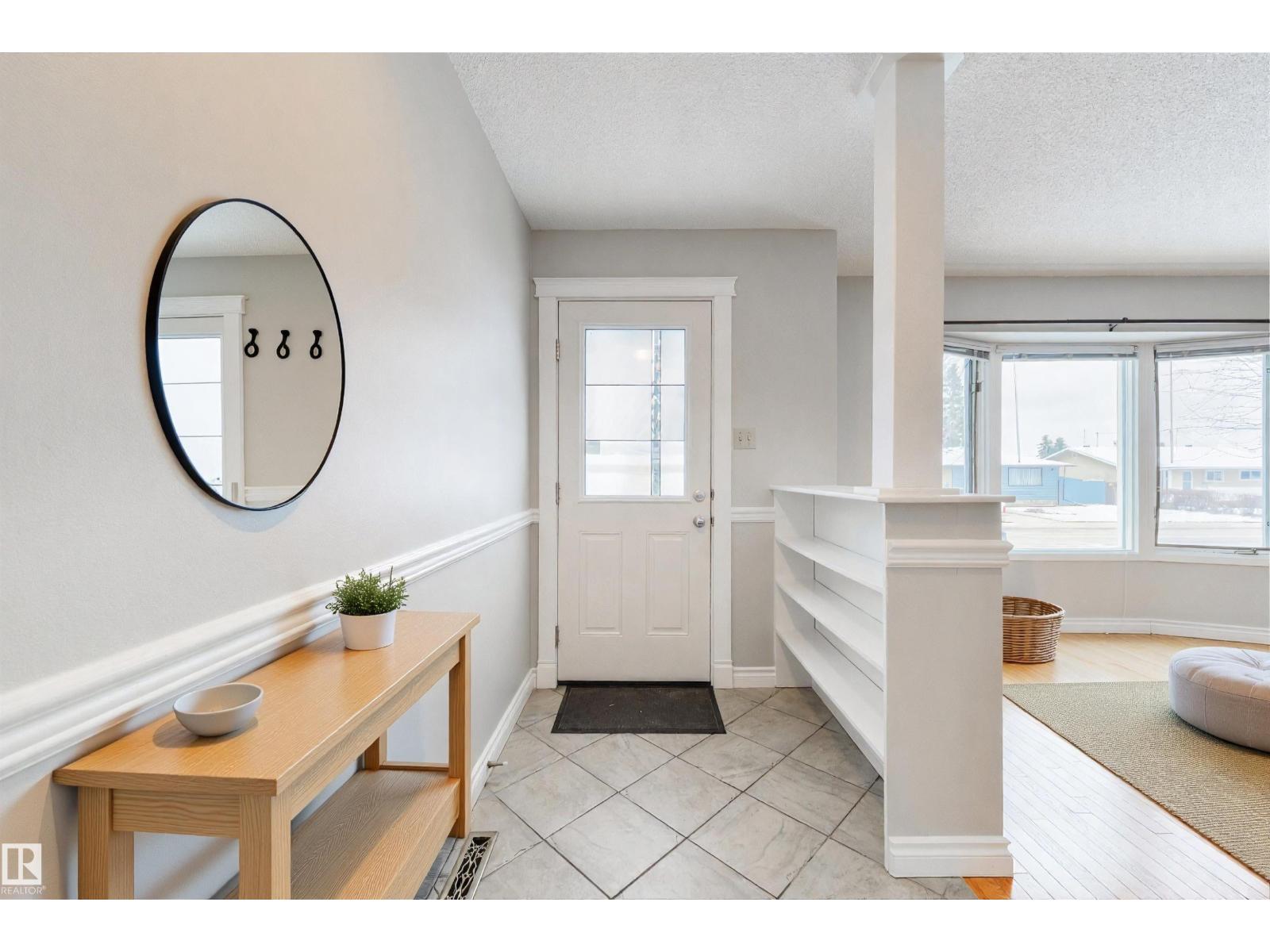 Welcome to this stunning home, meticulously maintained by its original owner. Step into a spacious living room with gleaming hardwood floors, leading to a bright dining area, and an upgraded kitchen with ceiling-height cabinets, granite countertops, and upgraded appliances. The main floor offers three comfortable bedrooms and a modern, updated bathroom. Downstairs, the basement features a custom brick accent wall, a wood-burning fireplace, surround sound, and a stylish bar. You’ll also find a 4th bedroom with an egress window & a stylish bathroom. The utility room is equipped with an updated furnace, hot water tank, and front-load washer & dryer. Step outside to a large deck and a private backyard with a brand-new fence. The oversized garage provides ample parking, including space for RV. Situated in Rundle Heights, you’re just one block from walking and biking trails, and minutes from Rundle Park, the golf course, schools, and the Yellowhead and Anthony Henday. Homes like this one are truly a rare find! (id:63190)