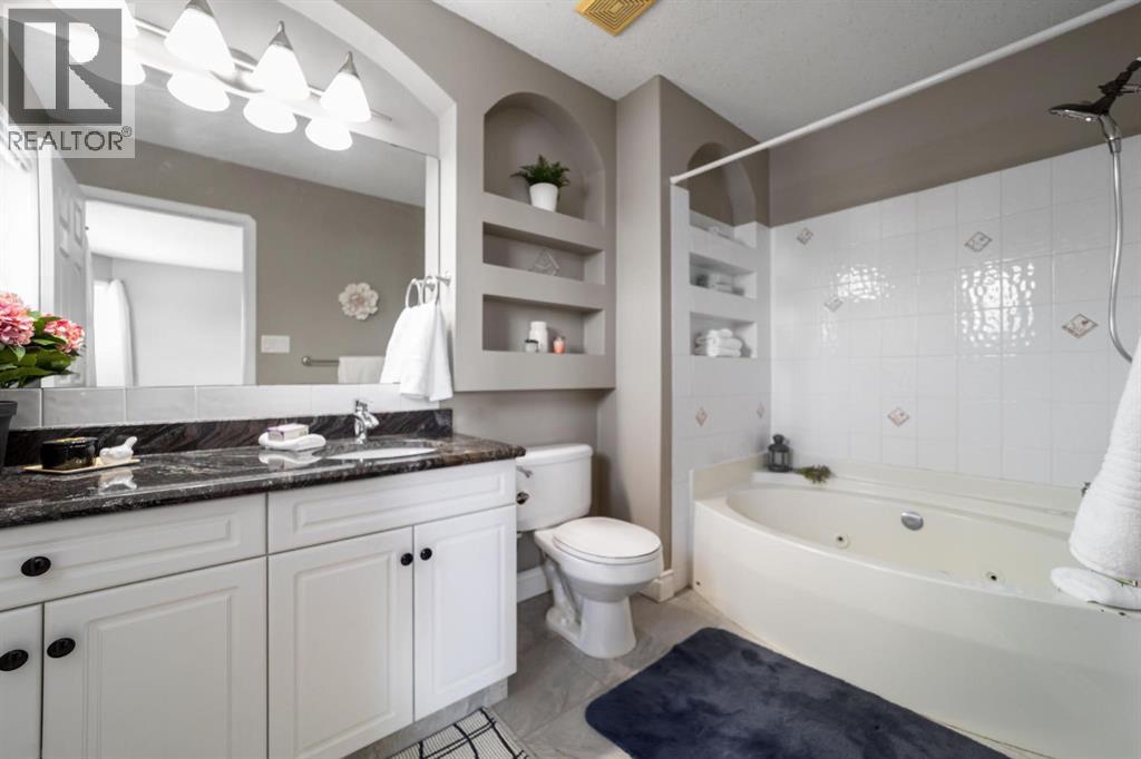 Wonderful split-level home located in the DESIRABLE community of Century Meadows. You will appreciate the grand entrance with vaulted ceilings that leads you up to an open living, dining and kitchen area. The remodelled and upgraded kitchen showcases sleek cabinetry, walk-in pantry, stainless steel appliances, bakers island and a built-in custom design banquette! Also, on the main floor is 2 bedrooms, a full bathroom and a dining room with back deck access. The peaceful master bedroom features a walk-in-closet and a 4pc ensuite with a jet tub. Outside the master is a raised den/office area. Heading down to the lower level you will enjoy the large back entry way/Laundry room which leads you out to a finished double car garage. The lower level presents a perfect sized family room, 2 spacious bedroom and a 3pc bathroom. Outside features a beautifully landscaped yard with a covered deck, space for RV Parking and fence. This move-in ready home will not disappoint! Don’t miss out on this opportunity! (id:63190)