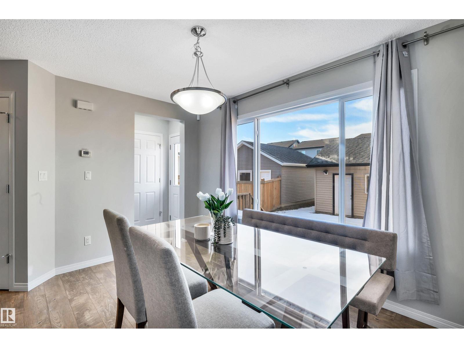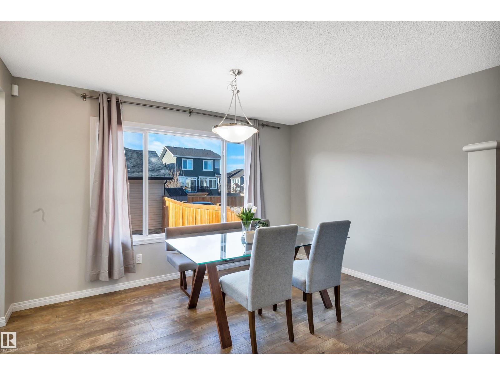 This charming 3-bedroom, 2.5-bathroom single family home with a double detached garage, perfectly located in the sought-after community of Chappelle Gardens. From the moment you enter, you’ll appreciate the bright, open-concept design that creates a warm and welcoming atmosphere. The spacious living room is bathed in natural light from a large front window and features a sleek electric fireplace, it's ideal for relaxing evenings or entertaining guests. Just a few steps up, the stunning kitchen showcases a large quartz island, stainless steel appliances, stylish cabinetry and a convenient built-in pantry. The adjacent dining area is equally inviting, highlighted by a large window overlooking the backyard. Upstairs, the well-appointed primary suite offers a walk-in closet and a private 4-piece ensuite. Two additional generously sized bedrooms, a full bathroom and a versatile family room complete the upper level, providing ample space for comfortable family living. (id:63190)