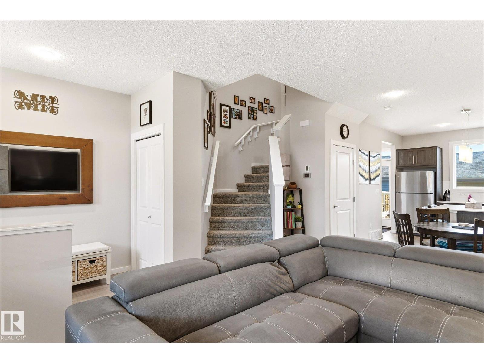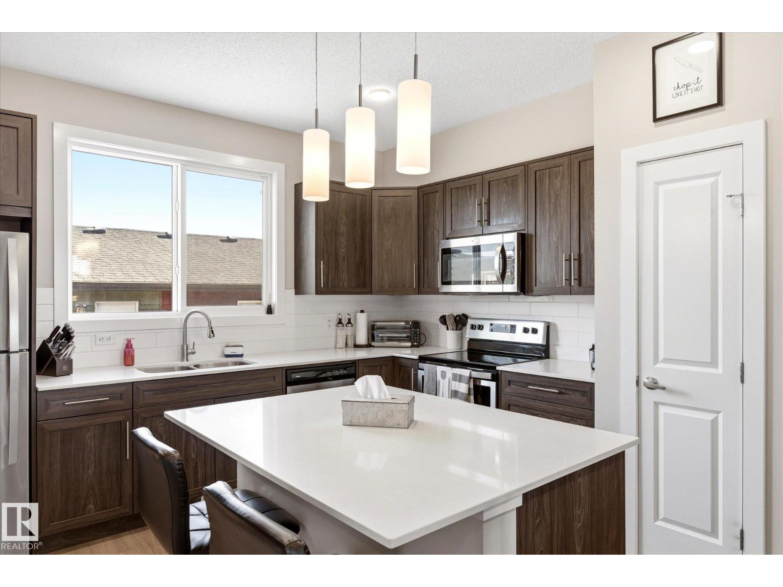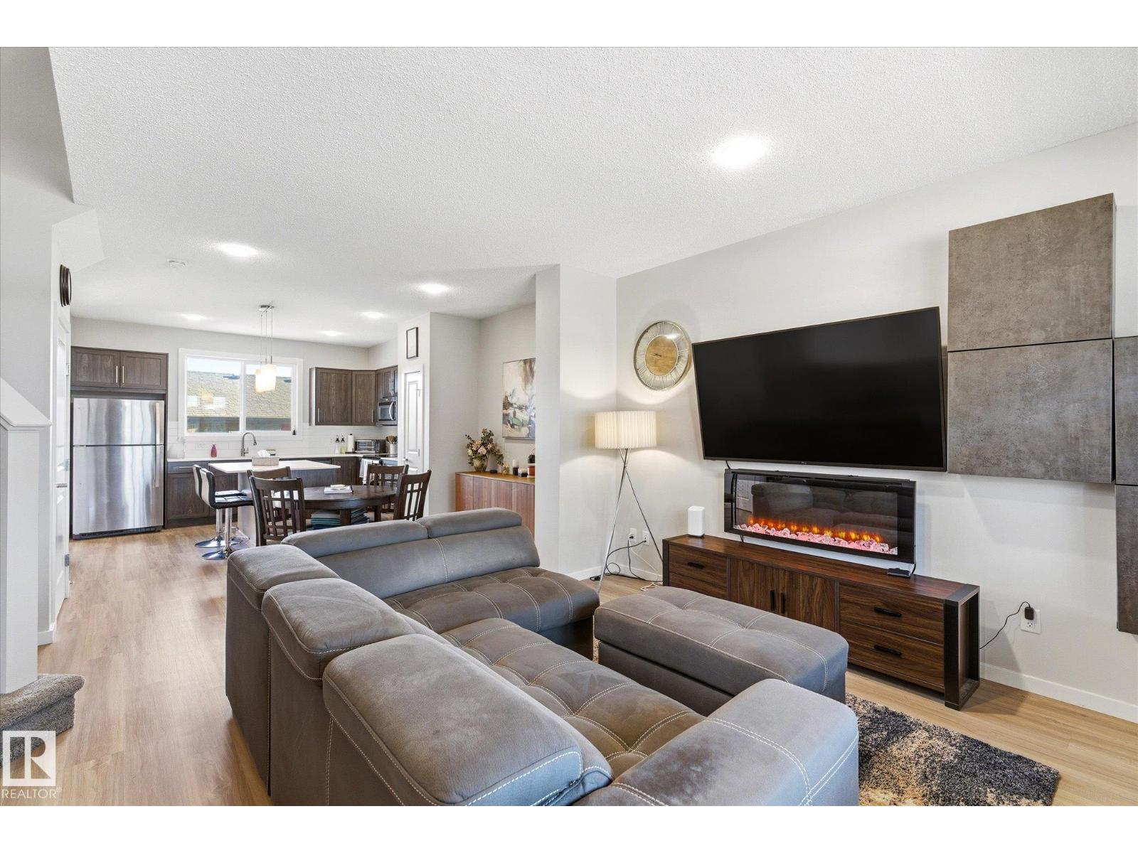 Welcome to Rosenthal! This stunning residential attached home offers the perfect blend of timeless design and modern finishes. The main floor features a cozy yet open concept design with low maintenance LVP floors, Quartz countertop in the kitchen, plenty of storage & counter space, convenient 1/2 bath and a charming electric fireplace. On the second floor you'll find 3 spacious bedrooms, 2 more bathrooms, including a private ensuite, this home is thoughtfully designed for both comfort and convenience. The primary suite also boasts a walk-in closet, while the upper-floor laundry adds everyday ease to your routine. Enjoy the charm of a welcoming front veranda and the practicality of a detached double garage. Located within walking distance to a vibrant splash park and scenic walking trails, this home is perfectly situated to enjoy everything the Rosenthal community has to offer. Whether you're a first-time buyer, growing family, or savvy investor this is a home you won’t want to miss! (id:63190)